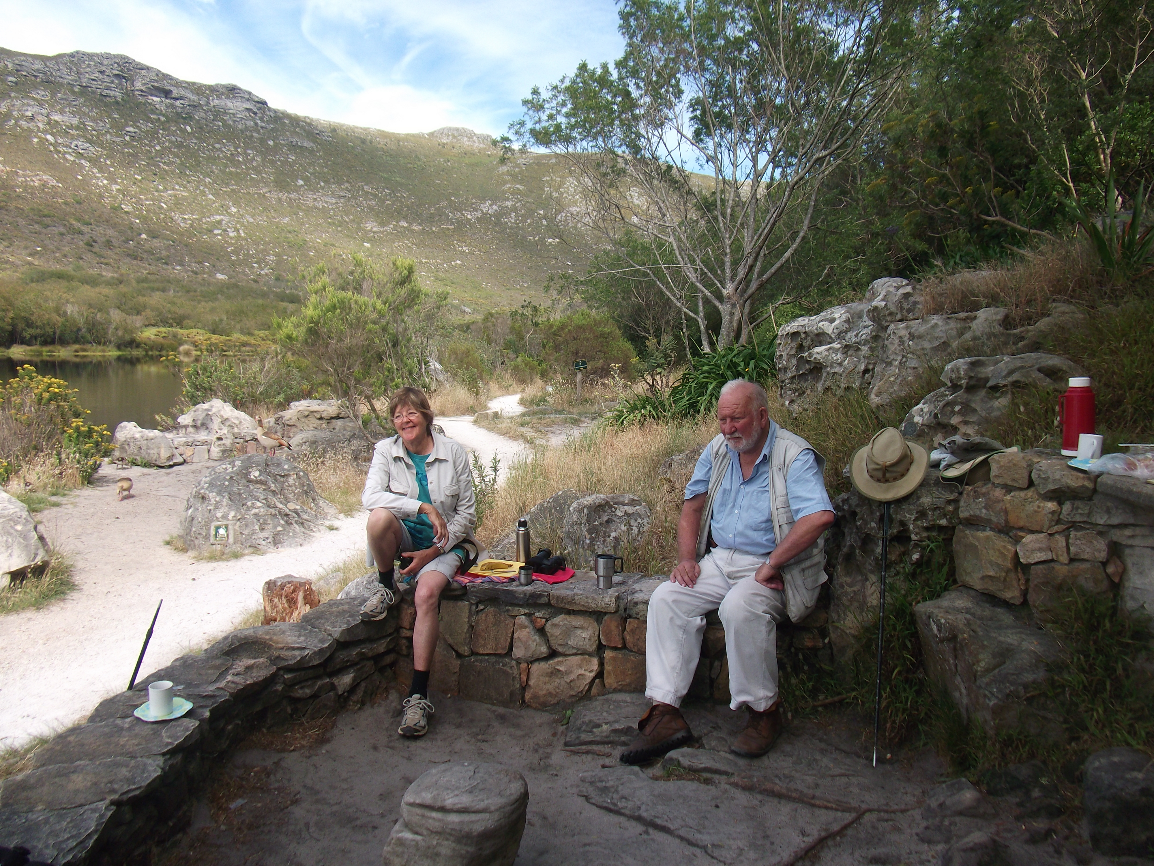 25th December At 6.45 Lyn, Peter and I headed up to Silvermine where we met John and Sandi in the car park. While John waited for Jem and Tracey Main to arrive with their two little ones Peter, Lyn, Sandi and I headed up to the view-point overlooking Hout Bay.