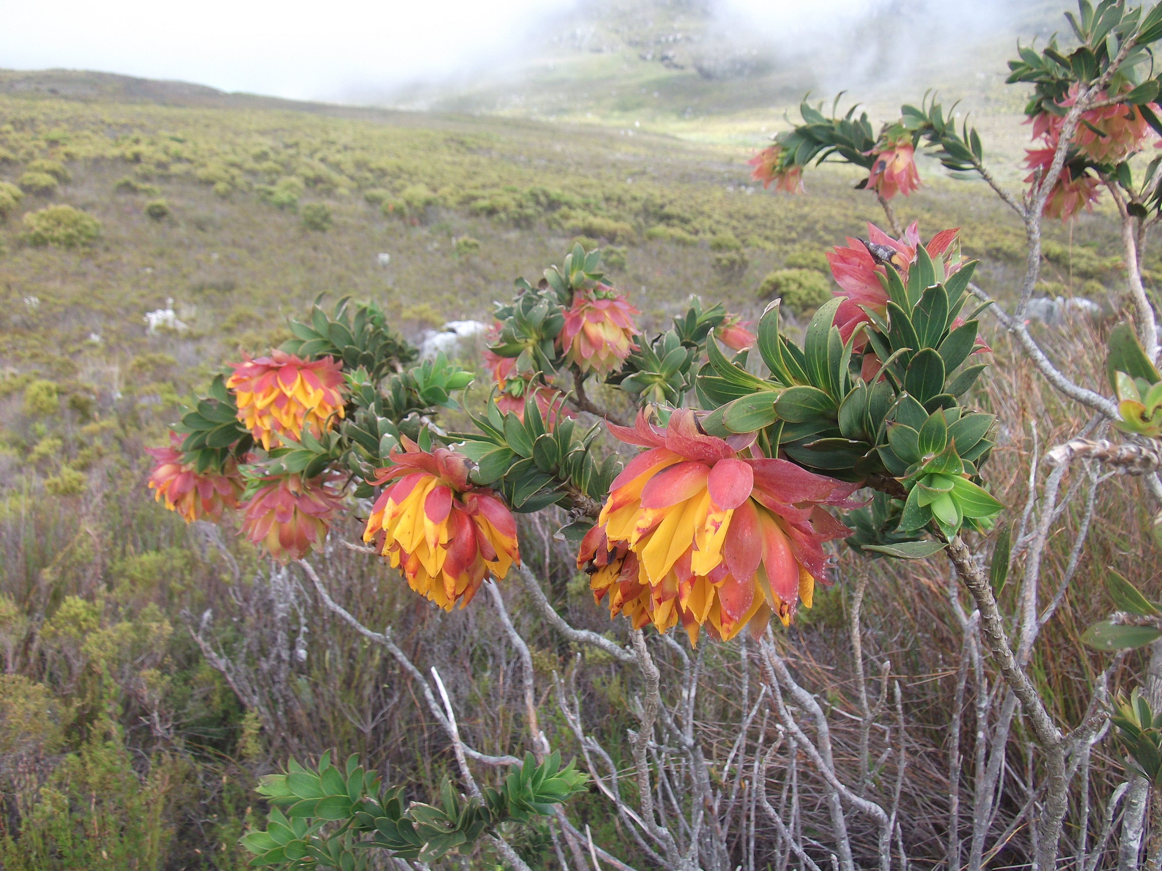 28th December Had a lovely MTB ride in Tokai Forrest yesterday and a nice hike up to Noordehoek Peak in Silvermine today followed by a swim in the dam. Up on the higher paths the mist was thick and low so we did not get the usual views but the lichens were enjoying the moisture.