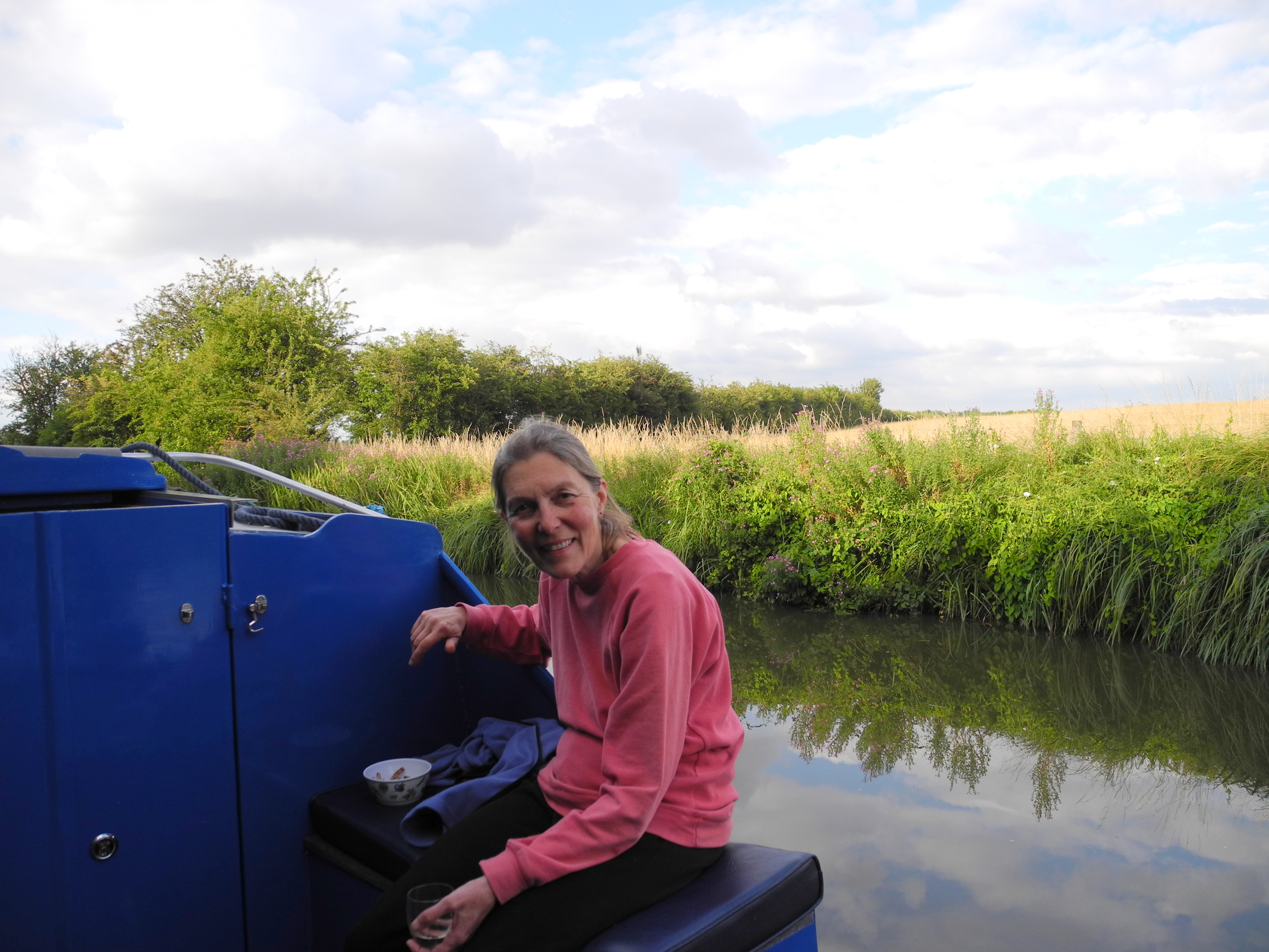 19th July. The Ashmolian was amazing. The Special exhibition was of artifacts from the early macedonian civilisations through to Alexander the Great. Jan arrived in the late afternoon and we left town to moor up for the evening in the countryside. A lovely evening allowed for sundowners on deck!
