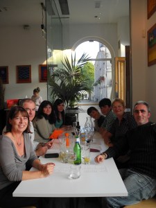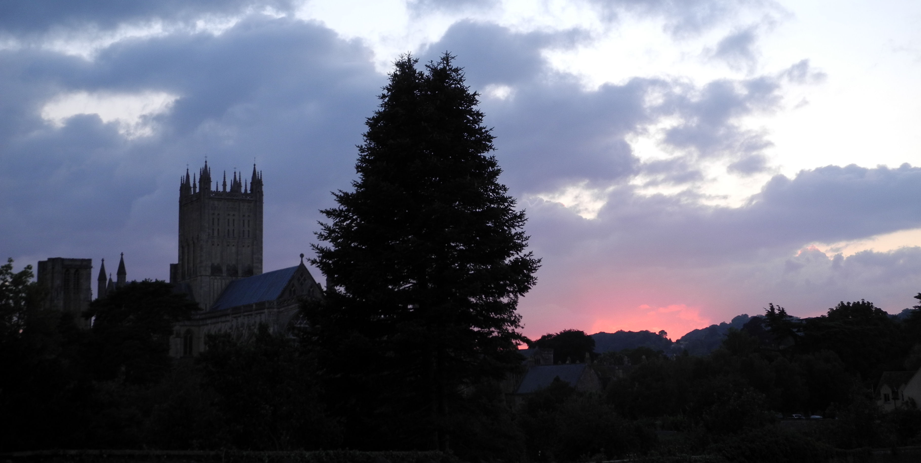 23rd July. Nicky picked me up on Thursday and drove me to Wells. On Friday evening Jon, Nicky, Henry & Charlotte and Marian, Pete and Conor came with me to ASK for a family dinner. Both Jon and Marian have birthdays about now. We walked home in the gathering dusk with a nice view back to the cathedral.