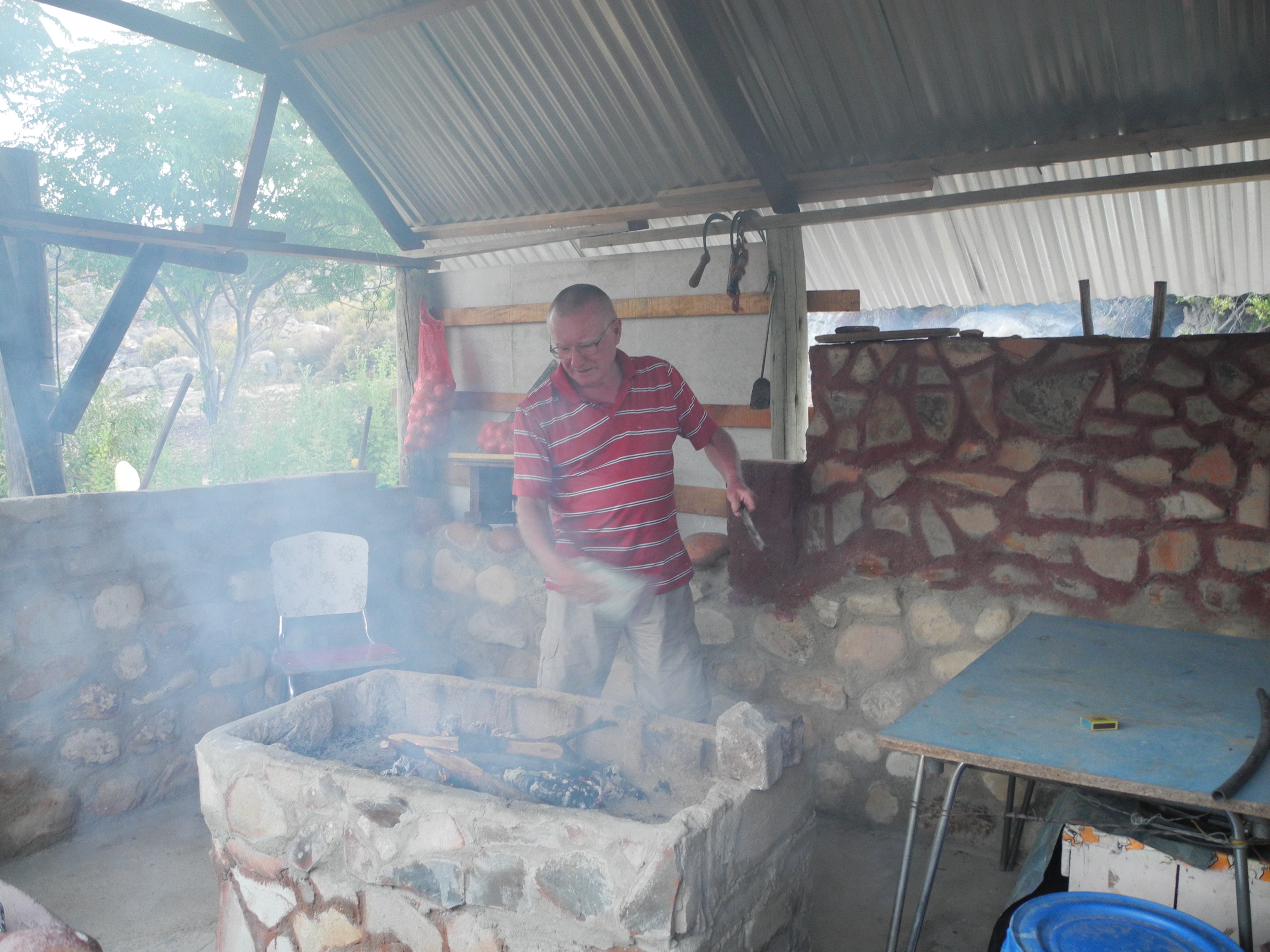When we all got back to the house it was time to light the fire for the BBQ and stand around drinks in hand watching the cooks!