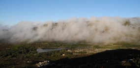 11th April. A lovely walk in Silvermine this morning. We were soon above the clouds and looking down on the dam where we usually swim at the end of walks and the beach and harbour at Hout Bay.
