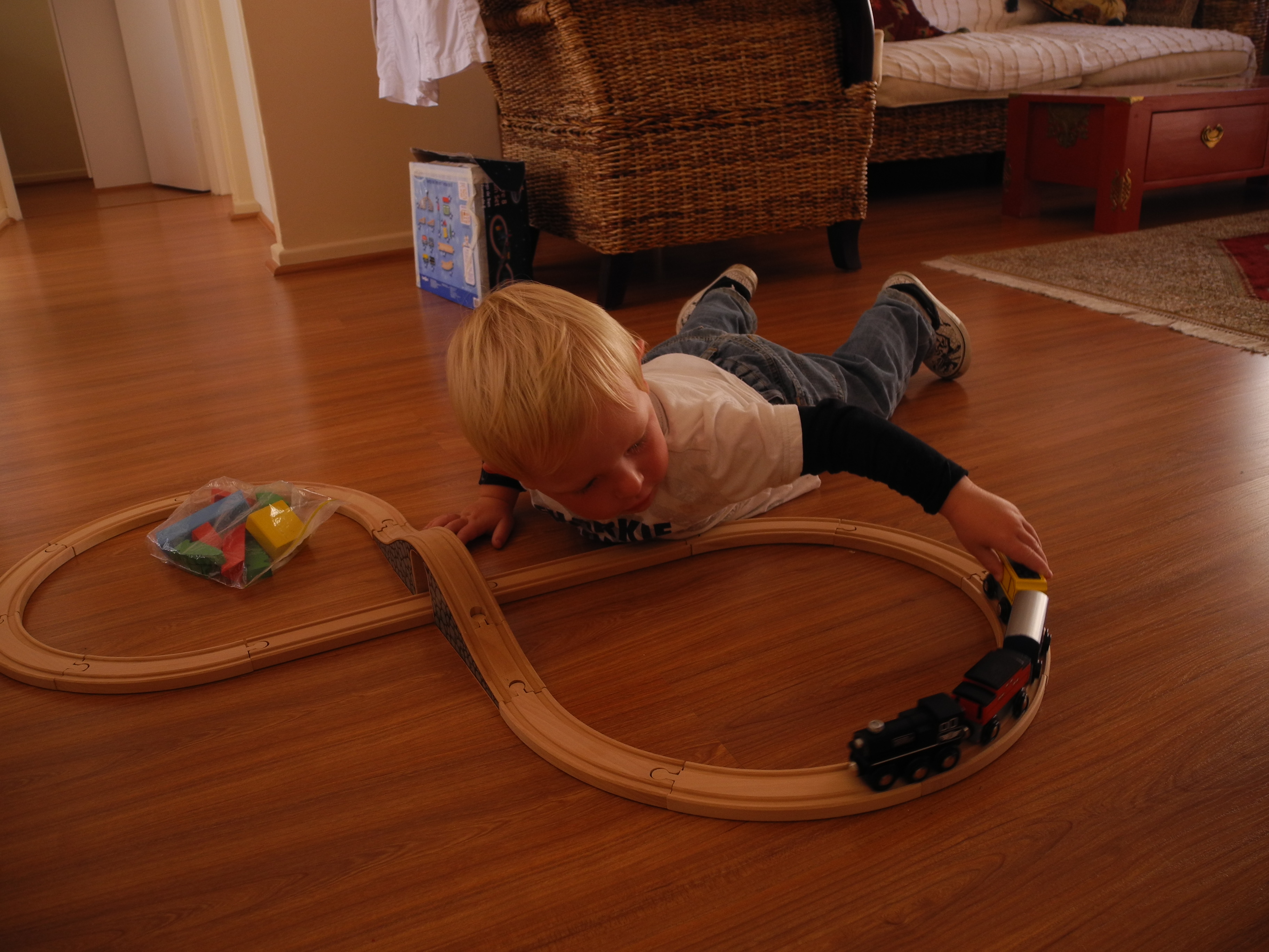 20th April. Daegan has been staying with me for two days. It was fun to have him here if a bit exhausting. He seems very happy and settled. He enjoyed playing with his train set, working with me in the garage and going to the park.