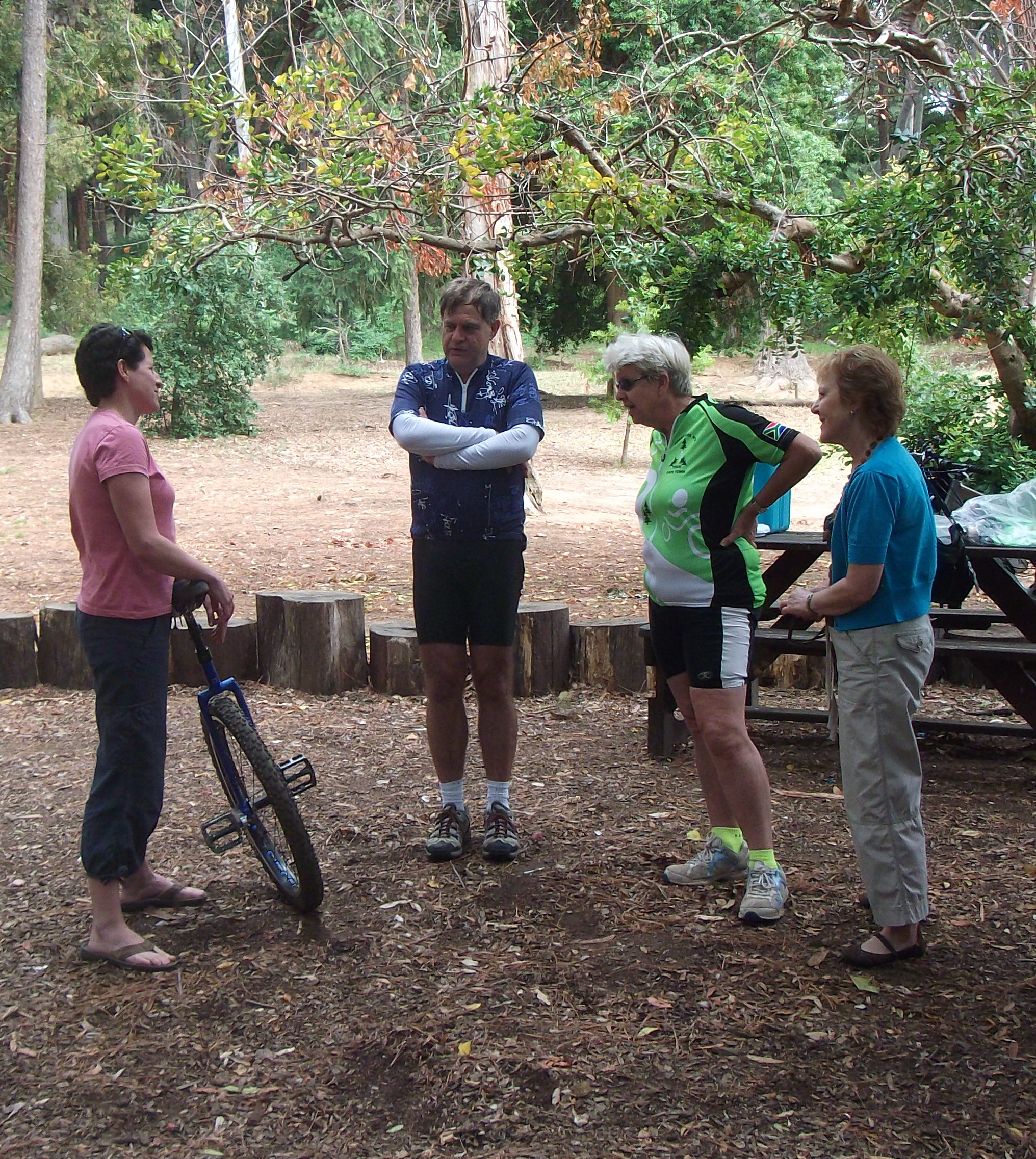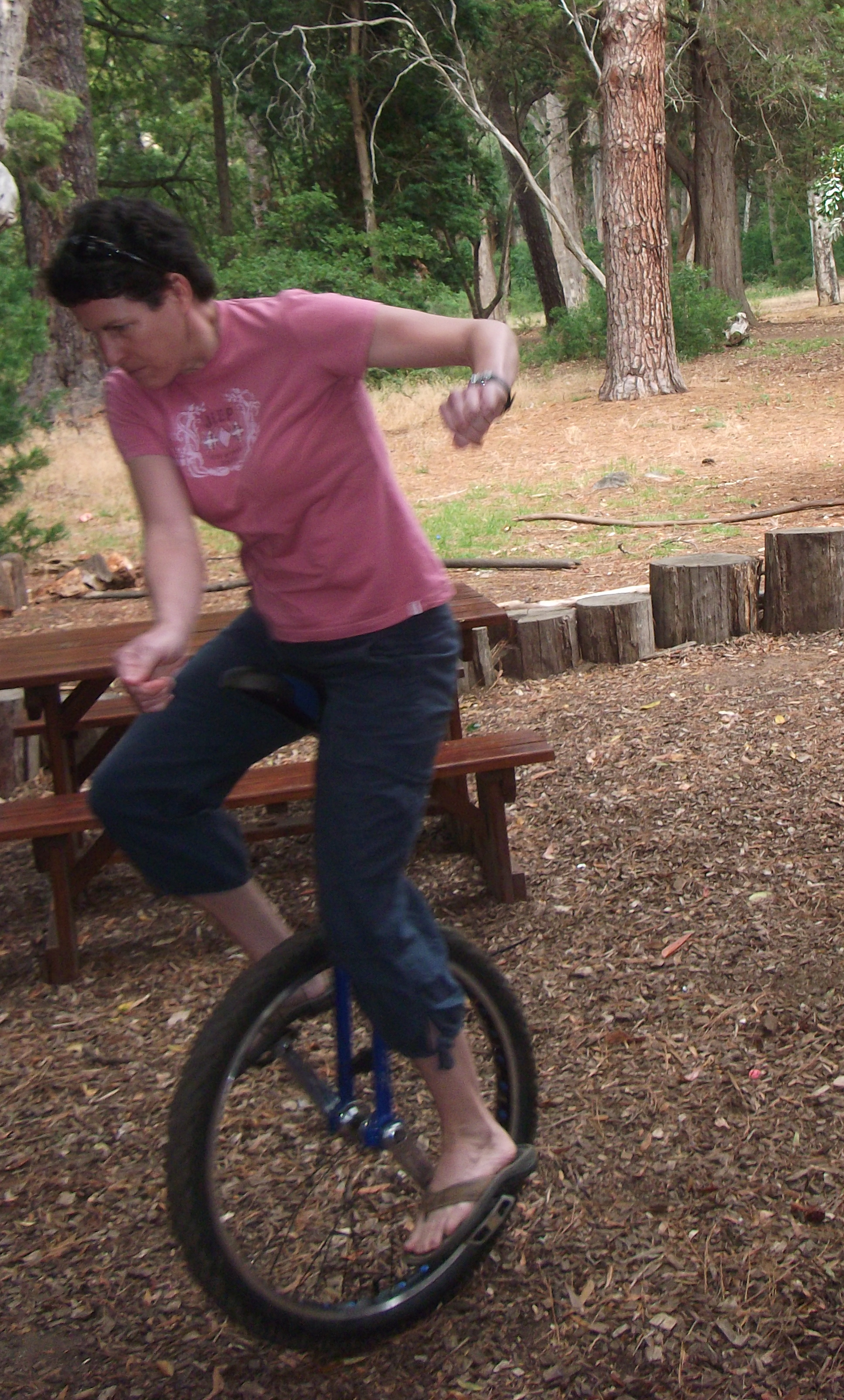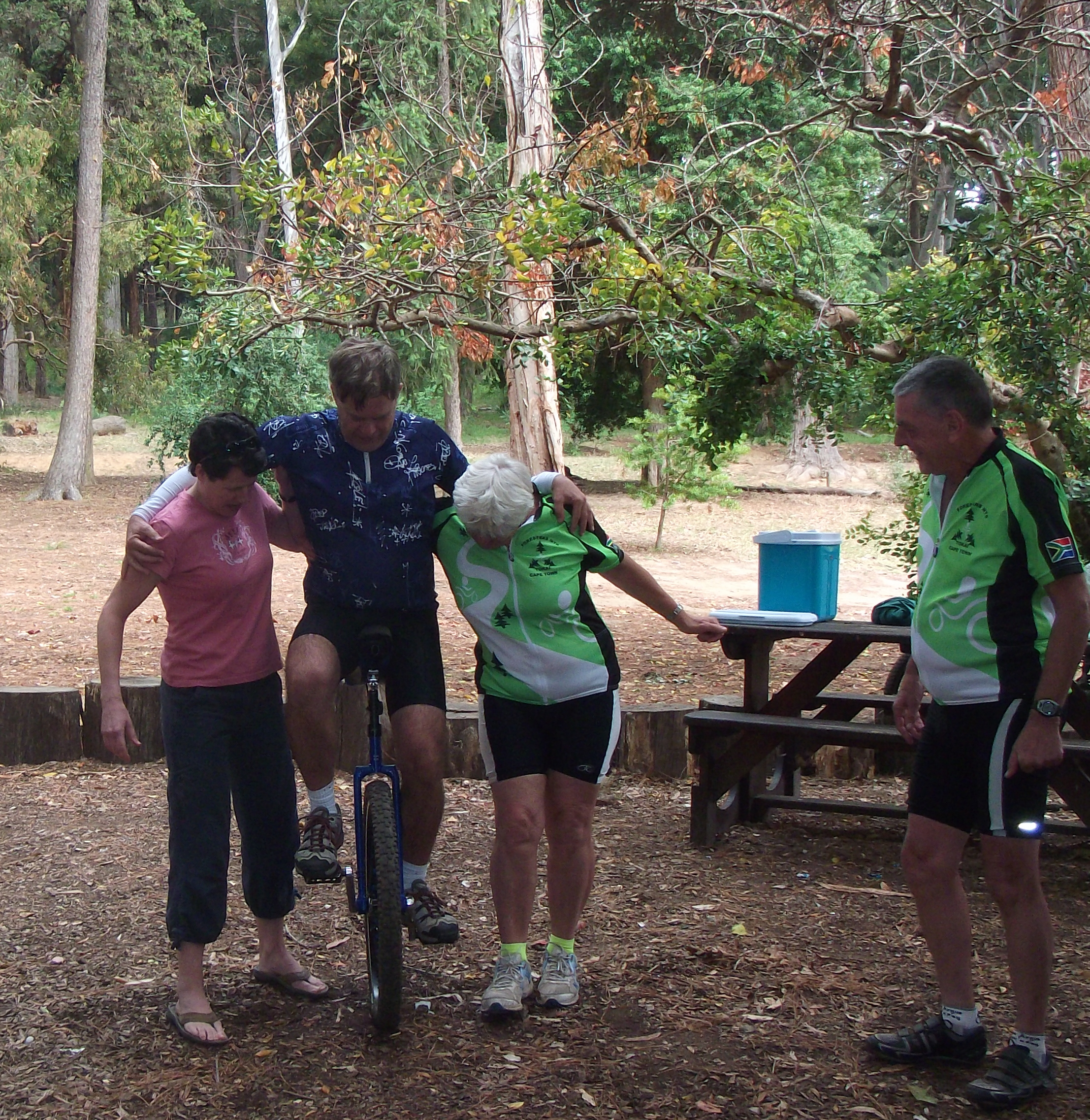 They really are not my favourite animals and when they become as familiar with humans as these are they become a dangerous pest. Robyn came along with her unicycle and caused a fair amount of interest at breakfast. Only Francoise was brave enough to give it a go. This was followed by graphic miming of the probable consequences of attempting it without support! And an able demonstration of how is should be done by Robyn.