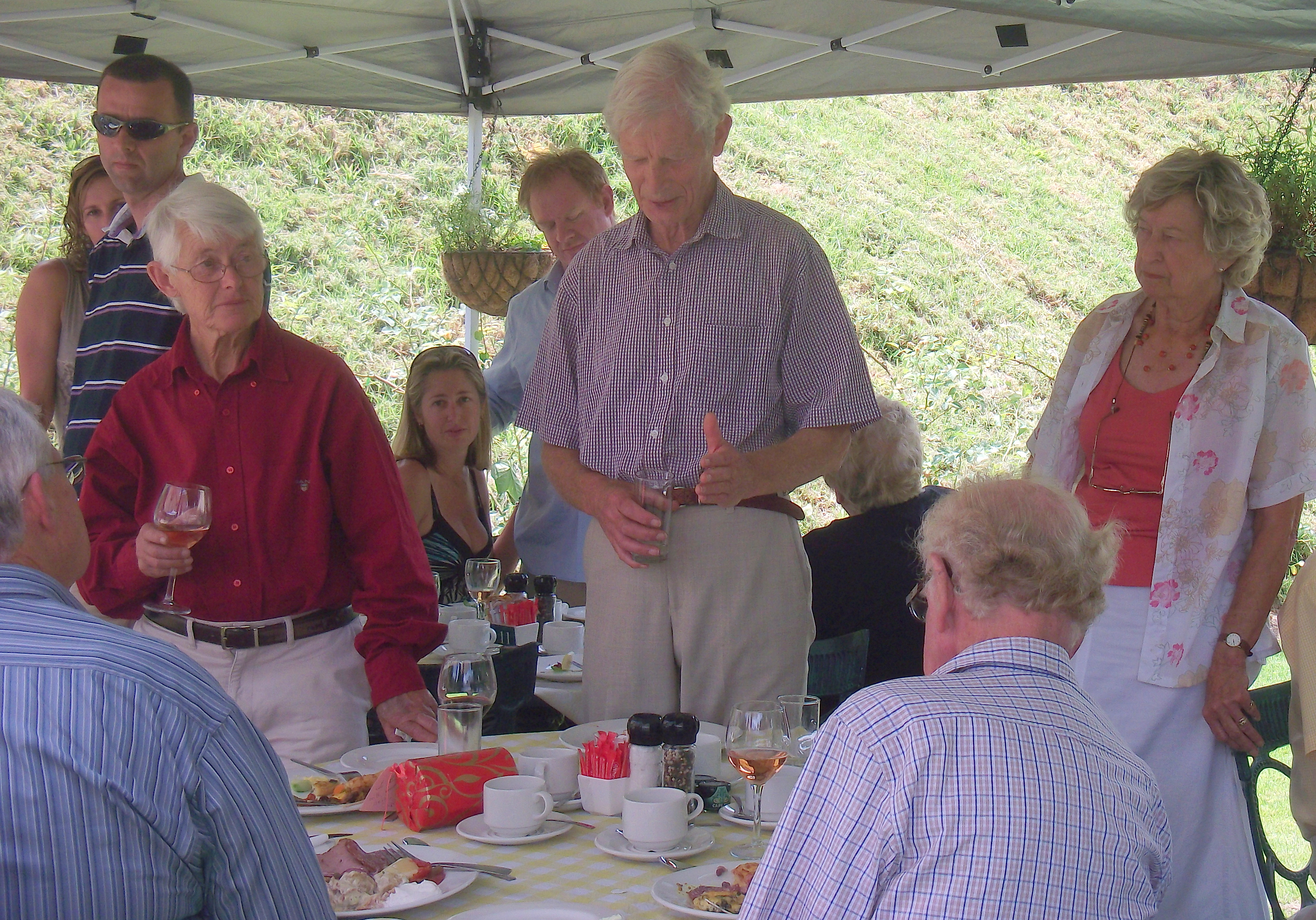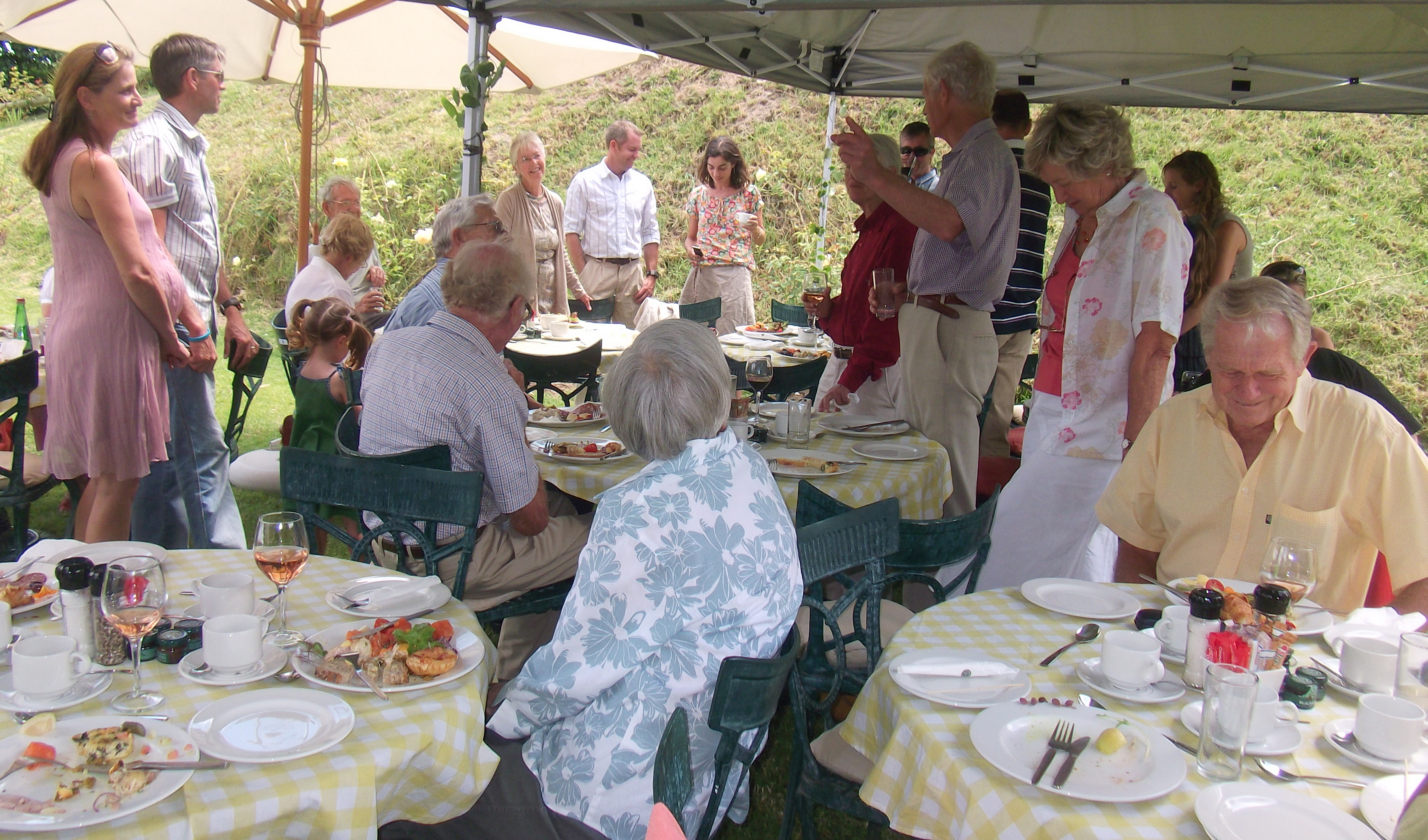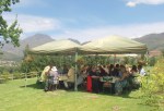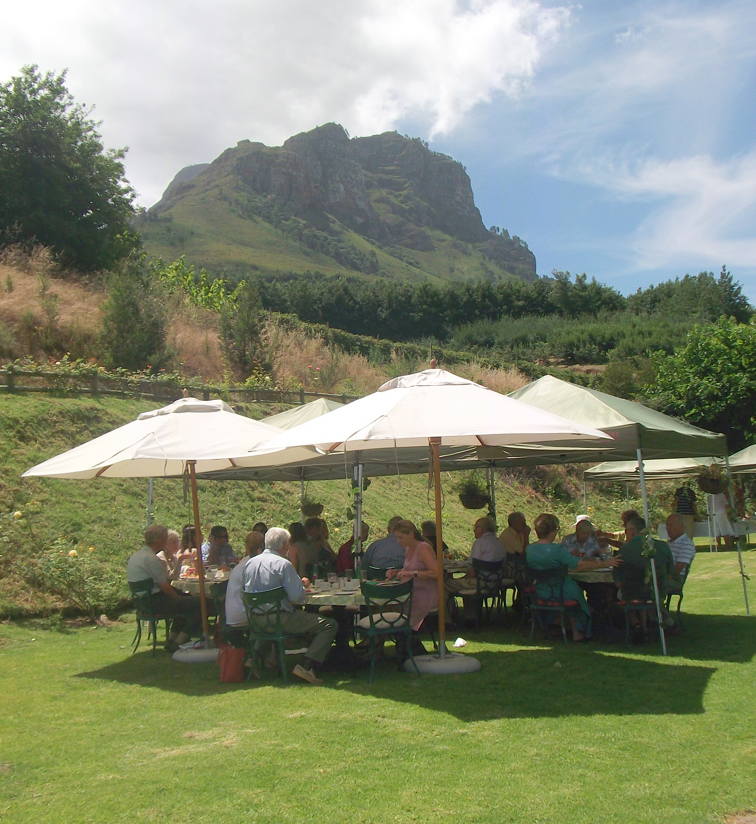 4th January. Today was Hannie’s 70th birthday. Gill, Rory and I drove out to a Berry Farm near Franshoek to join other friends and family for a celebratory lunch. The setting in the mountains was spectacular (see this page’s header picture). The venue on a grassy terrace with amazing views was very special. The food was great and lunch was rounded off with lovely fresh berries from the Farm. What follows is a selection of the photos. As there are a lot I’ll post them all at thumbnails but you can always click on them to enlarge them.