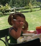 Hannie’s youngest Grandchild, at least for about four more weeks, attacks the desert!