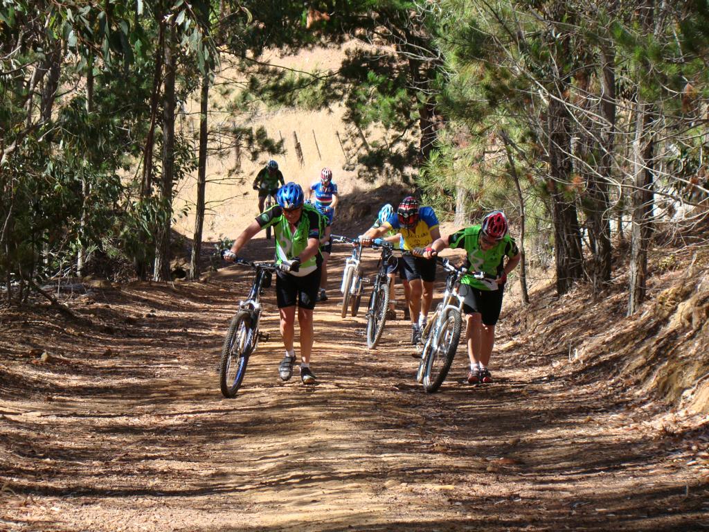 24th January. Today the Forresters went out of town to the lovely Oak Valley Farm for their weekly MTB ride. An invite was extended to the recyclers so there was a really go turnout of about 40 riders. The ride took us through some lovely and very varied sceenery and the terrain ranged from rolling plains, steep hills, challenging single track and serious up hill! Crossing the farm’s fences was also ‘interesting’!