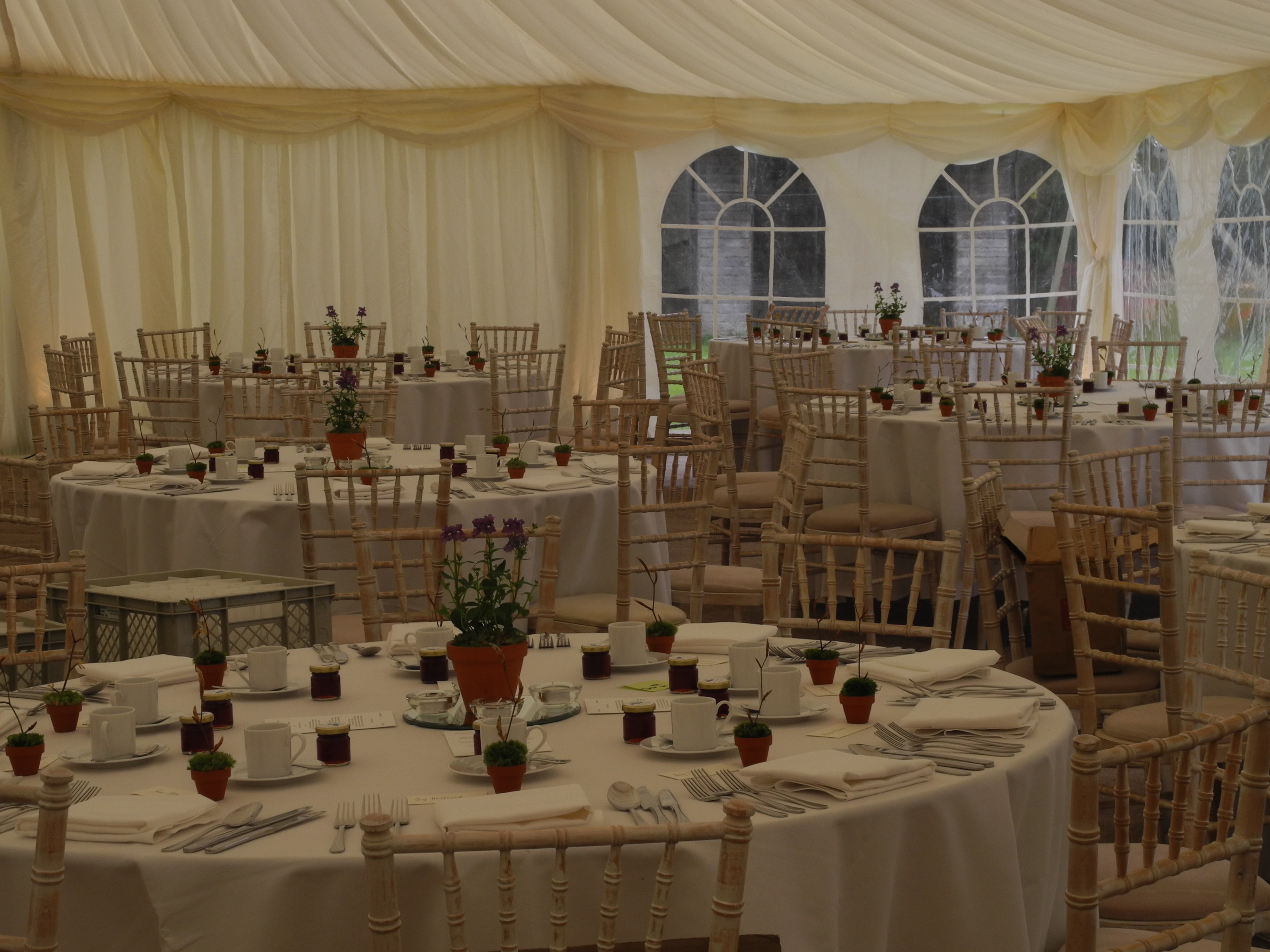 20th May. What a super wedding. Everything went off like clockwork and even the weather was beautiful. The morning started with the make-up lady coming to get the Bride, Bridesmaids and Helen made-up and hair done. Everyone looked gorgeous and Georgie’s dress was amazing. The food was great, the marque looked very festive and the DJ got everyone on the floor.