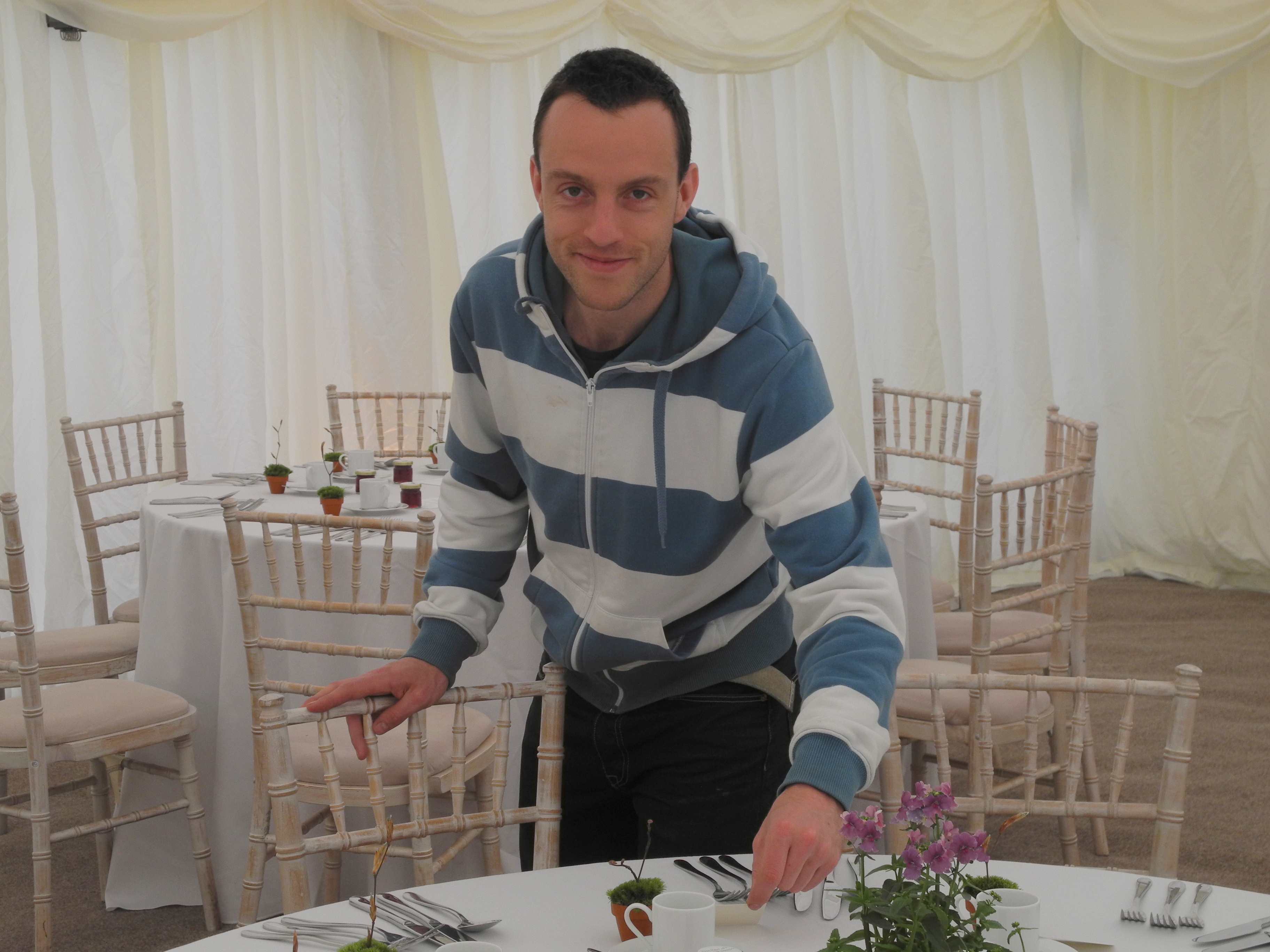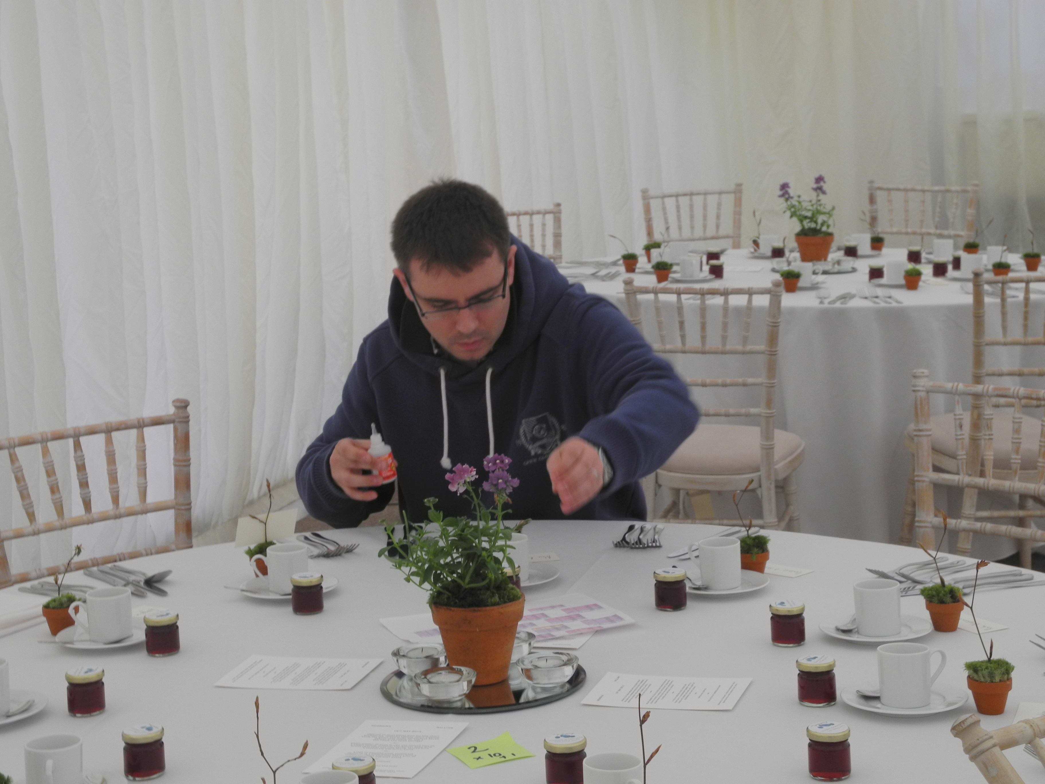 19th May, Georgie’s big day. Non of us has touched sides, certainly since I arrived on Wednesday. Helen has been busy with the cake, a whole platoon of women from the village, friends and family have been working with the flowers in the church and the boys have been working in the Marque. Nothing much left to do now till kick-off at 2.30.