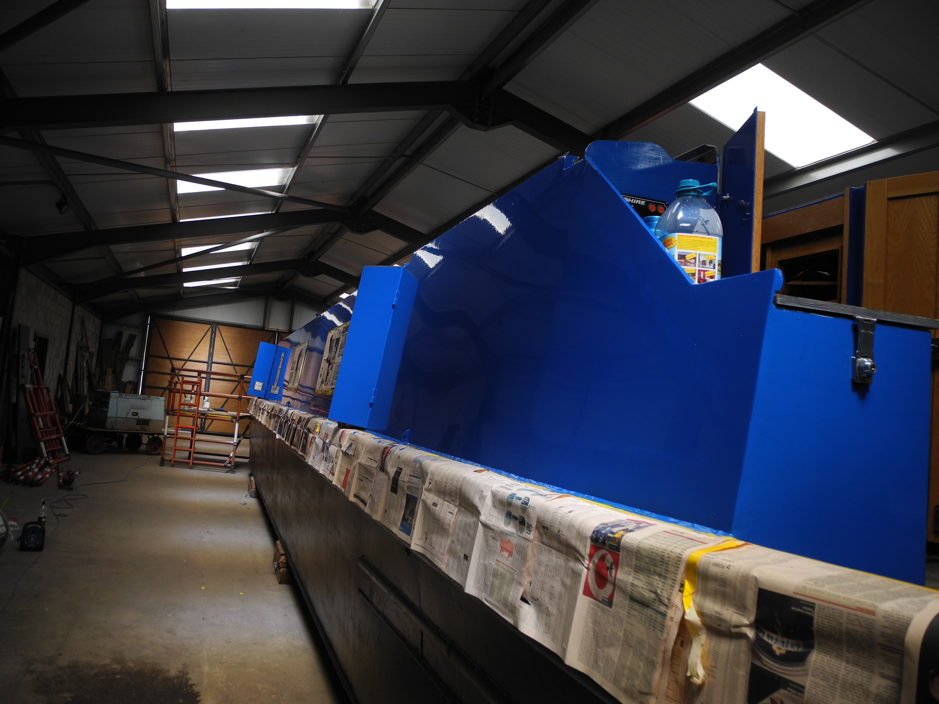 24th May. Today I started the painting on the masked side while Jon finnished masking the other side. I think it is going to be OK. Jon finnished masking by lunch time and set off home. I completed the painting, it took about 6 hours.