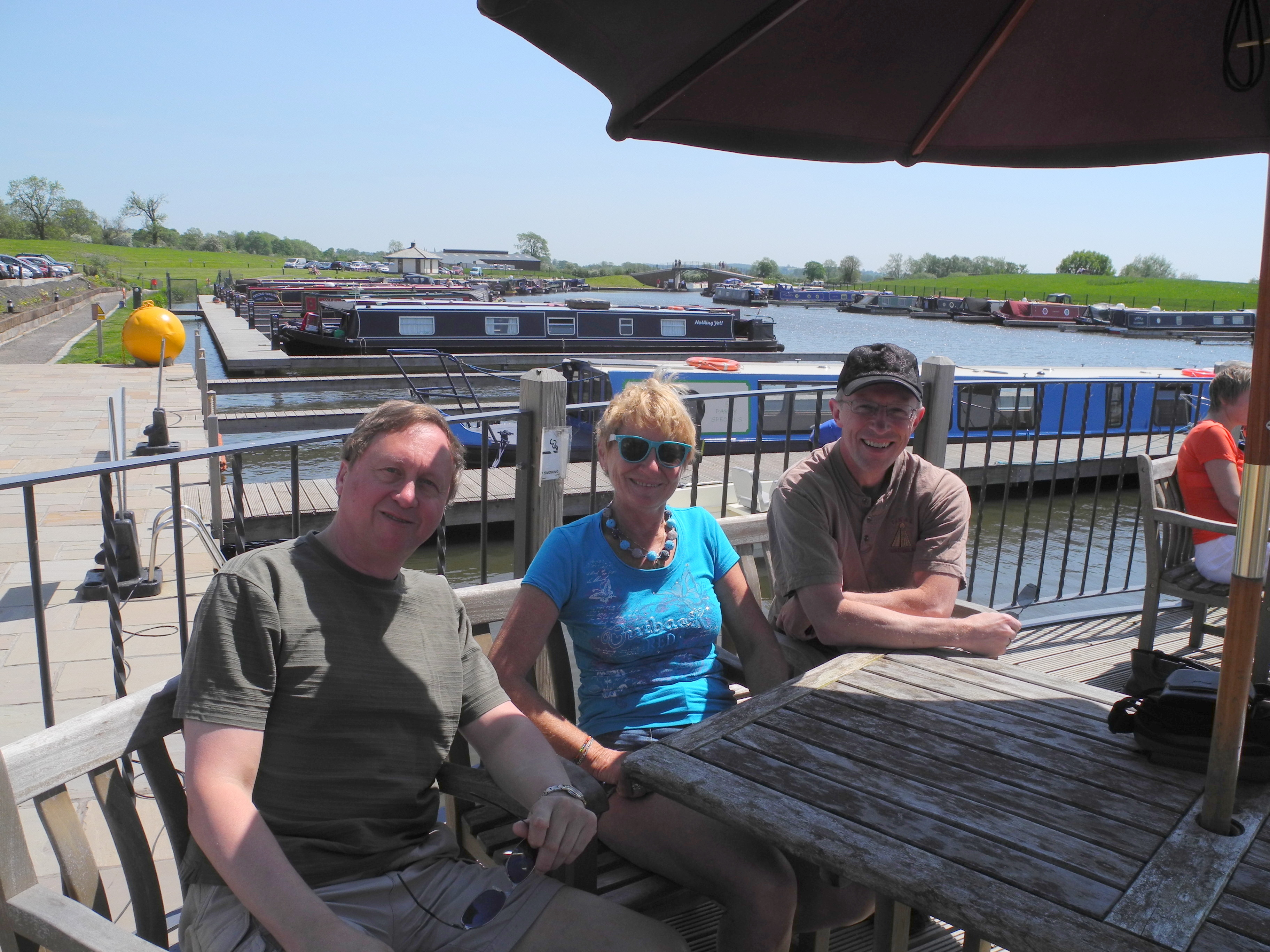 27th May. Sunday, a day off. Robert and Stephen came over for lunch, had a look at the boat and walked to the lock to watch it working. It was really lovely to see them again and I really enjoyed their visit.