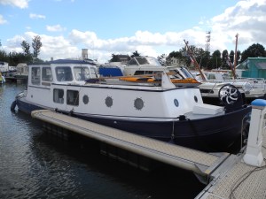 19th September. Another restless night thinking about how I might modify one of the boats I had looked at. Looked at two additional boats and revisited another. Did some talking to Catherine in the Office and to some other boaters on the pontoon and it became evident that I would find single handed on the French waterways easier on a barge than on a cruiser. This made a nonence of everything I had been told in England and had me wondering if I might not have been better hanging onto Carpe Diem! However I have always fancied a Dutch Barge and “Libertè” is quite cute. At 11m9 x 3m10 she is not huge and can negotiate all the waterways in France, Belgium and Holland. She is a venerable old lady having been built in 1910 and has been lovingly cared for by Americans, Stewart and Judy, for the last fourteen years. I want to have quite a lot done and spen an hour this evening with the workshop manager going through possibilities for which he will give me a quote. I have signed a contract and paid a deposit and must now arrange for a survey but it can all be done long distance from here on so I will head back to UK tomorrow.