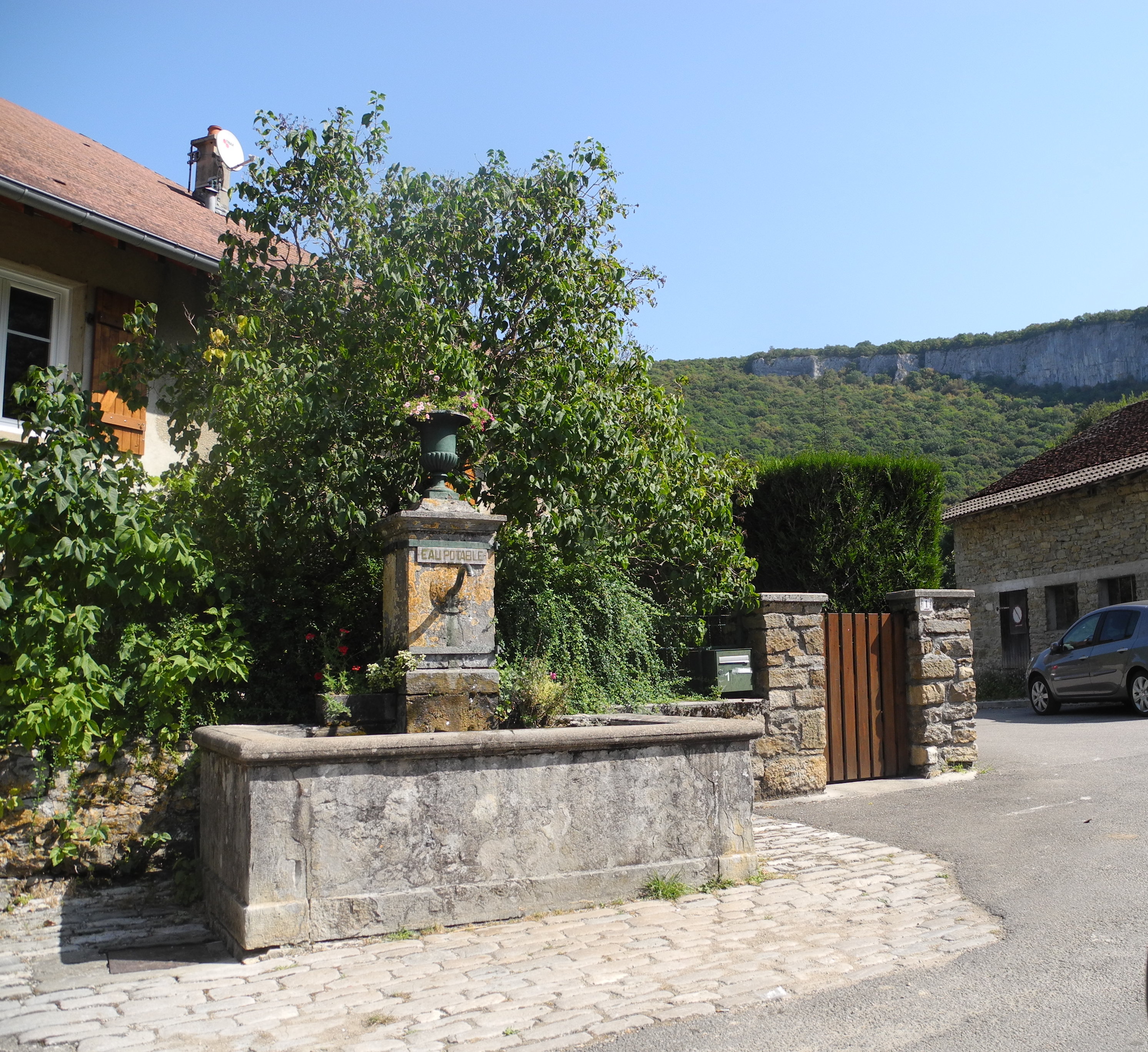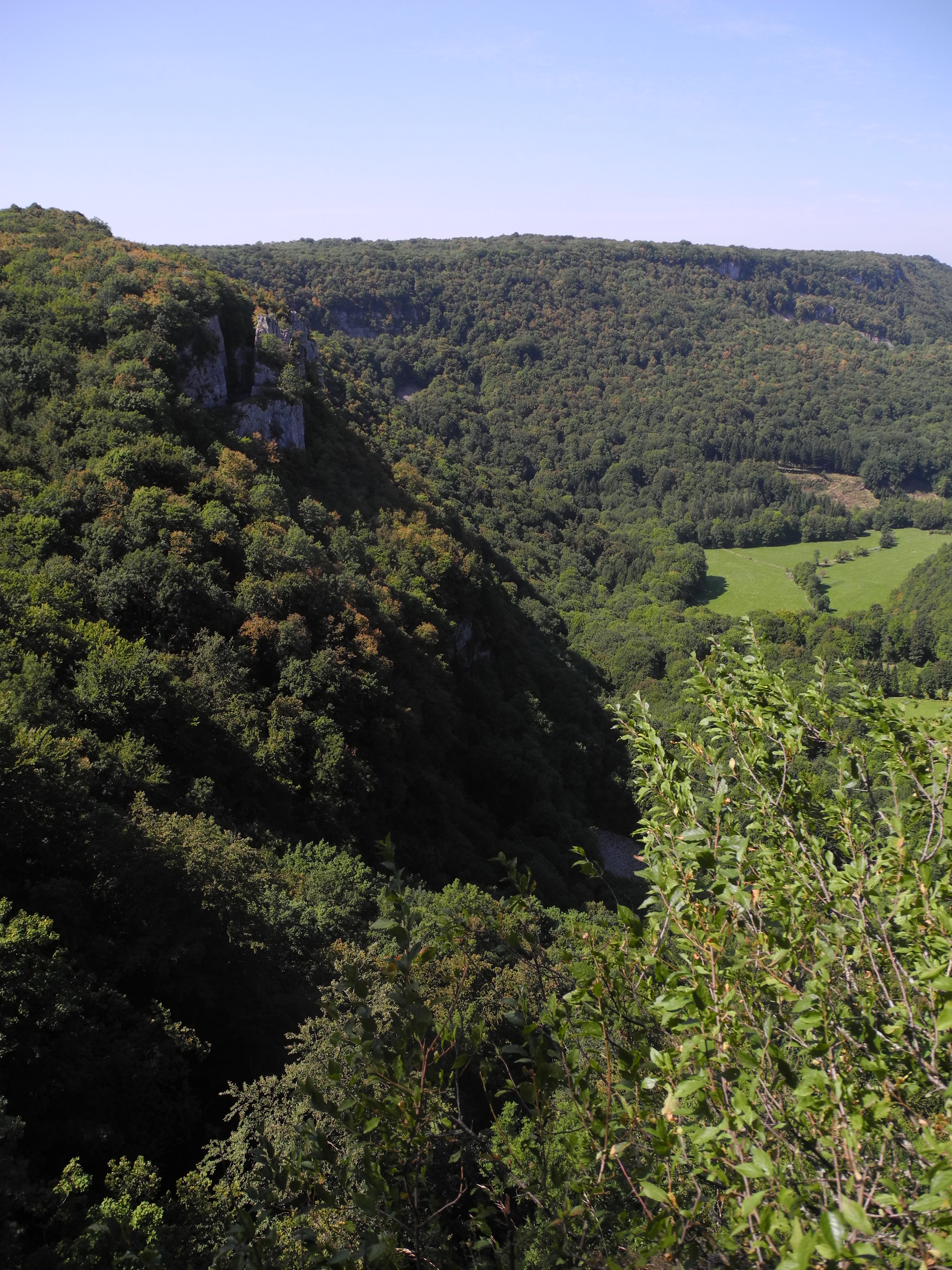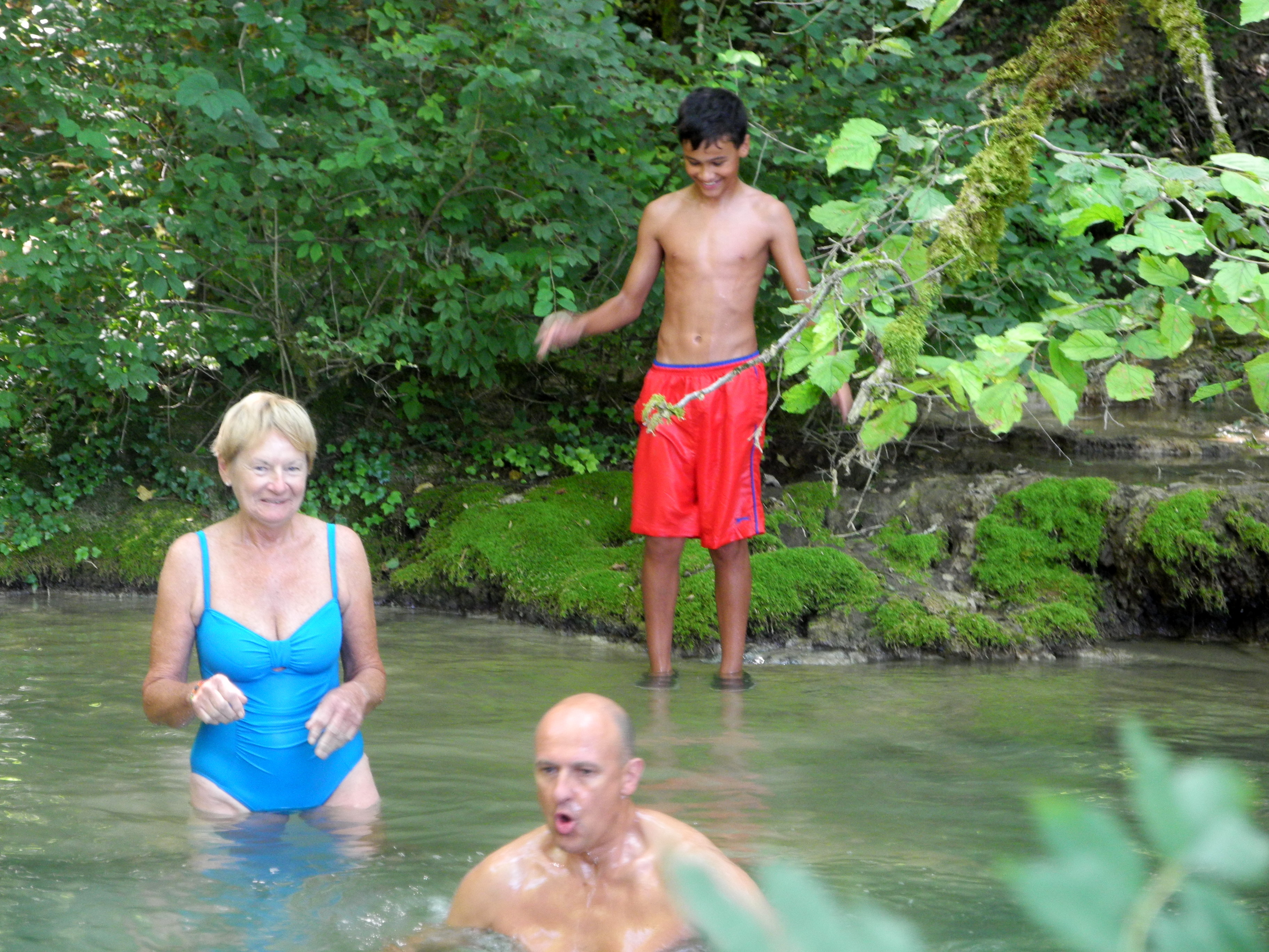 23rd Friday. Nice drive through lovely countryside to Les Planches and the Cascade de Tufs. From there on some lovely mountain roads to Baume=les-Messieurs to visit the Abby. We had a swim in the icy pools at the bottom of the waterfall and a picnic in a flower strewn meadow.