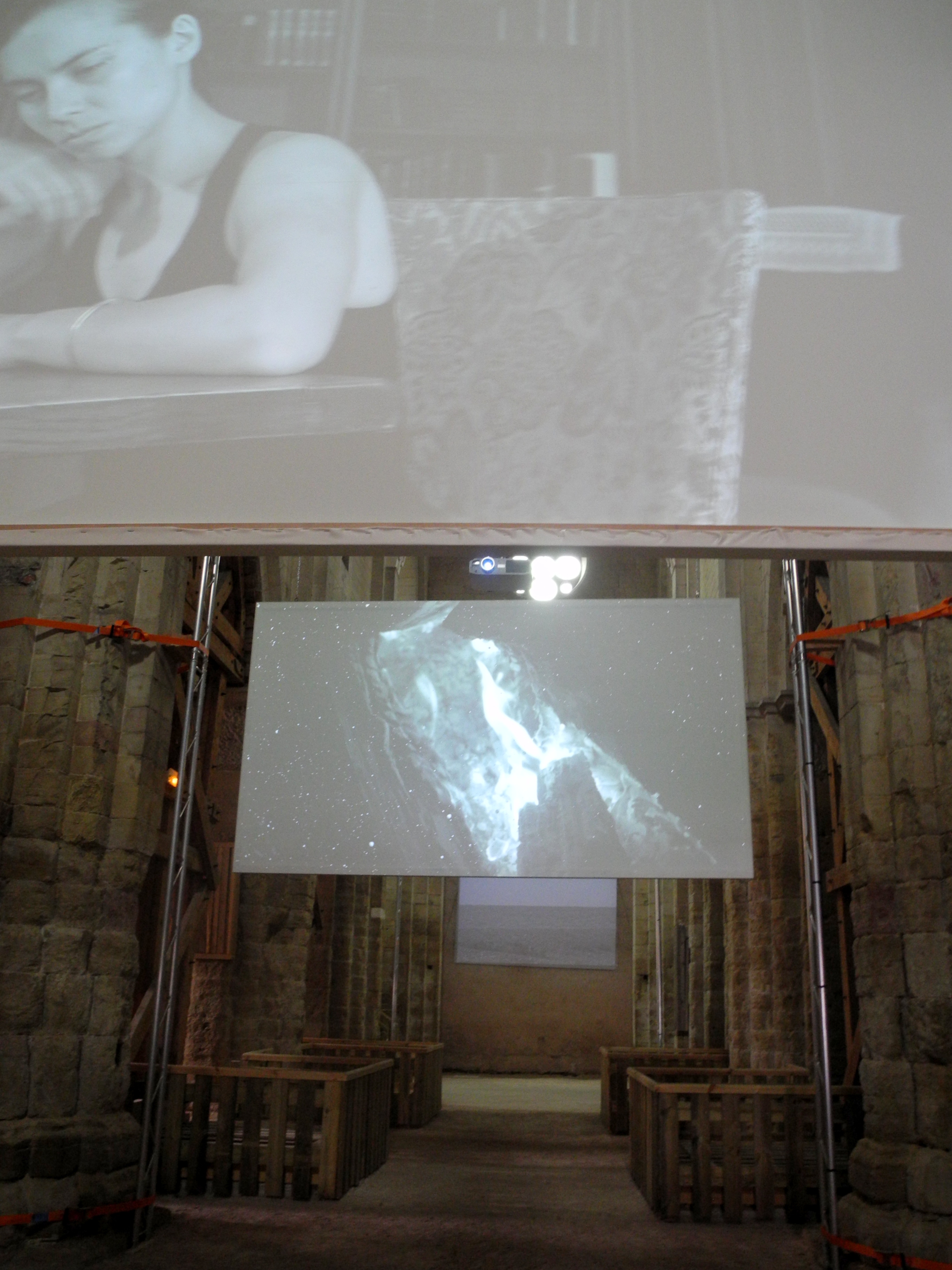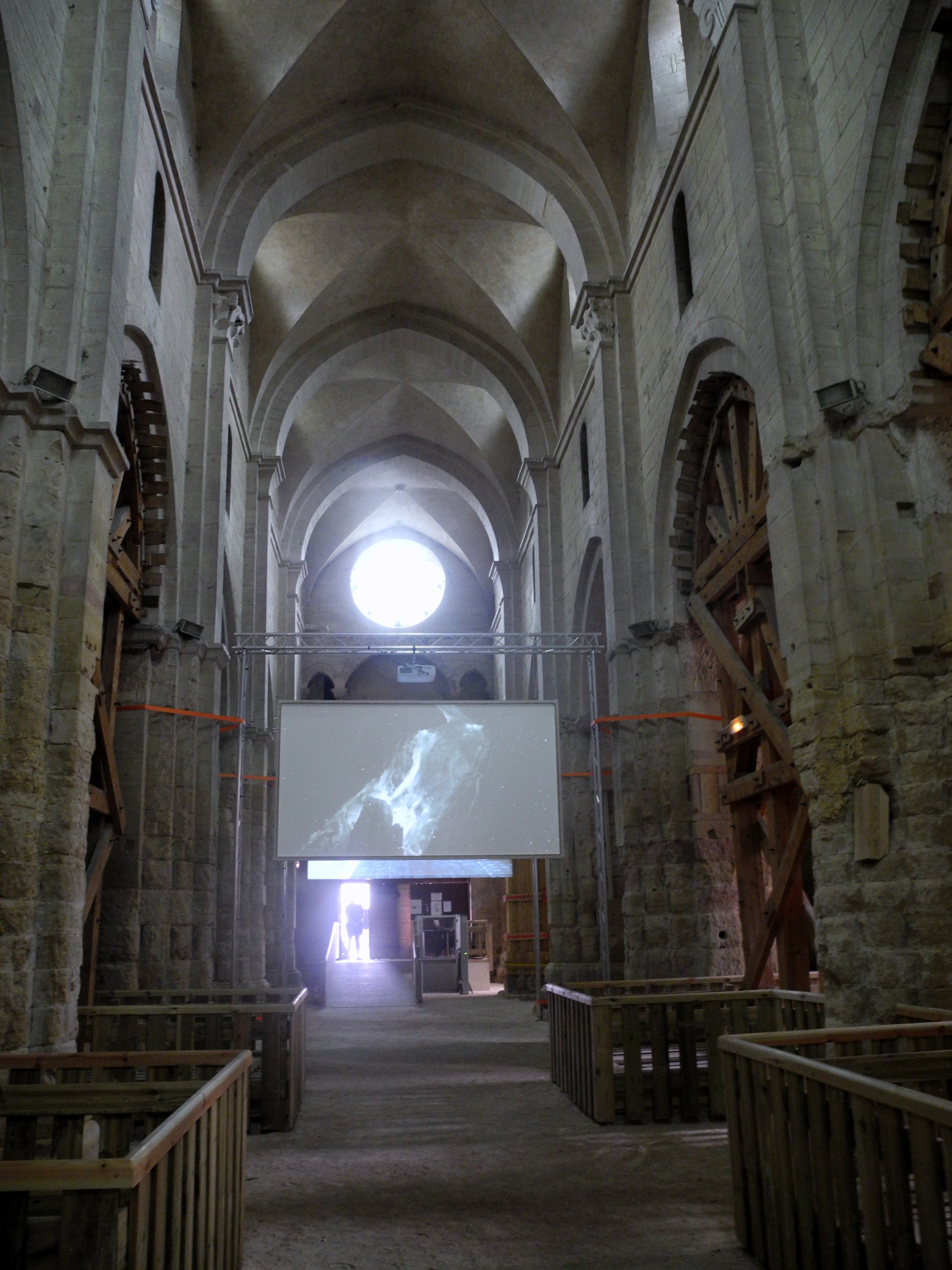 From there we moved to St. Philibert’s C12 church right next door but which is in a serious state of degradation and largely held up by wooden props. It is currently and art space and featured an interesting photographic installation when we visited.