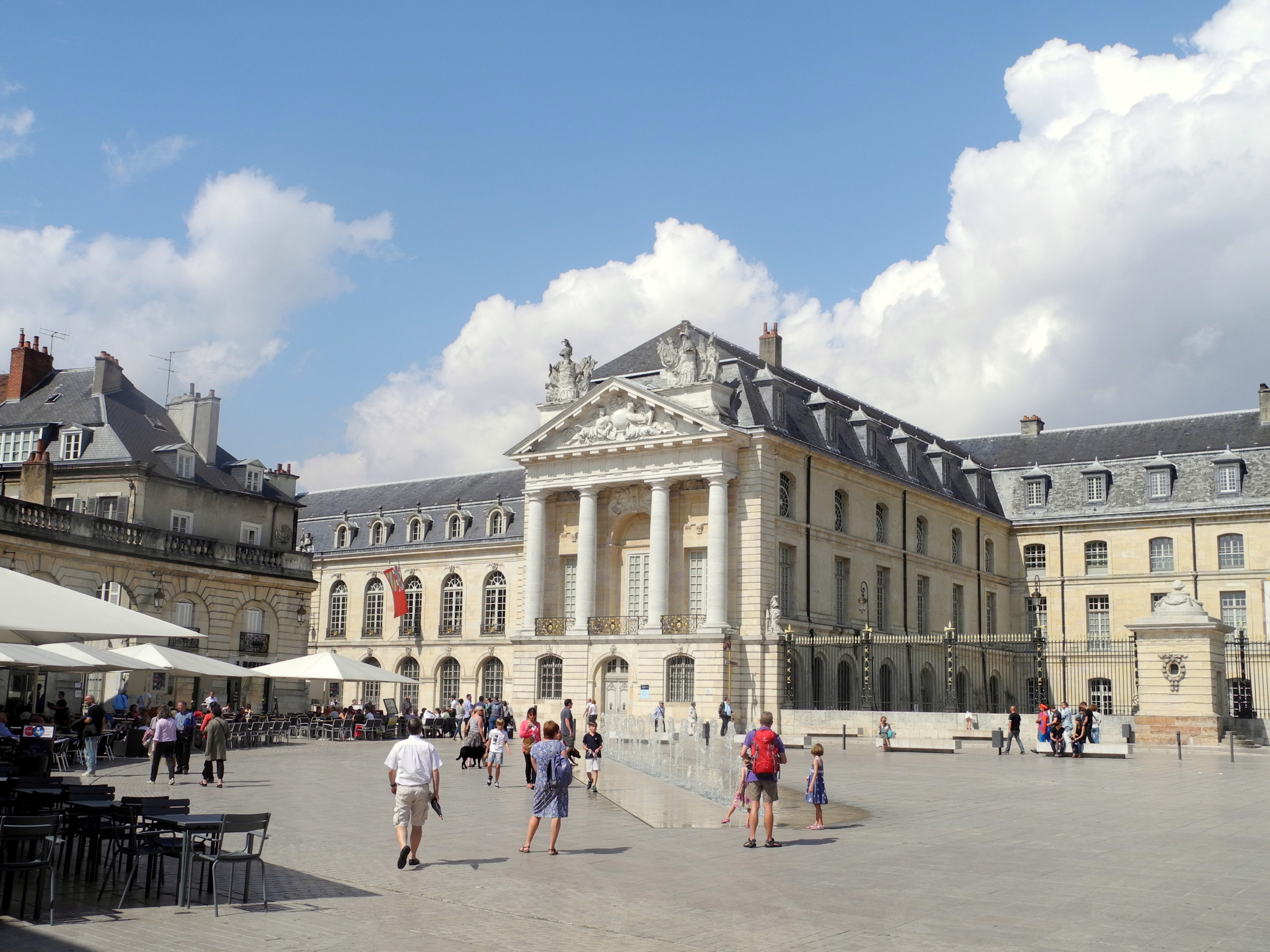 204. lunchAfter lunch we followed the owl trail round town and took in a number of handsome buildings that Hannie and I had missed on our walk including the place de le Palaice de Ducs. This was a very attractive space with a crescent of handsome stone buildings facing the palace and a number of fountains.