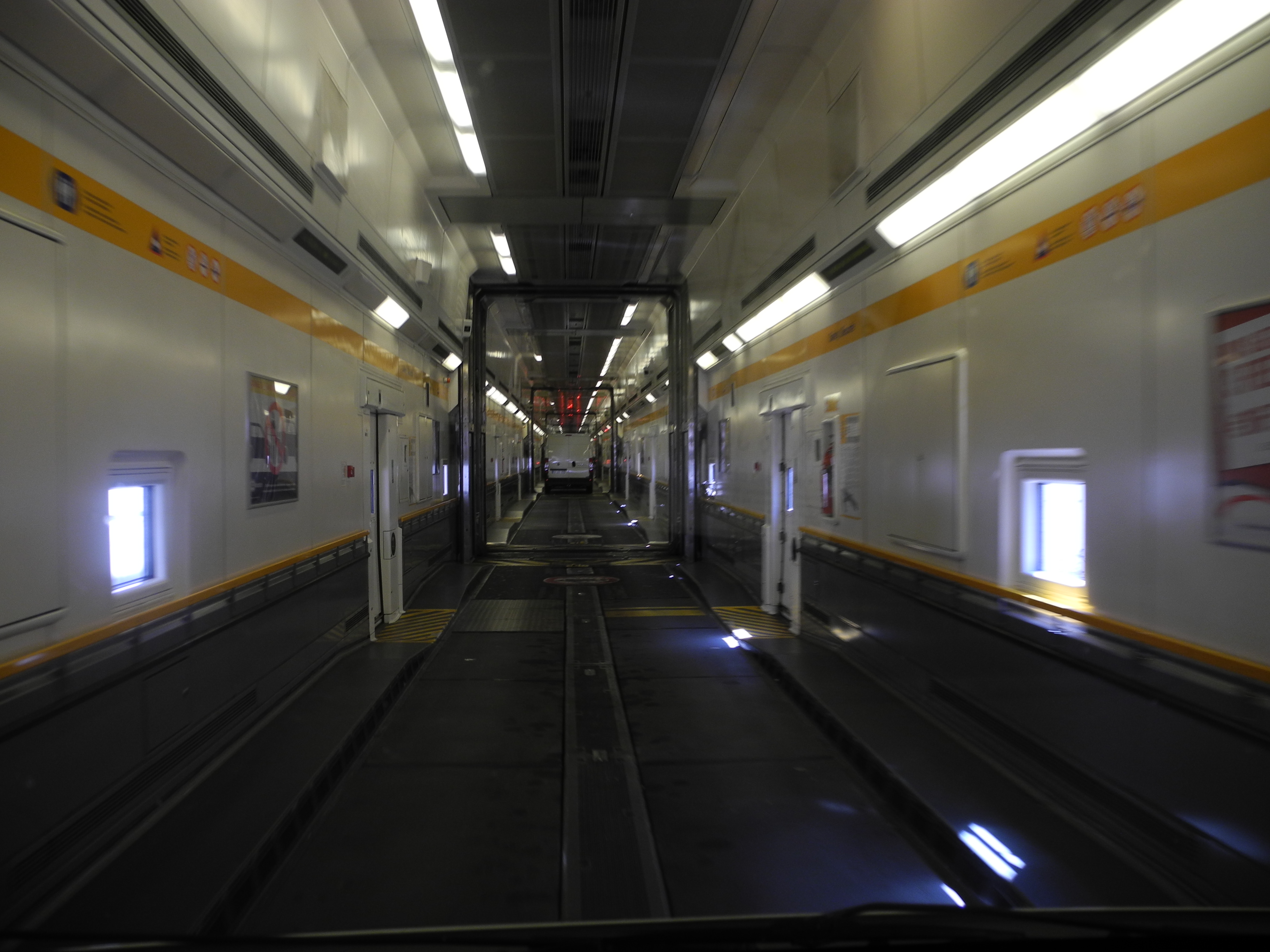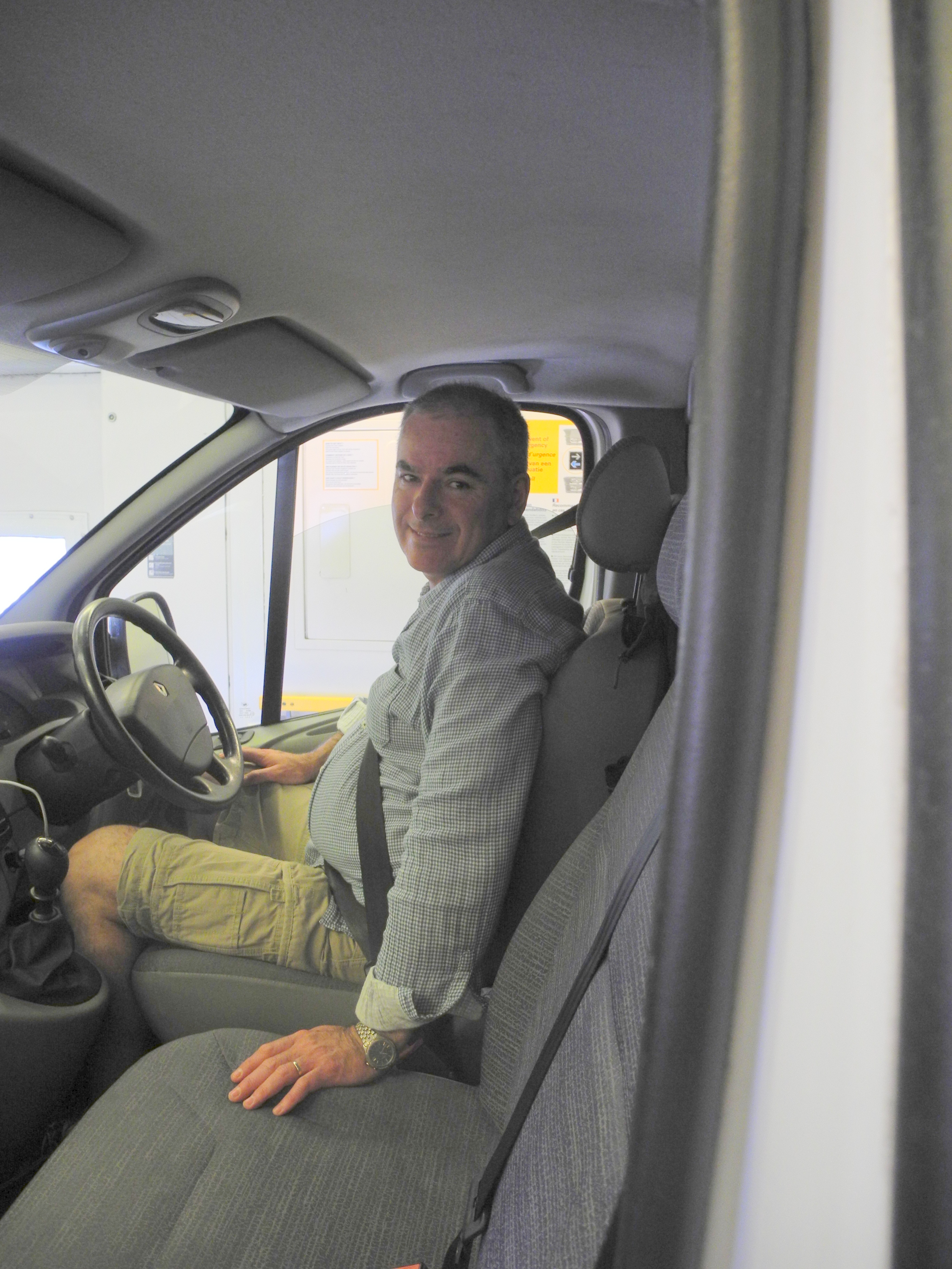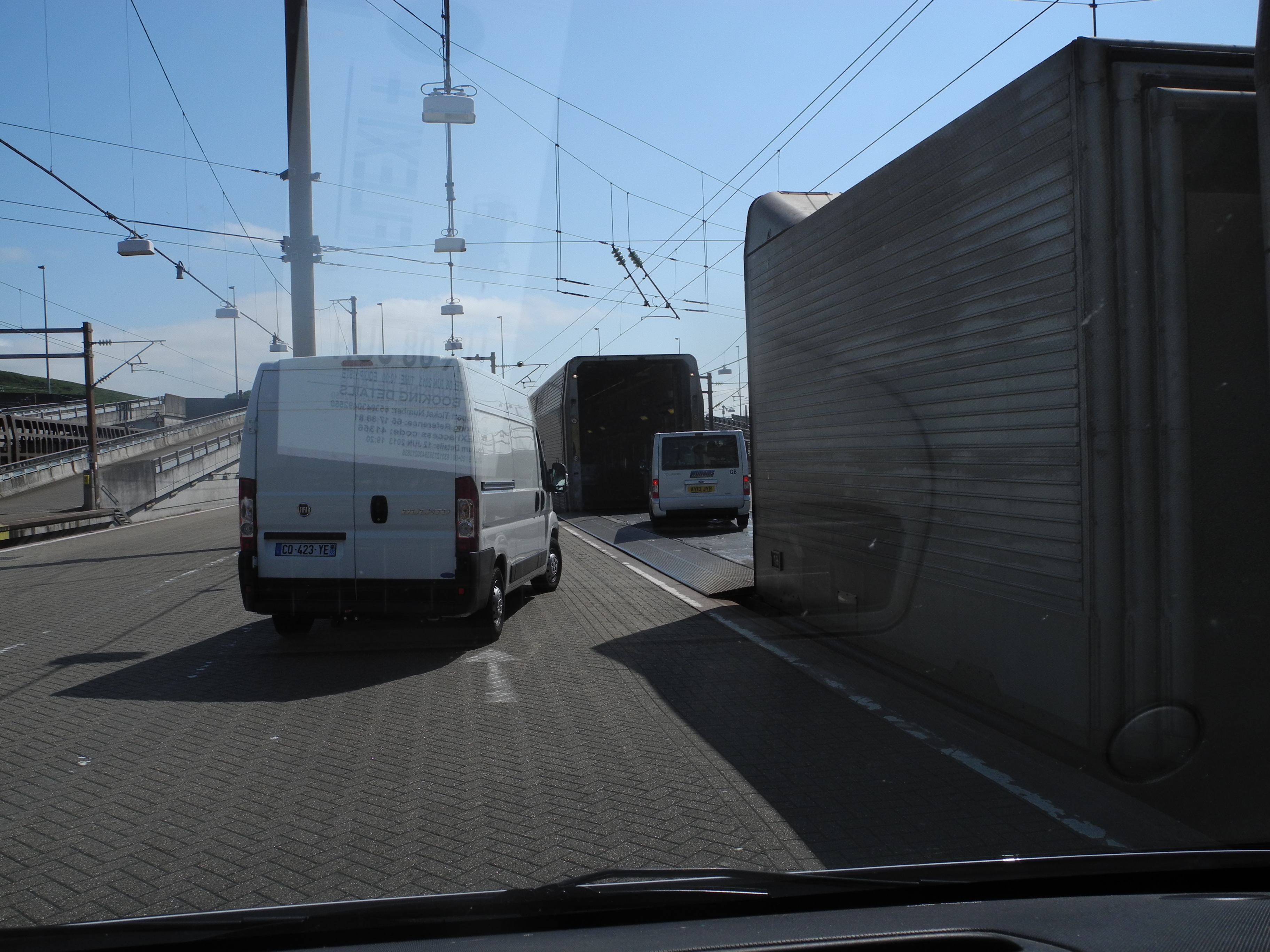 8th June. Jon had hired a van and all the stuff from my old boat, including my bike, was in the back. We took the Channel Tunnel to France in the Van. This was an interesting experience, starting with the styalised chalk horse on the Dover hillside, through to the modern terminal and the boarding experience.