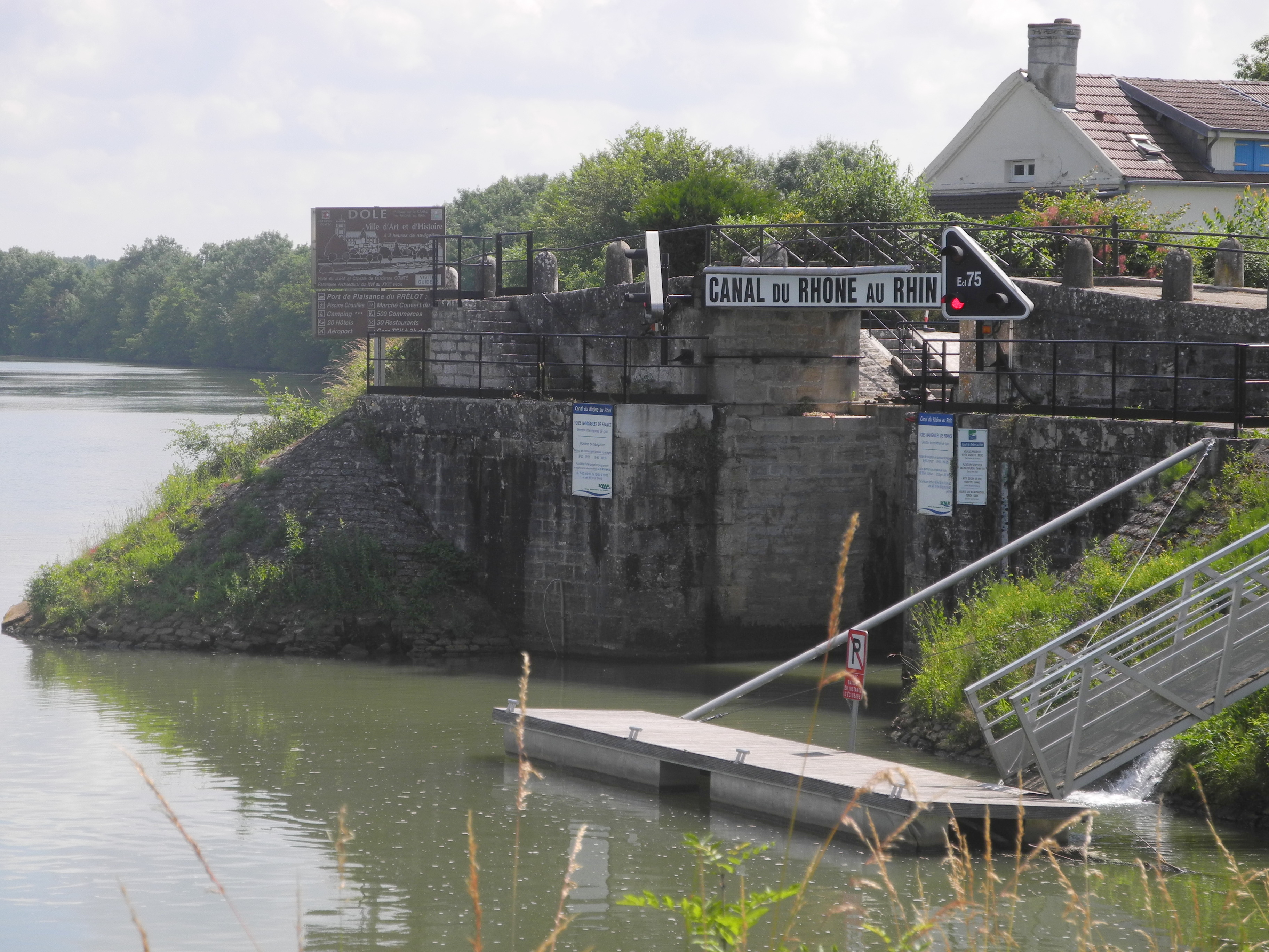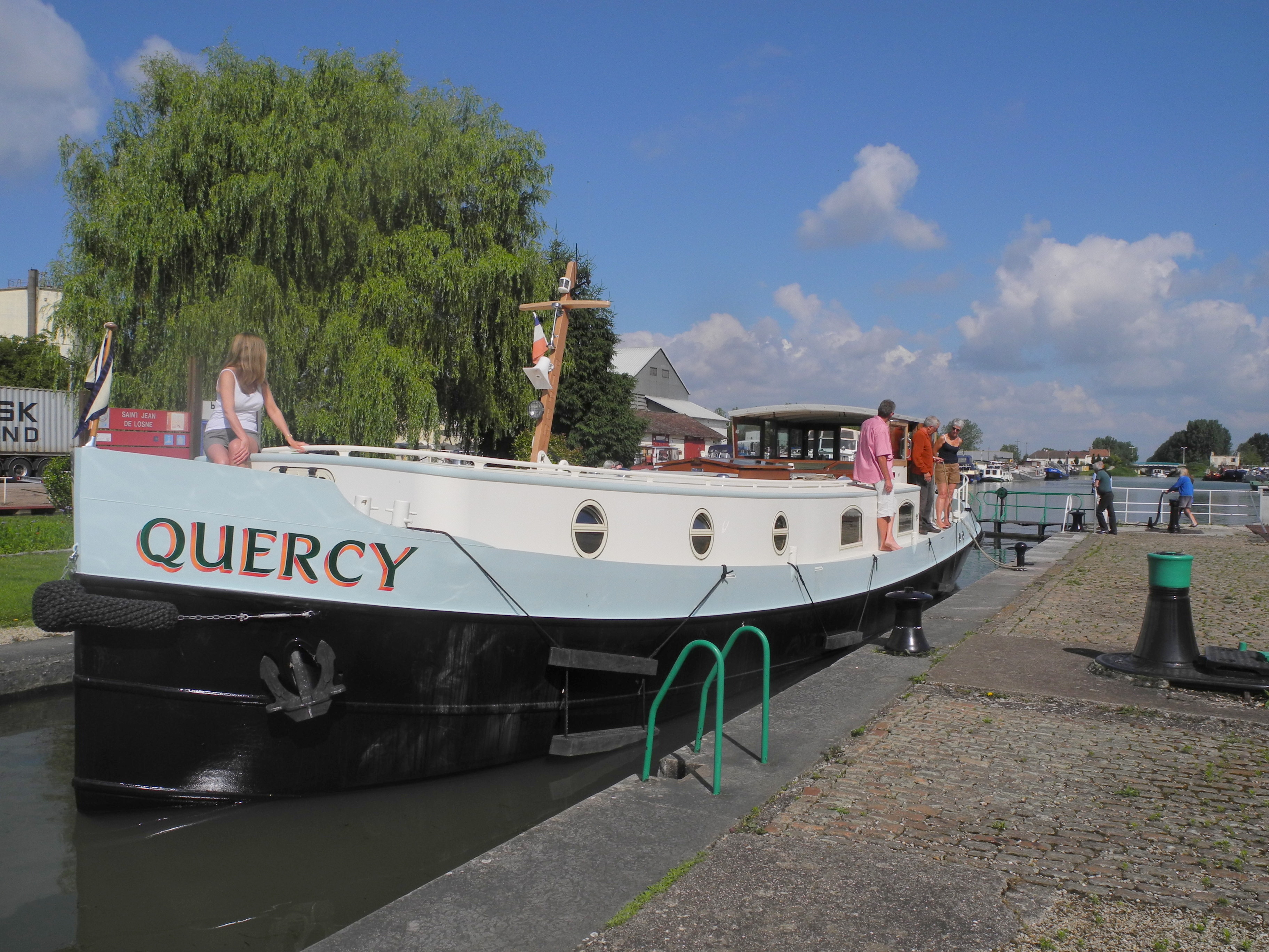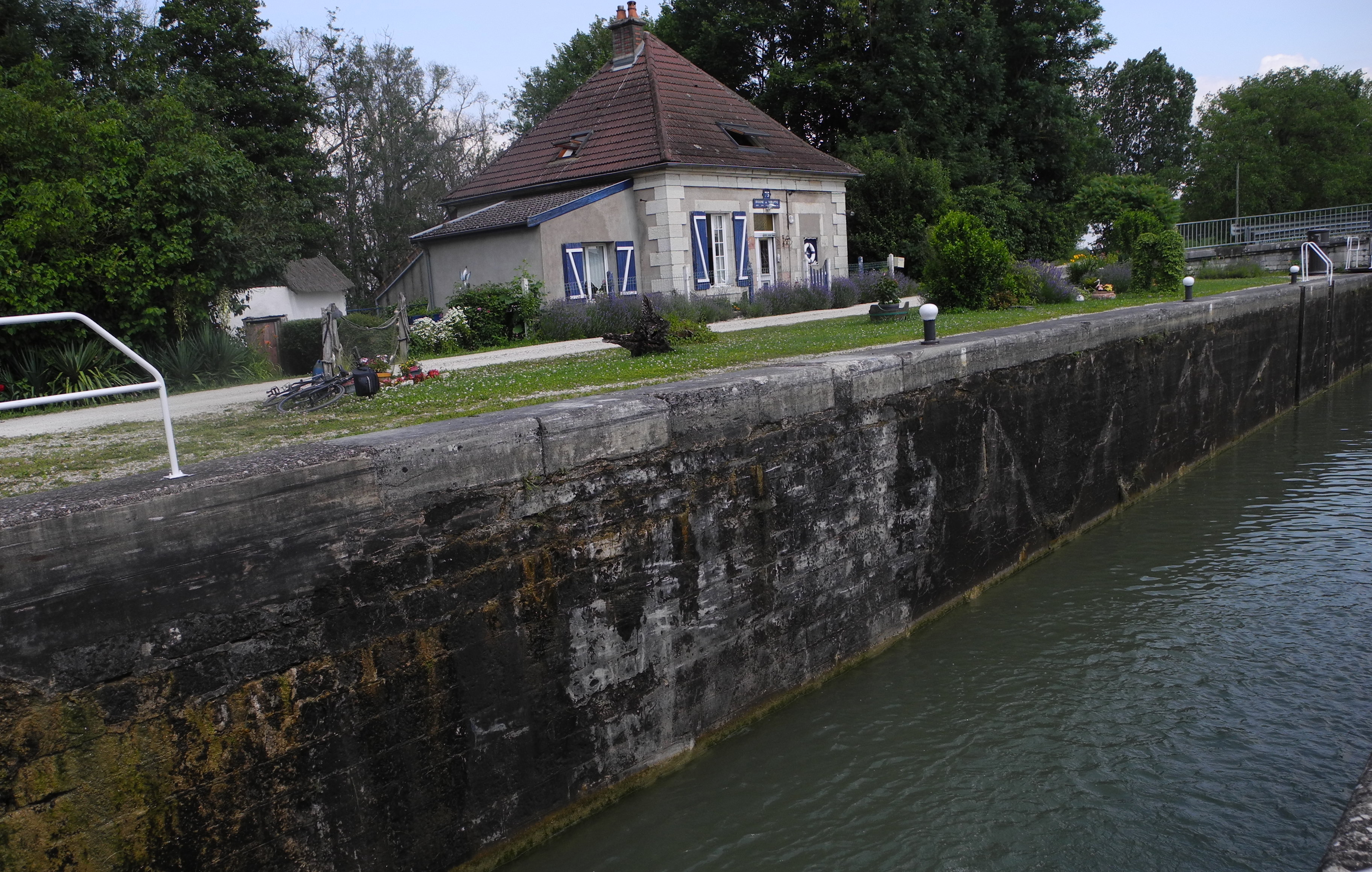 30th June. The other guest on “Jubilant”, Ulricht, took his boat that had been moored alongside, up to the old lock with Helen, Steve and Stephany along for the ride and a picnic. I was going off on a cycle ride down the tow path towards Dole but stopped by the lock to see them through.