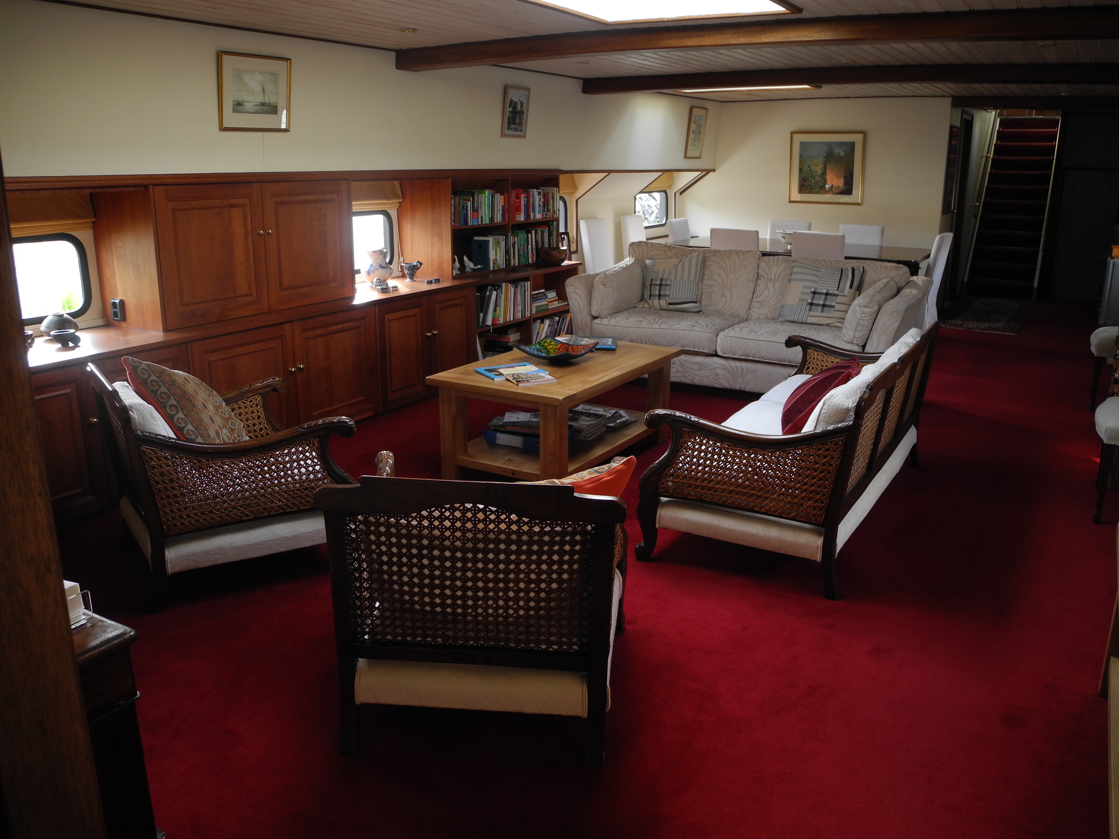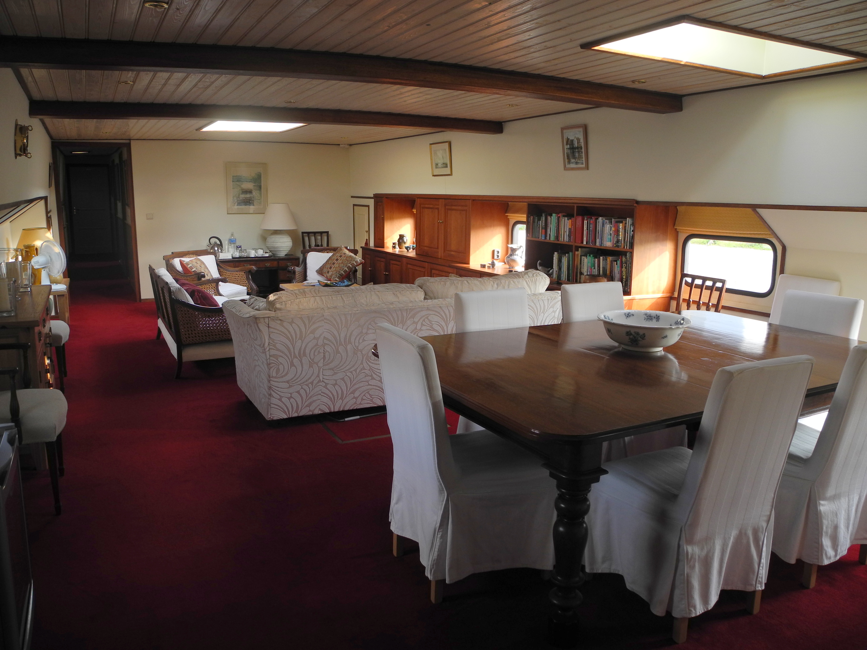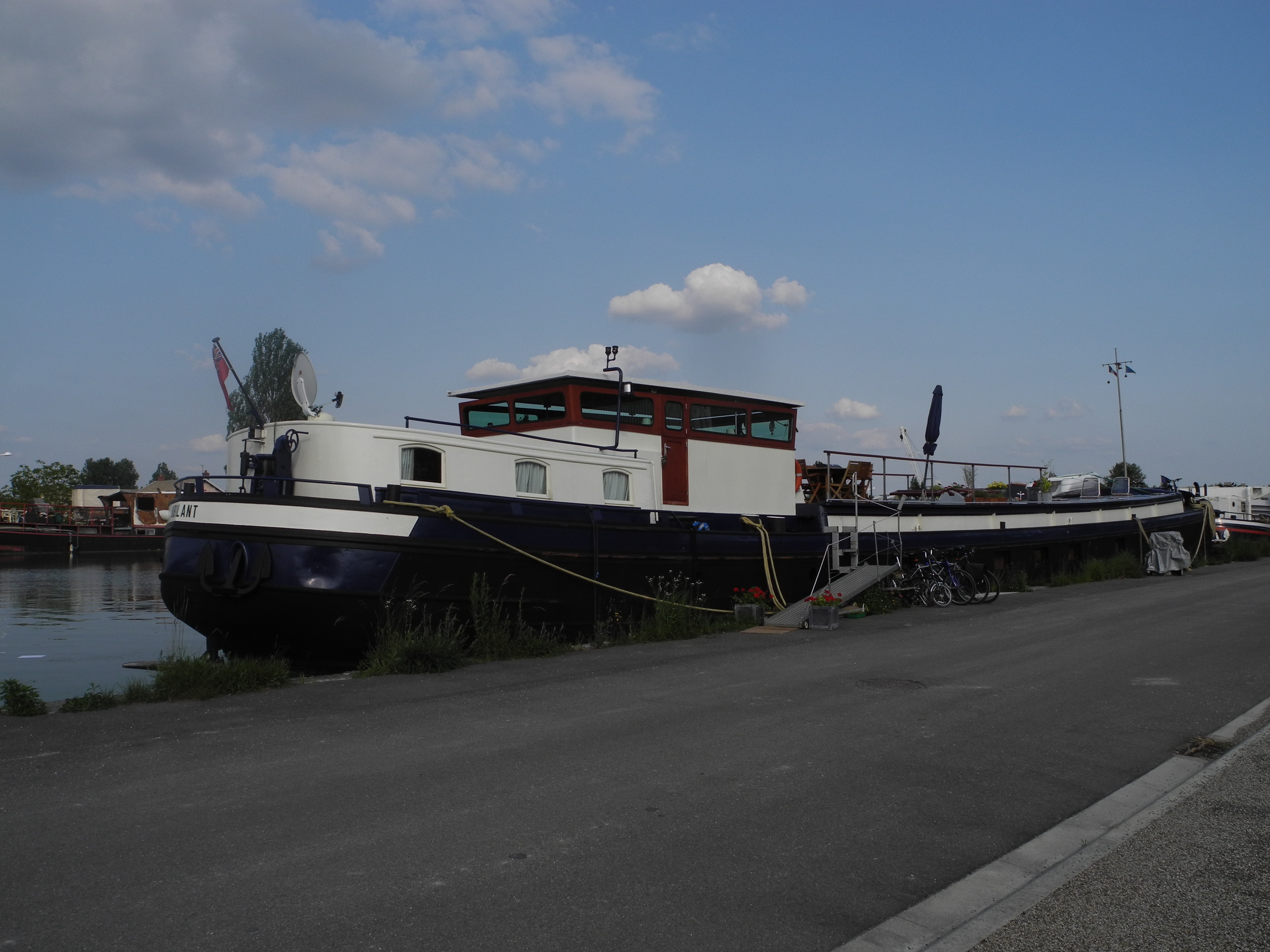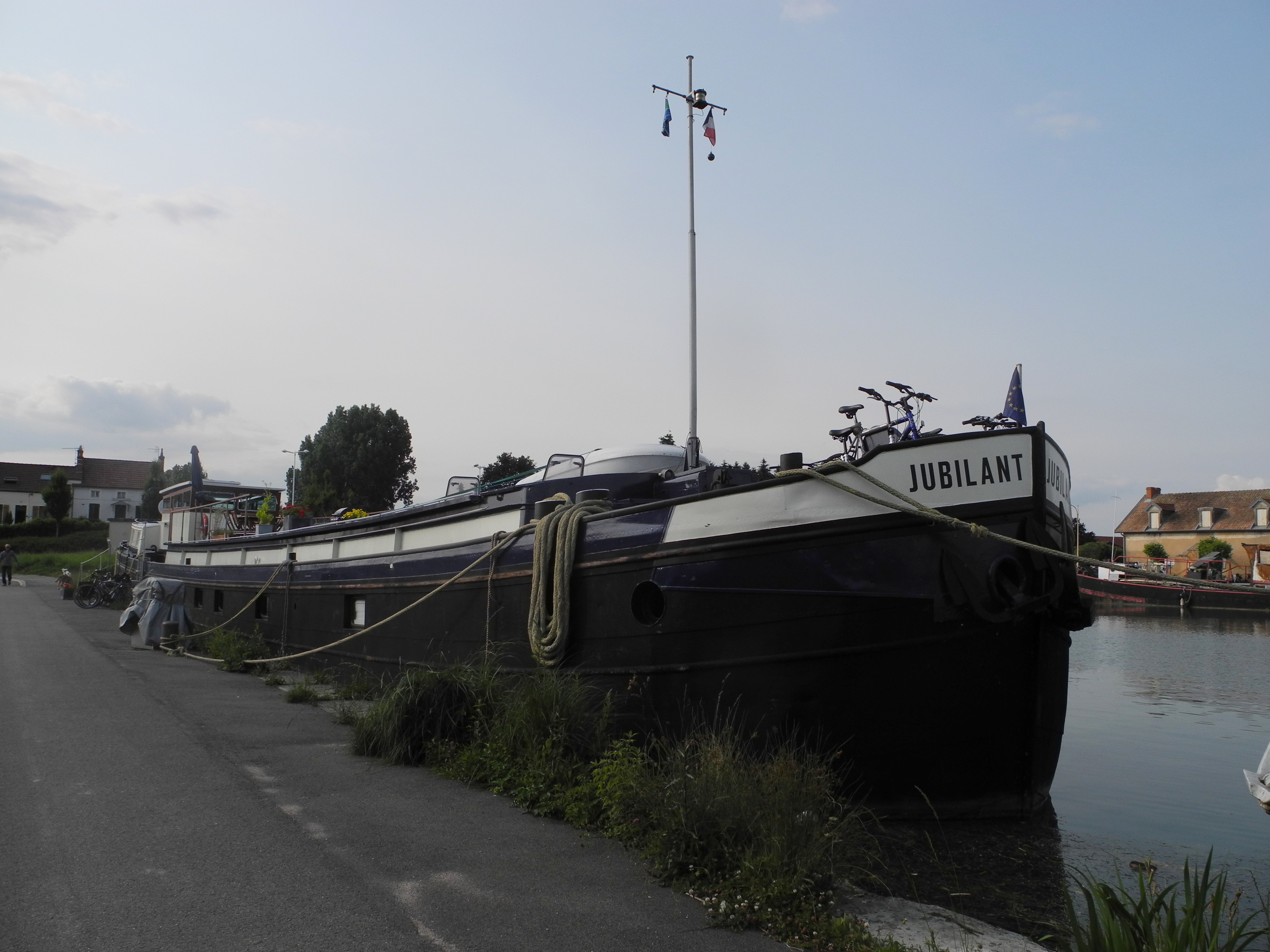 25th June. Early start for the journey by trains (8 of them!) to St Jean de Losnse where 10 hours later Phillippe met me at the station. We stopped at the boat for a quick look and there had been quite a lot of progress. Next stop “Jubilant” a huge B&B barge that will be my home till Monday when I will move into a boat to myself in the harbour. It is very luxurious. After settling into my suite I met the only other guest and had dinner with the owners, English Rose, Helen and her South African husband.