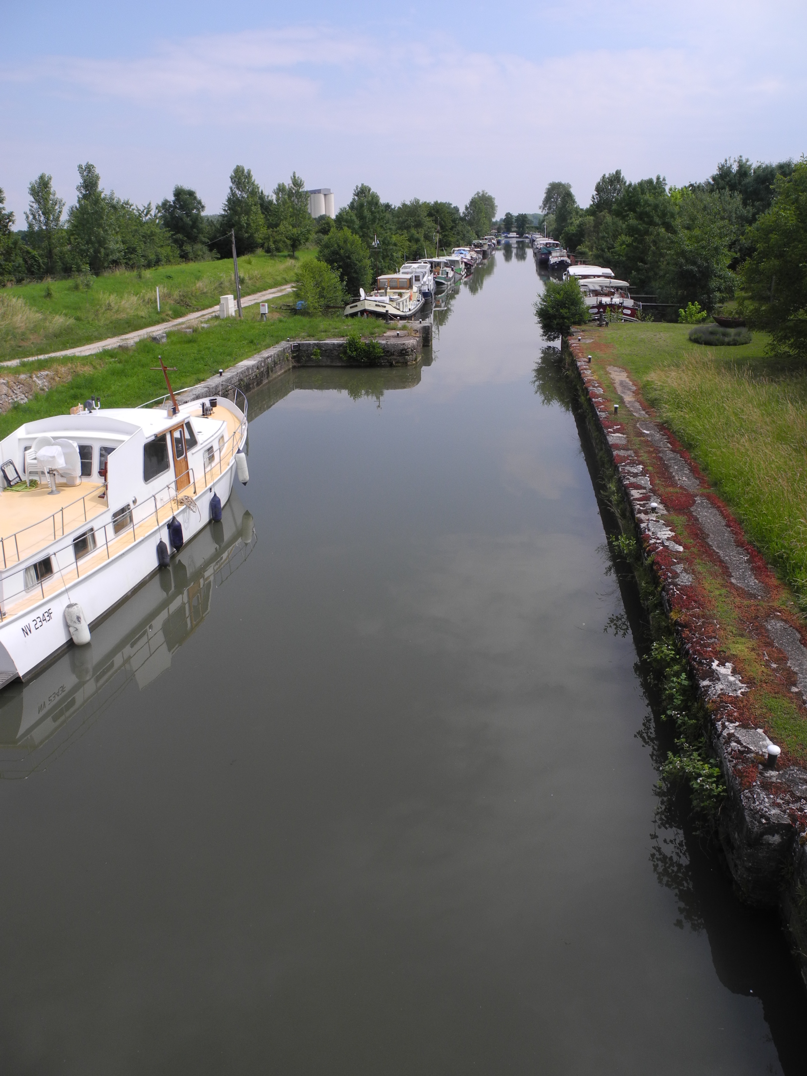 27th June. took a ride along the river Soane to the south today to visit “The Old Lock”. this is at a point where the course of the river has been straightened to avoid an ox bow and a lock. The resultant basin provides a lovely rural mooring site for long stay boats each with a little patch of garden. I caught a Heron on the bank.