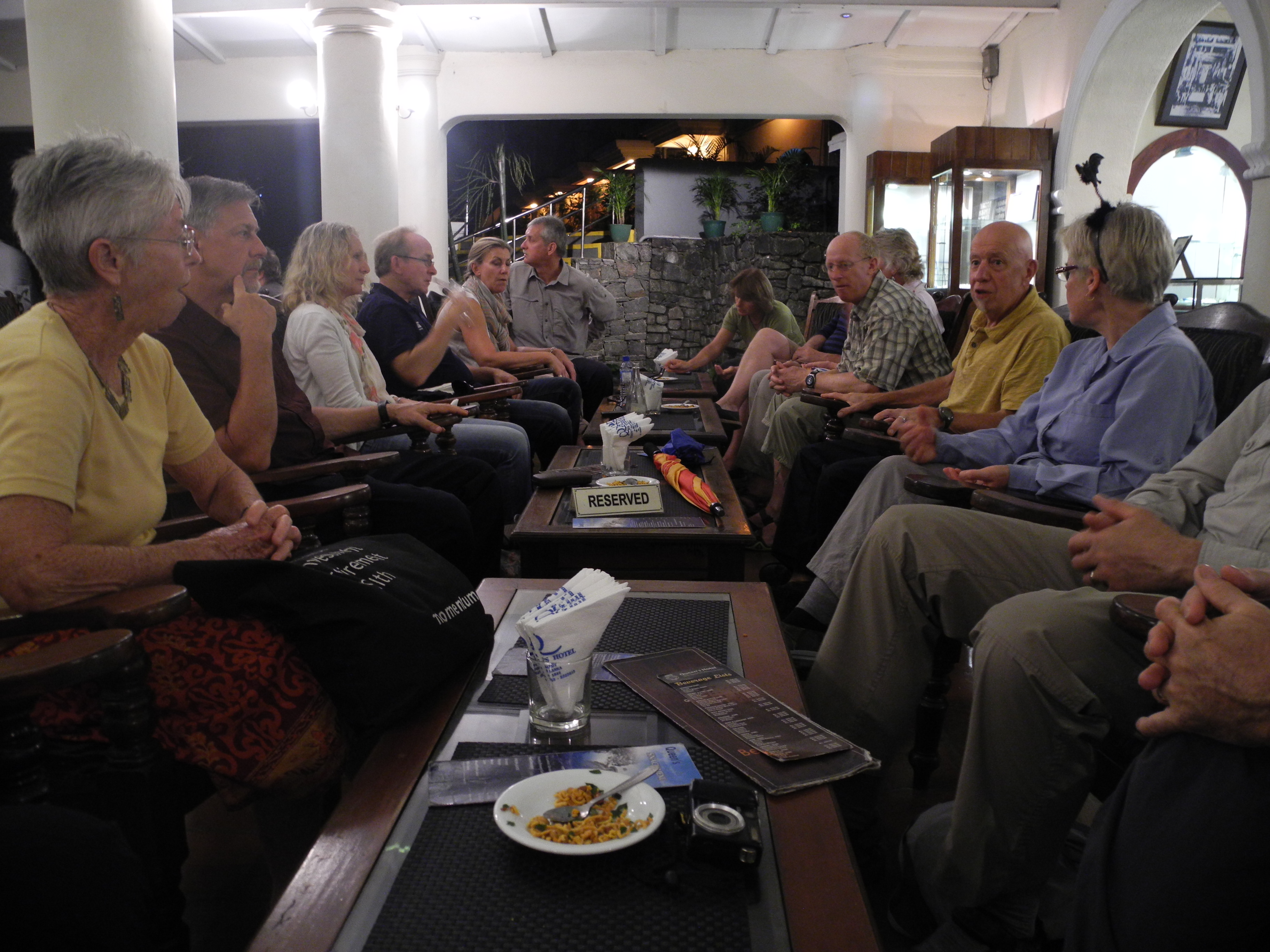 With 15 of my newest best friends -12 Brits, 2 South Afrikaners,and 1 Swiss- we joined our guide “Suresh”and staff to journey hours inland to Dambulla in center of this country where ourcycle adventure would begin the following morn.   Suresh’s instructions at breakfast were fairly simple – do not overtake and pass any public buses while riding and do “maximum damage” to all breakfast/lunch/dinner buffets and bars that we encounter.   Since many Sri Lankans do not own cars, the country has a very efficient bus system that appears to service both main and back roads every 10 minutes or so and these buses have no patience for tourists-on-bicycles that might slow their entrepreneurial equation of maximizing passengers and miles in the least time.    Given the distances we biked most days, it was a joy to rediscover our long-dormant teenage metabolisms and follow the simple “see-food-do-maximum-damage” rule.    Regarding our numerous violations of the “bus”rule, I credit a carefree that must have returned with those metabolisms.