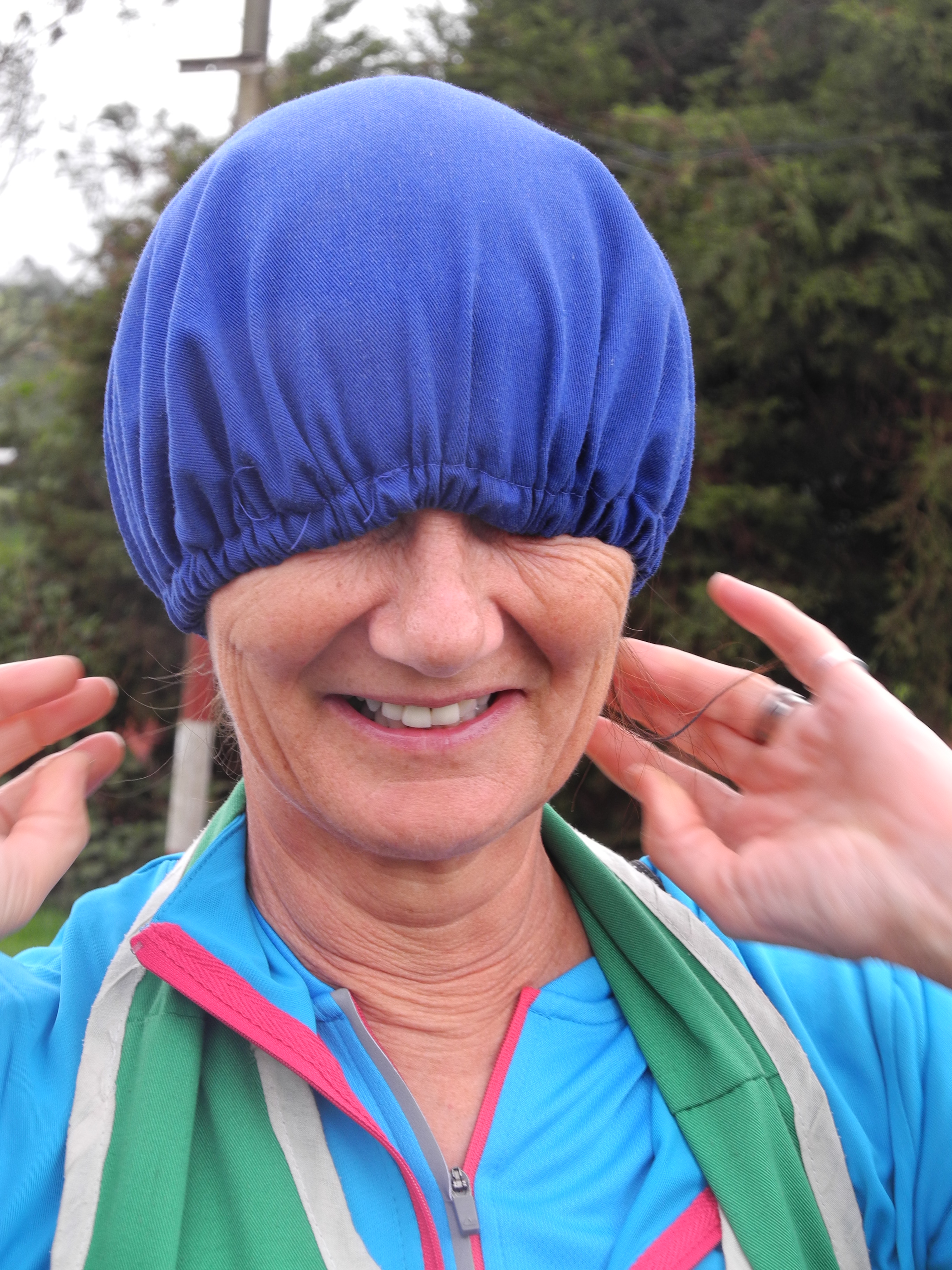 Angie sporting the Max-Dam headgear and the staff that will be leaving us today.