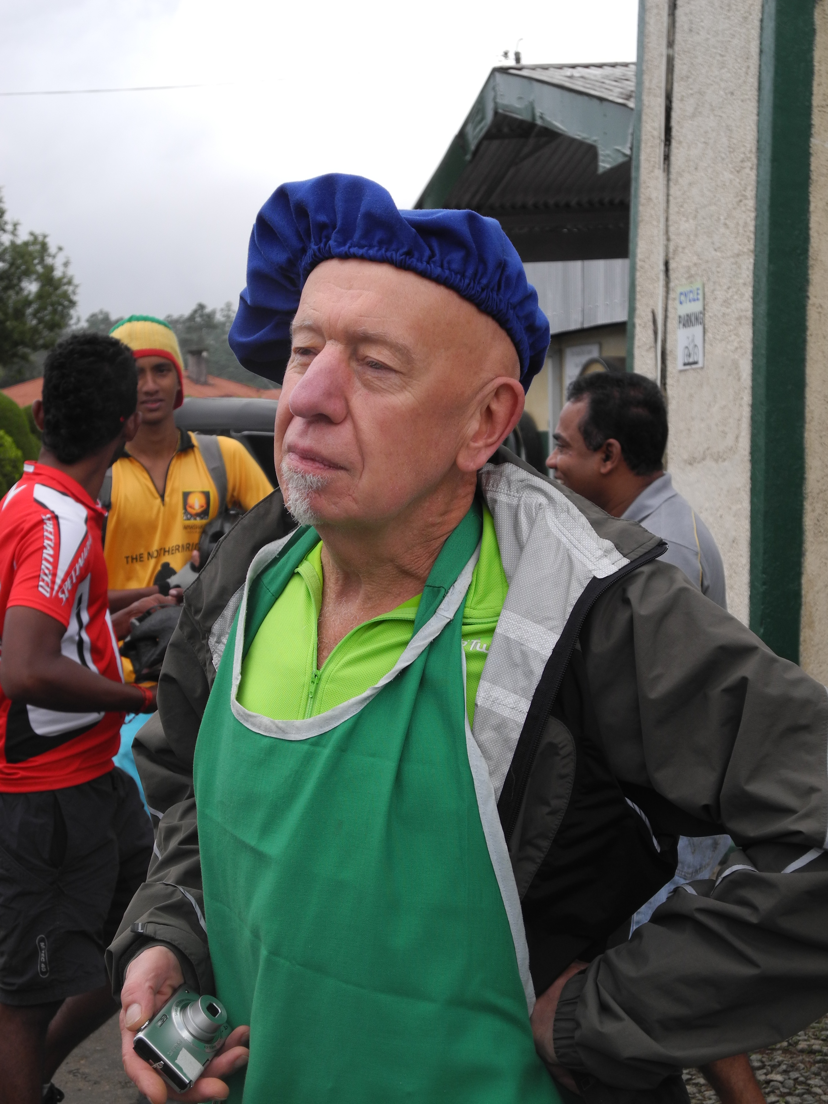 3rd November We had a slightly later start than usual because although we were scheduled to cover 66k there was a lot of downhill. After a short ride we visited a local tea factory. We had to wear aprons and caps and made a comical picture. Unfortunately we were not allowed to take photos in the factory. This was a shame as the machinery was mostly about 100 years old, the book-keeping ledgers were huge and looked like something out of Dickens and the tasting room was a work of art in dark wood and brass.