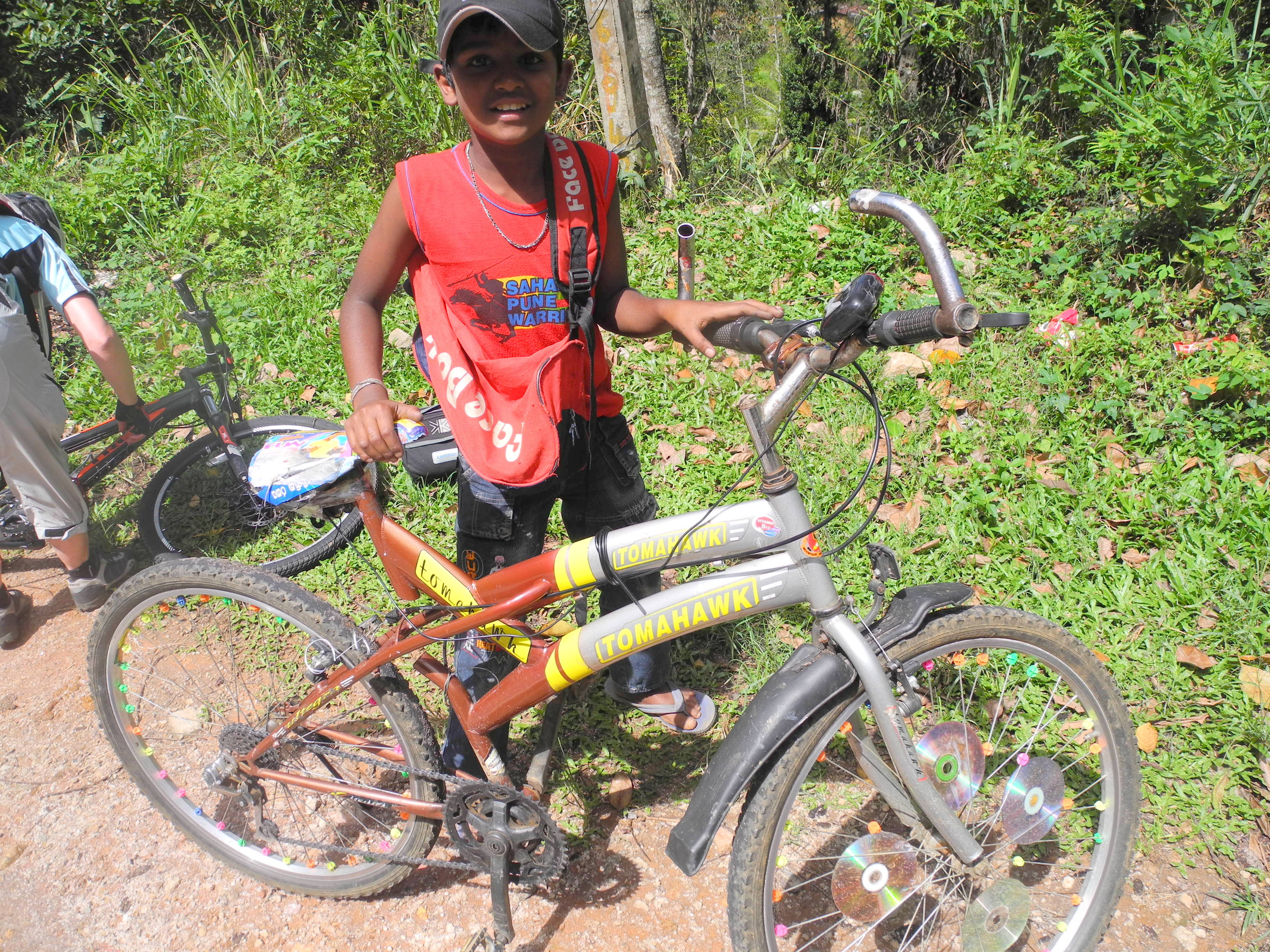 DSCN4851DSCN4852I caught up with the group at the lunch stop and we were joined by a seriously fit looking bunch of young Sri Lankan cyclist. They were on a 150k ride going up the hill we had just come down! A little way down the road Sally had a puncture. I stopped and two delightful little boys on big bikes tried to render assistance but it was not long before the back-up vehicle arrived.