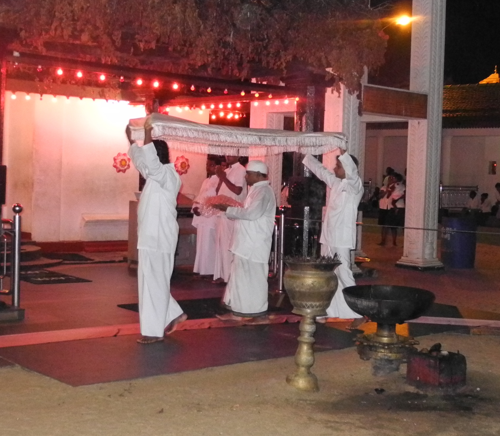 DSCN4909We went to see another site with huge Buddha’s carved into the rock face and then followed a lake and a canal that gave us the opportunity to watch people fishing. It was a long hot ride and I was quite happy to have been it the truck. The hotel was really nice with everything one could wish for including a pool and a miniature lake with resident kingfishers. In the evening we went to the Kataragama temple to watch a ceremony.