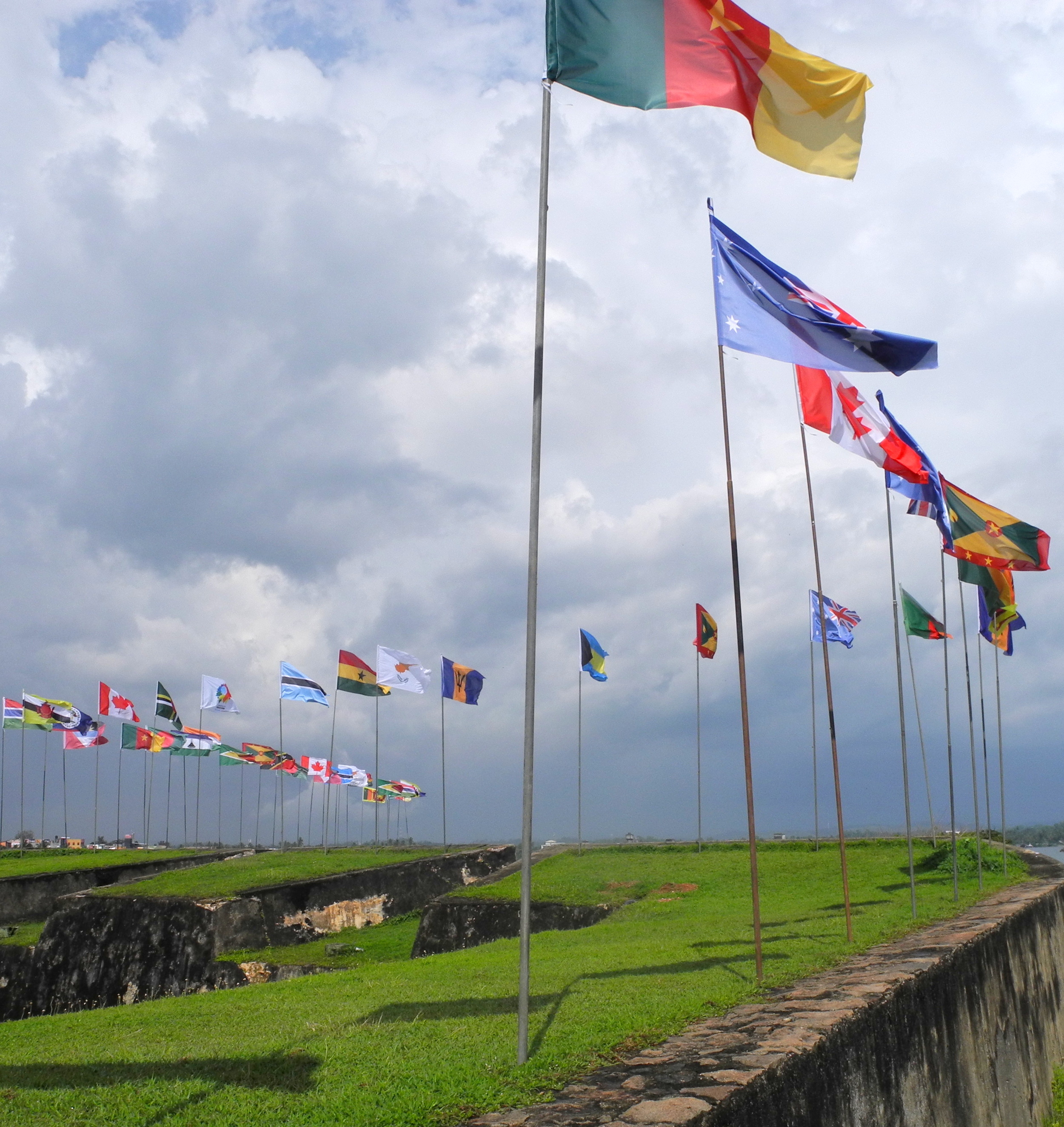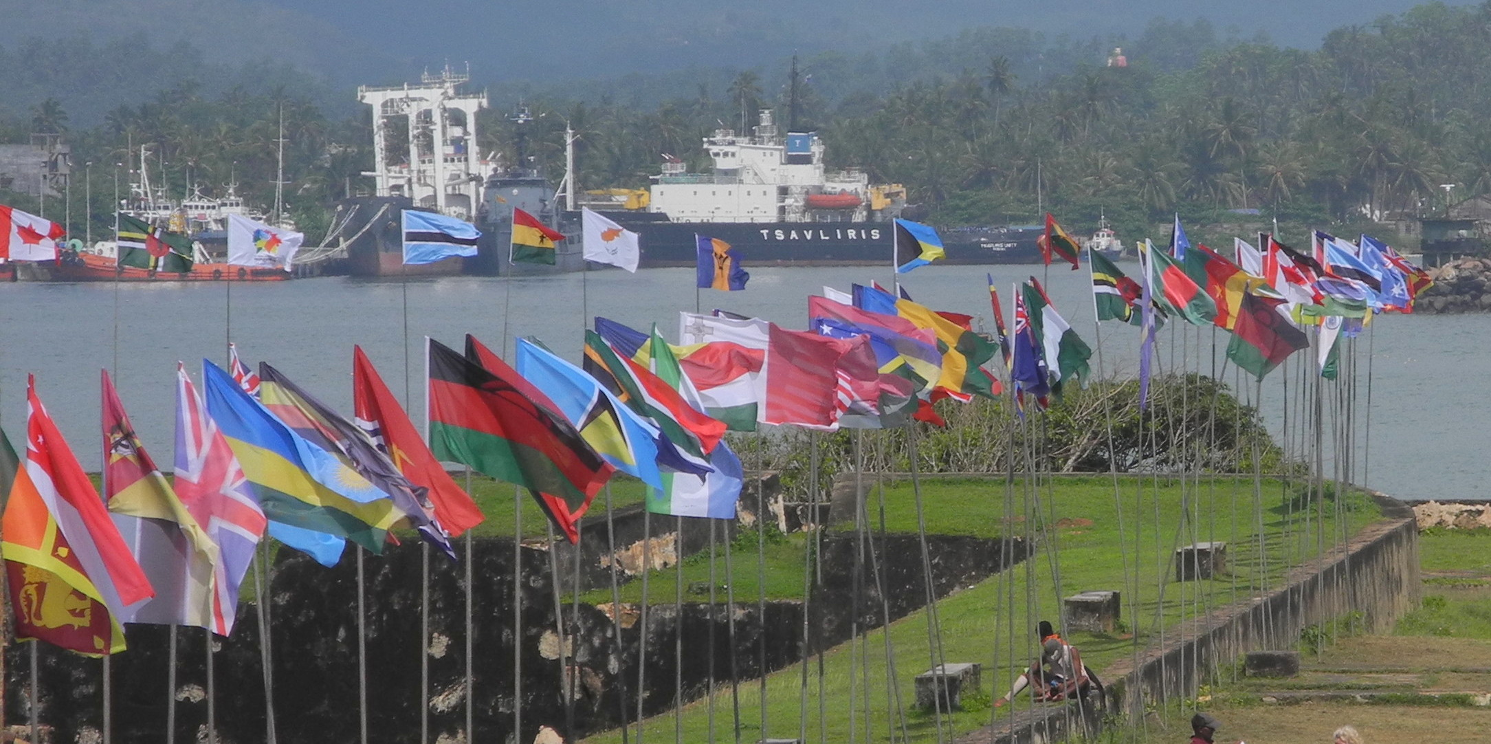DSCN5067      DSCN5077      DSCN5099 Scattered along the beach was an array of colourful fishing boats as colourful as the flags of Nations strung along the battlements and round the cricket pitch, which situated as it is in a huge traffic island must be one of the most exciting places in the world to watch a test match.