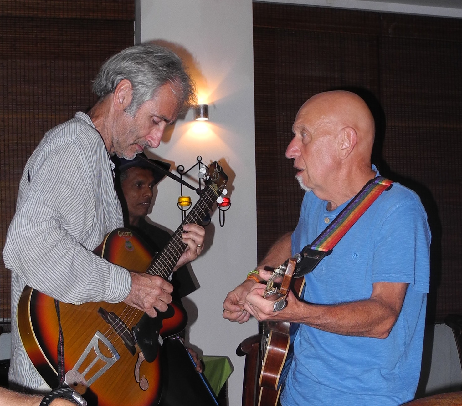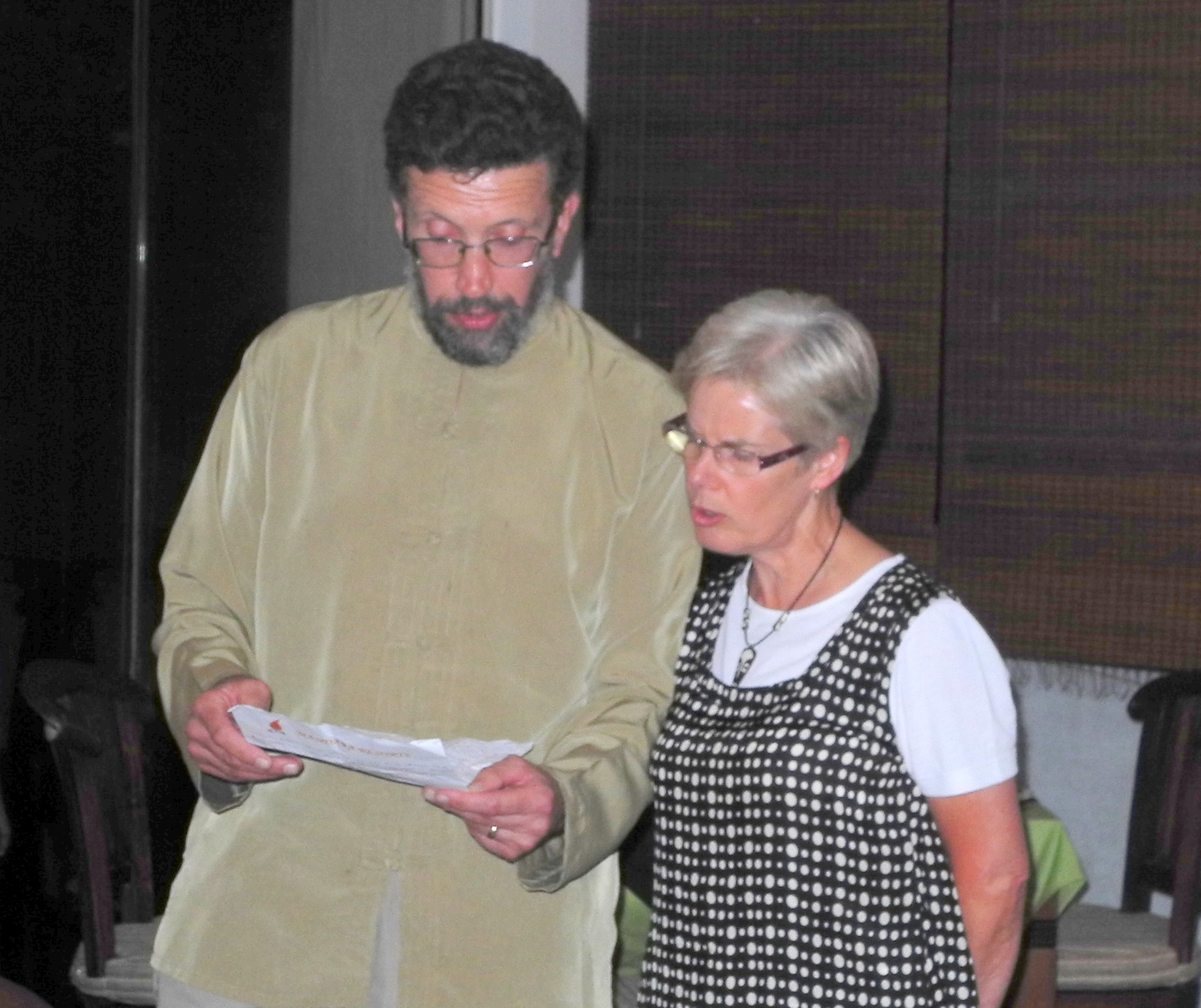 As Nigel and Jane would be leaving the group tomorrow morning we decided to do the farewell presentation to Suresh this evening. There was a local band playing at dinner consisting of 2 guitars and a drummer. First Jo and David took over the guitars and gave us a rendition of a song Jo had written. I was impressed with the way that David took about a nano second to pick up the melody and provide an attractive accompaniment.