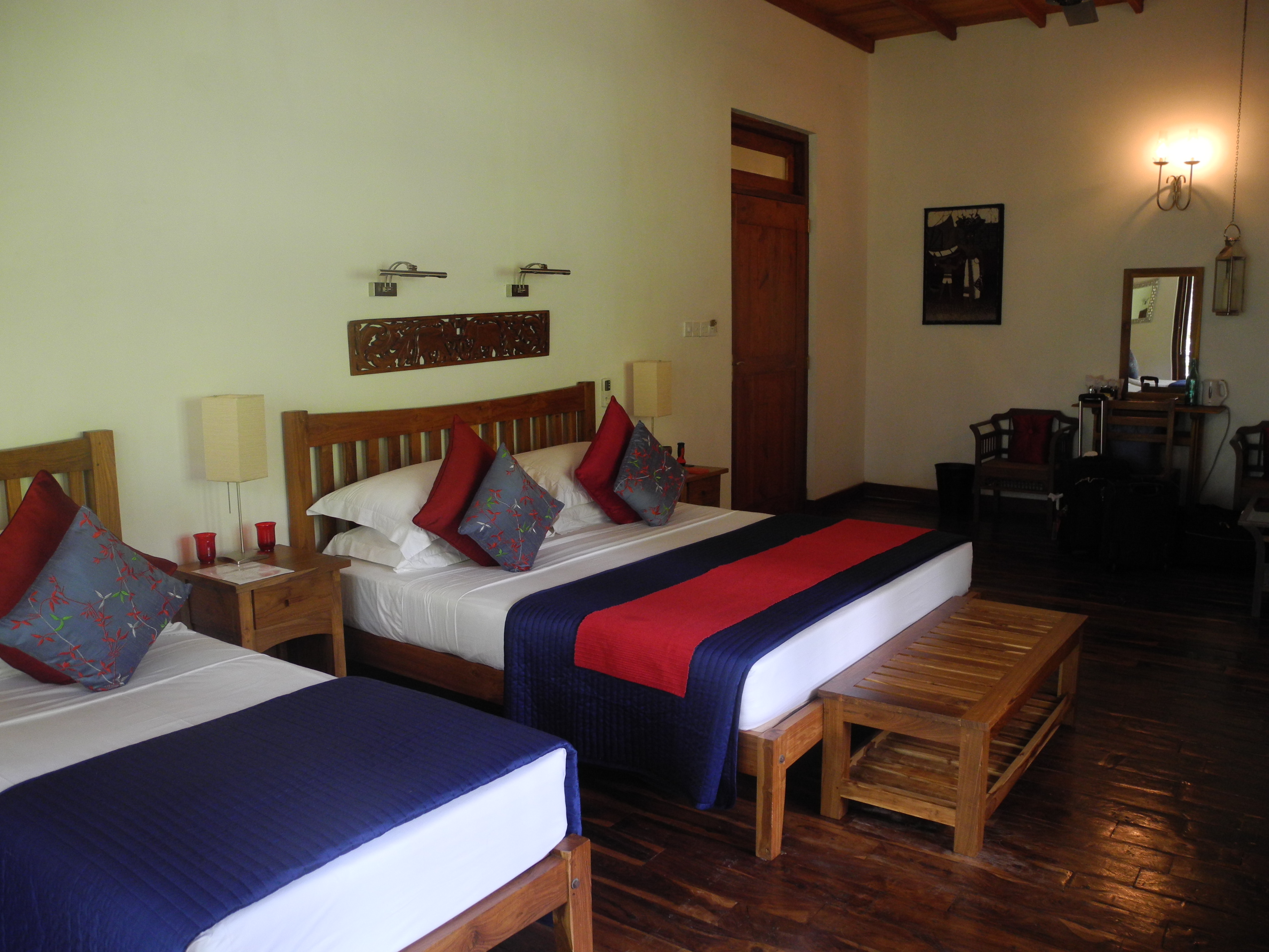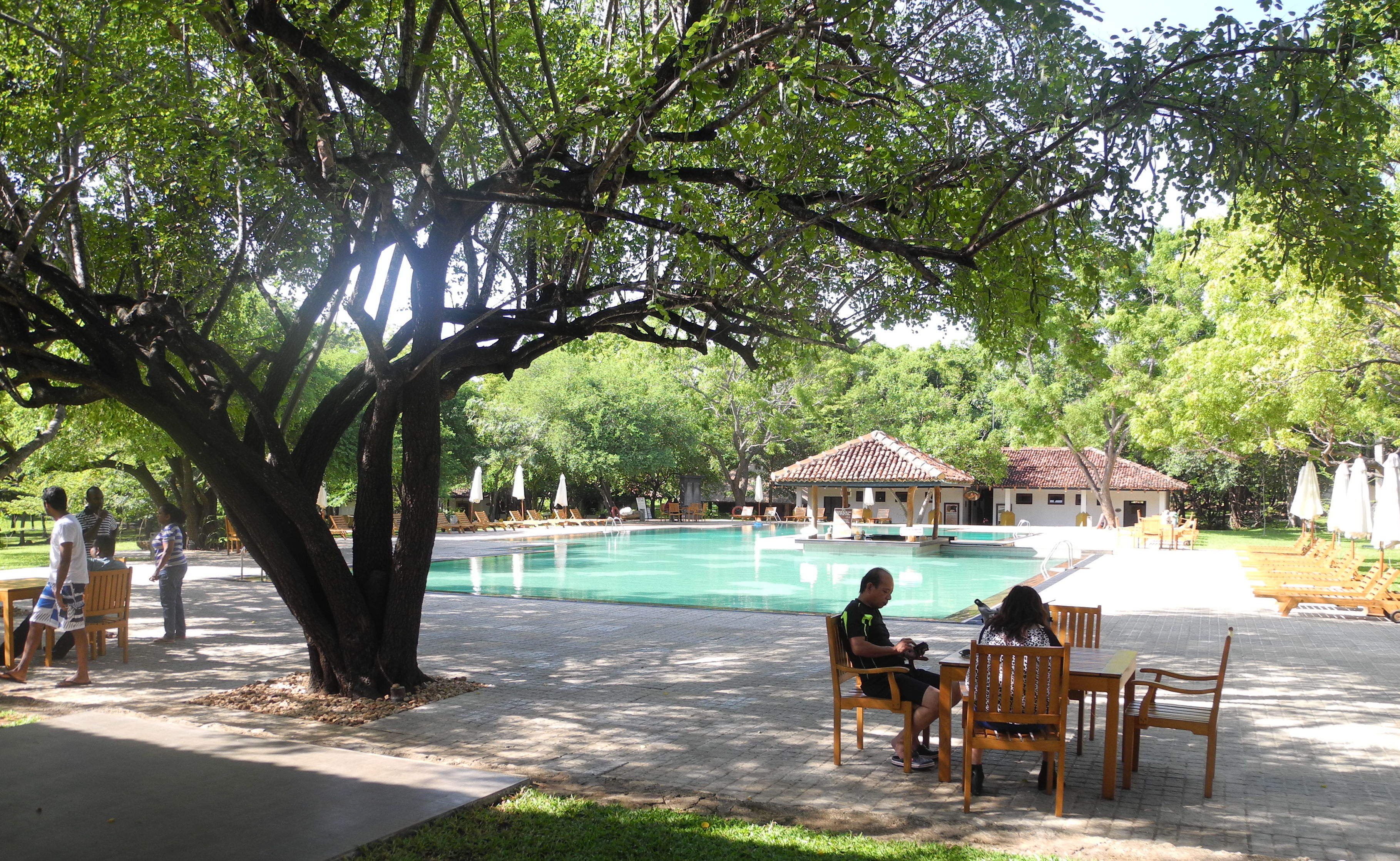 26th October. On arrival at Colombo our driver was nowhere to be seem. A phone call to the office revealed that just at the moment of our call they had been advised that the van had broken down on the road and they were trying to arrange to send another one, they would call us back in 10 mins or at the most 15….. An hour later we were on the road!  Arrived at the Amaya Lake Resort following an interesting 4 hour drive. The resort is a bug complex of chalets by a large lake. It is beautifully appointed with very nice public spaces, friendly staff and a huge pool. Take a look at my suit!