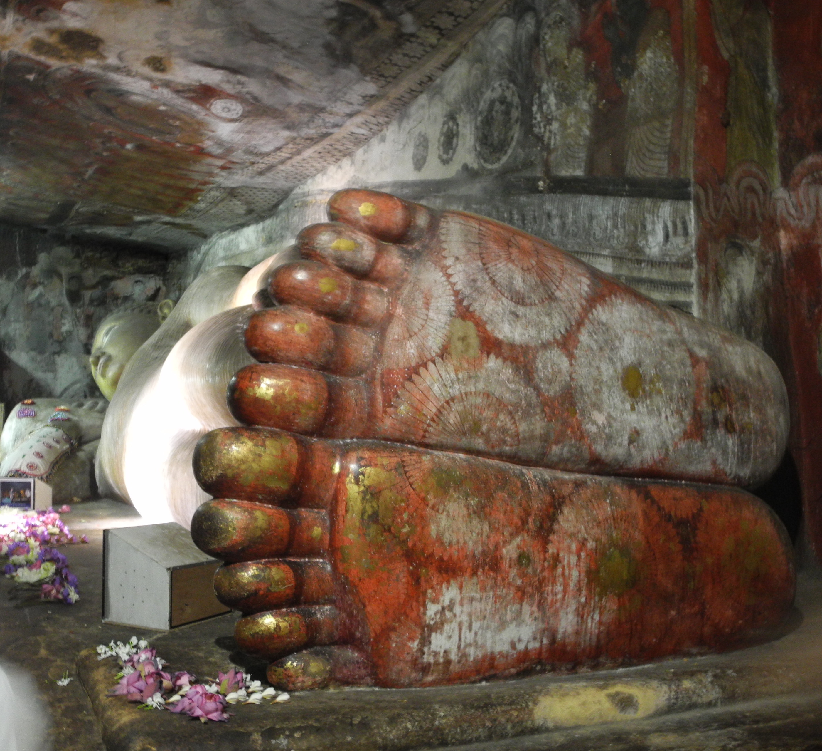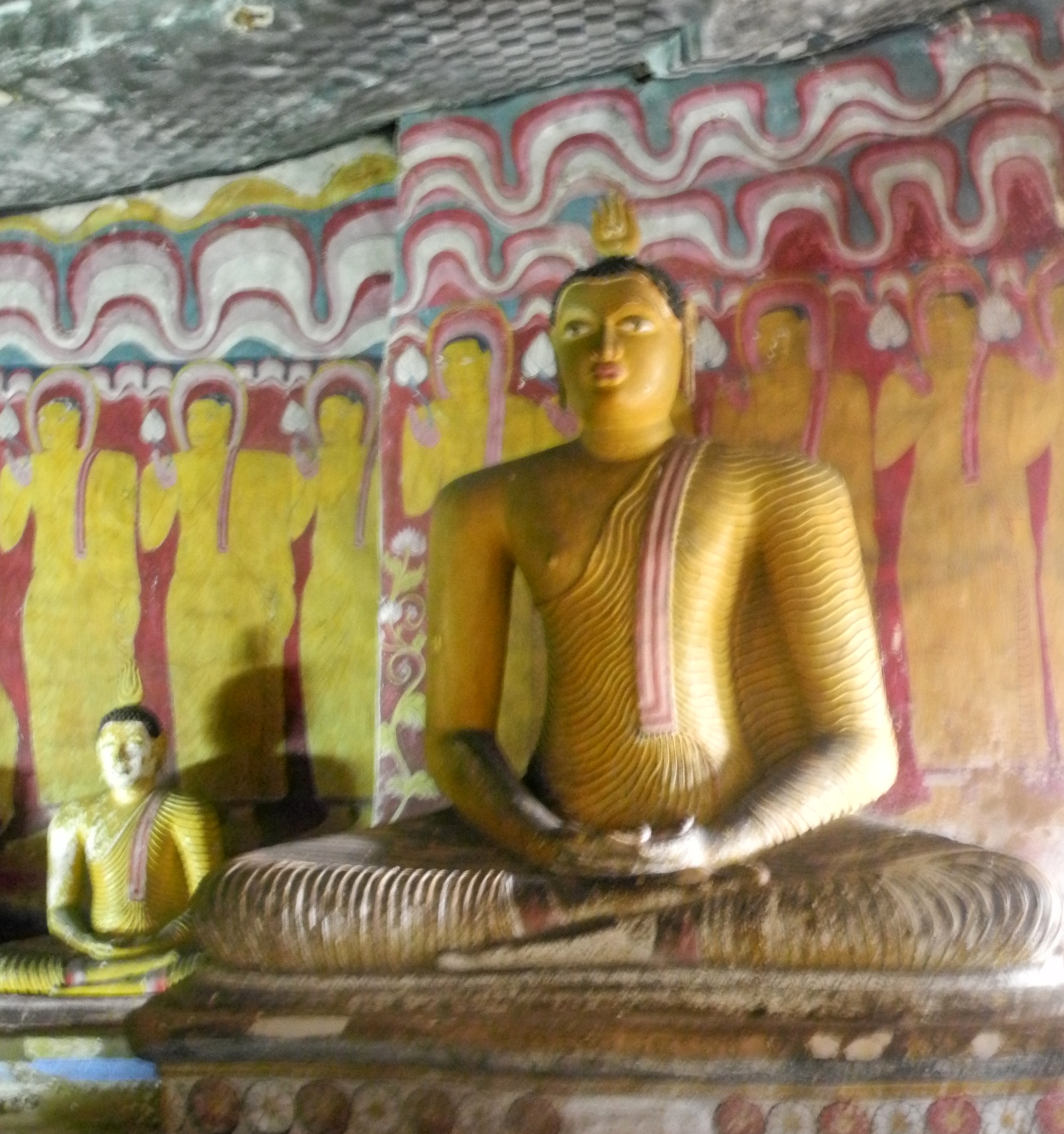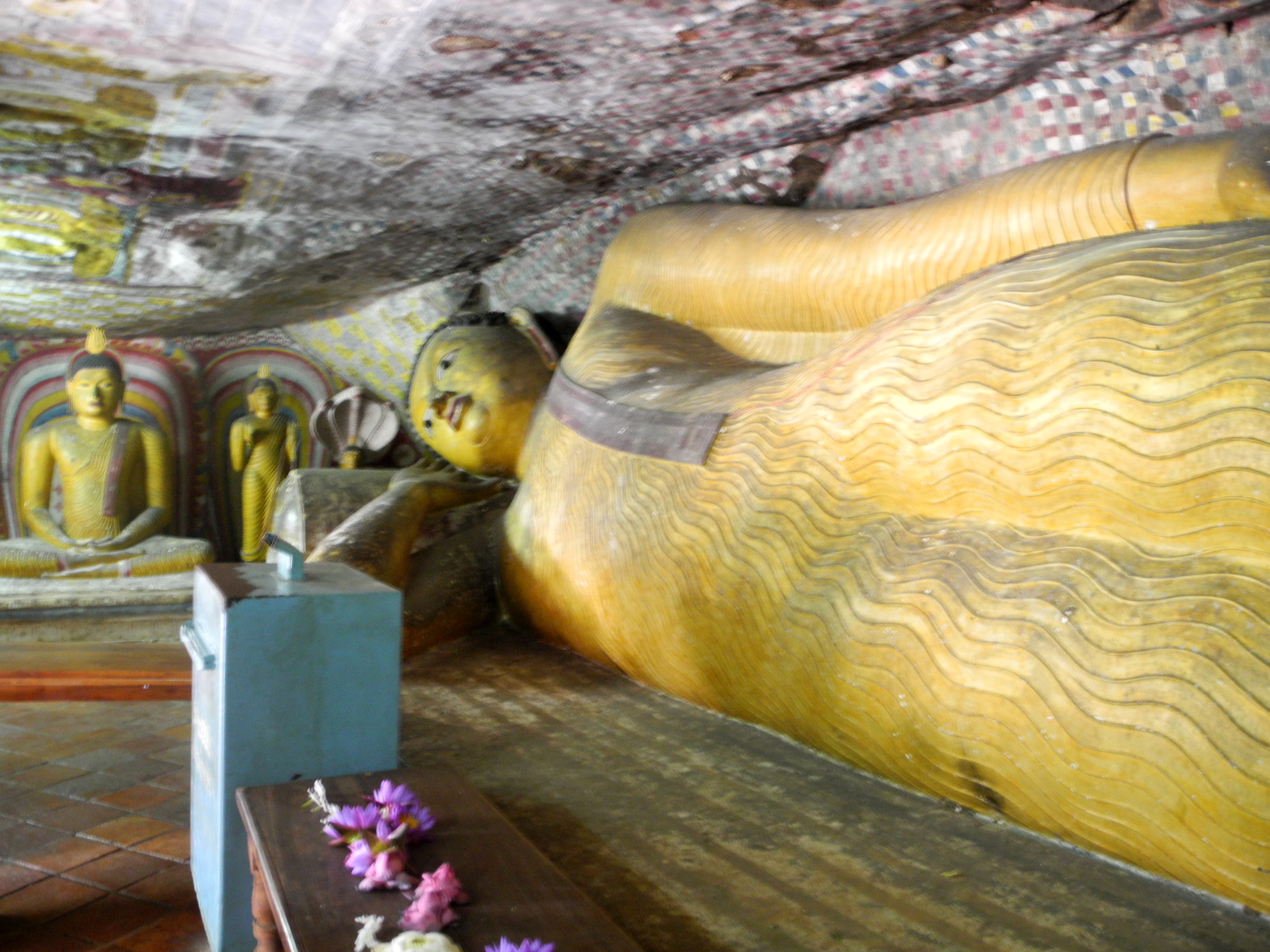 The decision was to go to the Rock temple caves at Dambulla. Even though the group is going there tomorrow we thought that we might need more time than they would allocate to us. We hired a taxi and set off. It was not far away and it was good to find that the other “sights” that we should look at were at the same destination, the Golden Temple and the Art Museum. The Rock Temple was in fact a set of five caves in what looked like a sandstone outcrop and was accessed by a km worth of steps. Each cave was full of Budah’s in standing, seated or reclining positions. Some of them were very large. The decoration was colourful with even the ceilings painted in bright colours and a variety of designs. Had a good swim back at the hotel but couldn’t linger round the pool because of the Dengue fever causing daytime biting mosquitoes!
