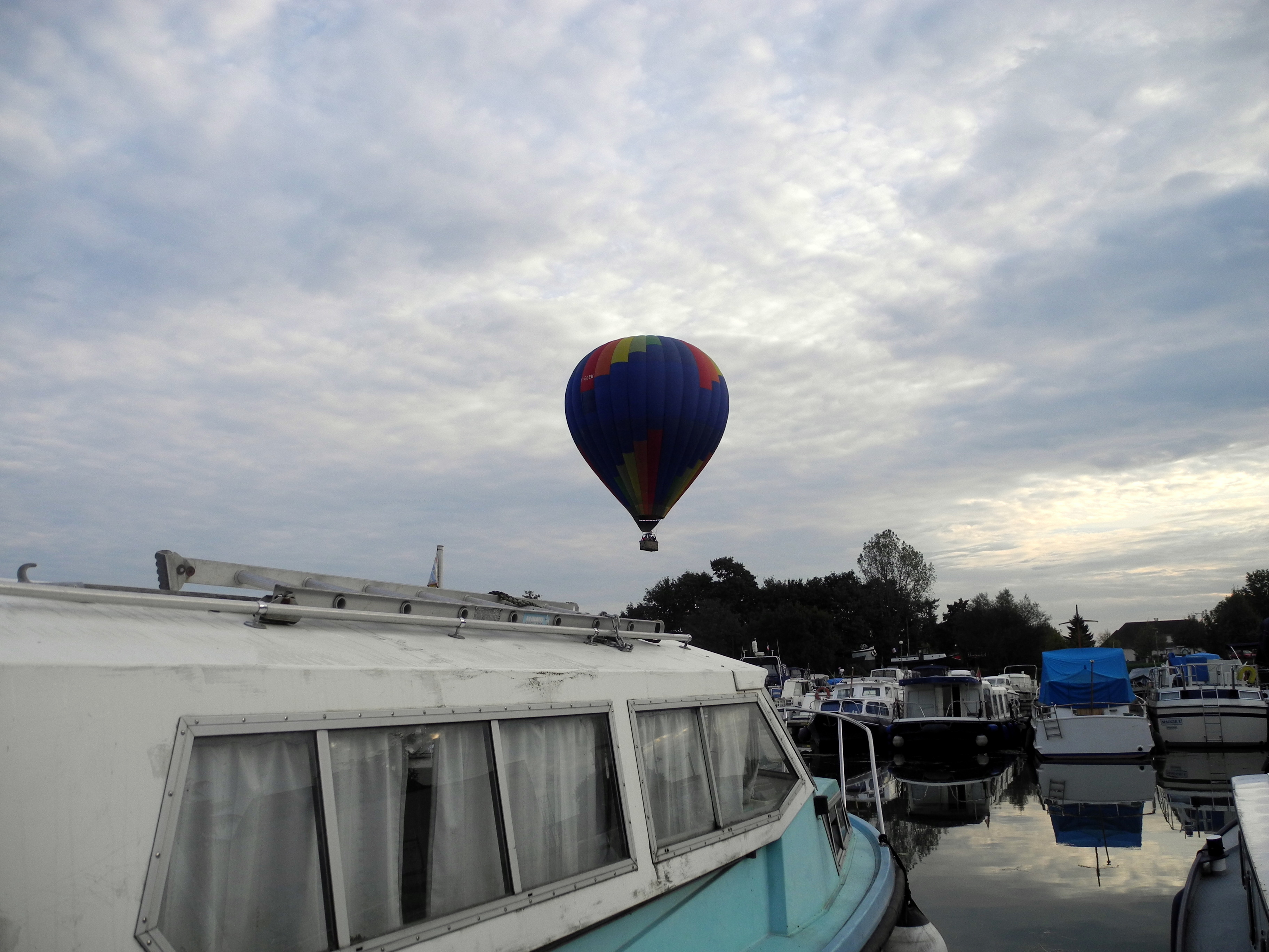 3rd October. Went outside to investigate a wooshing sound to be greeted by the wonderful sight of a balloon flying low over the Gare D’eau.