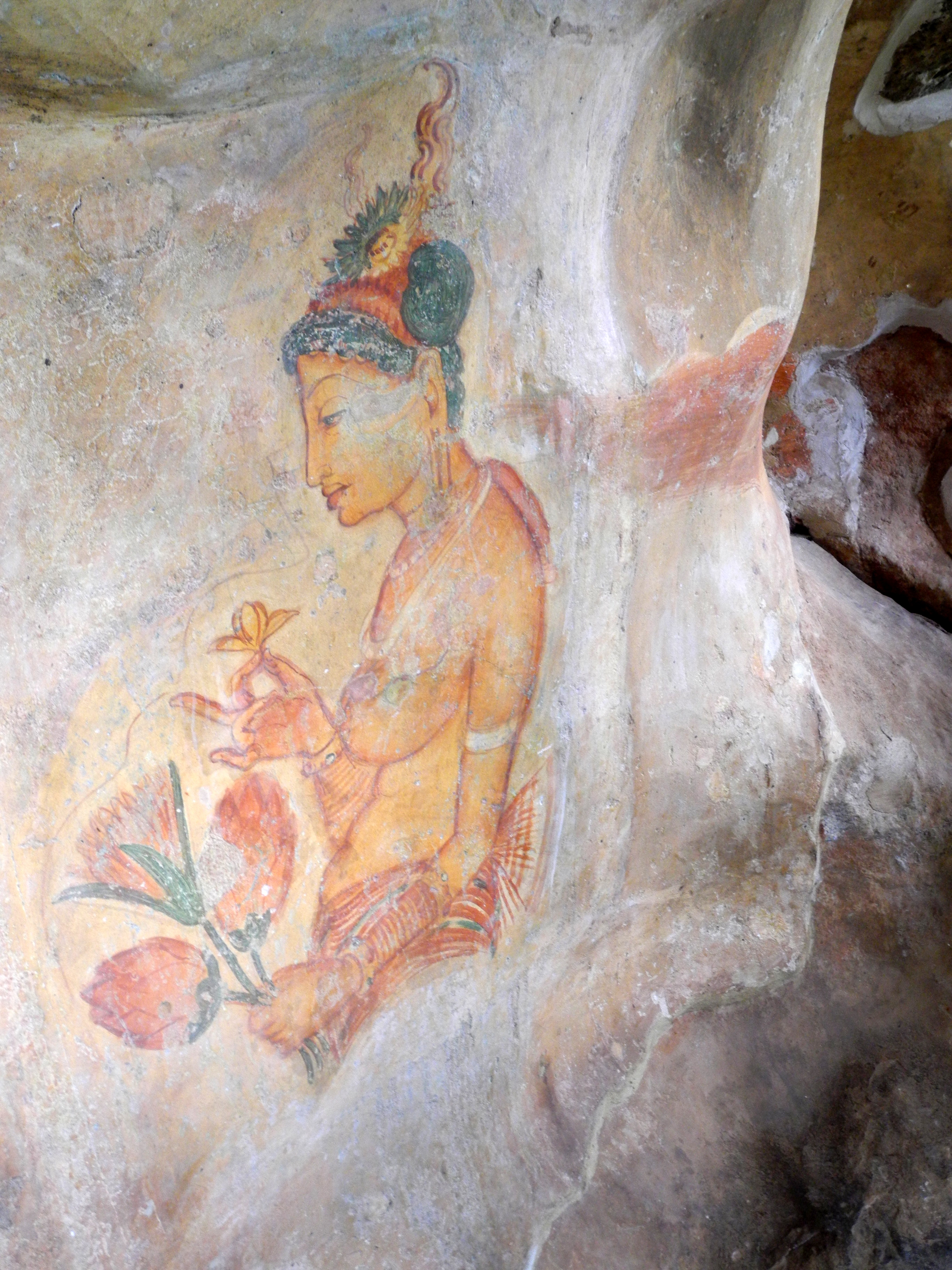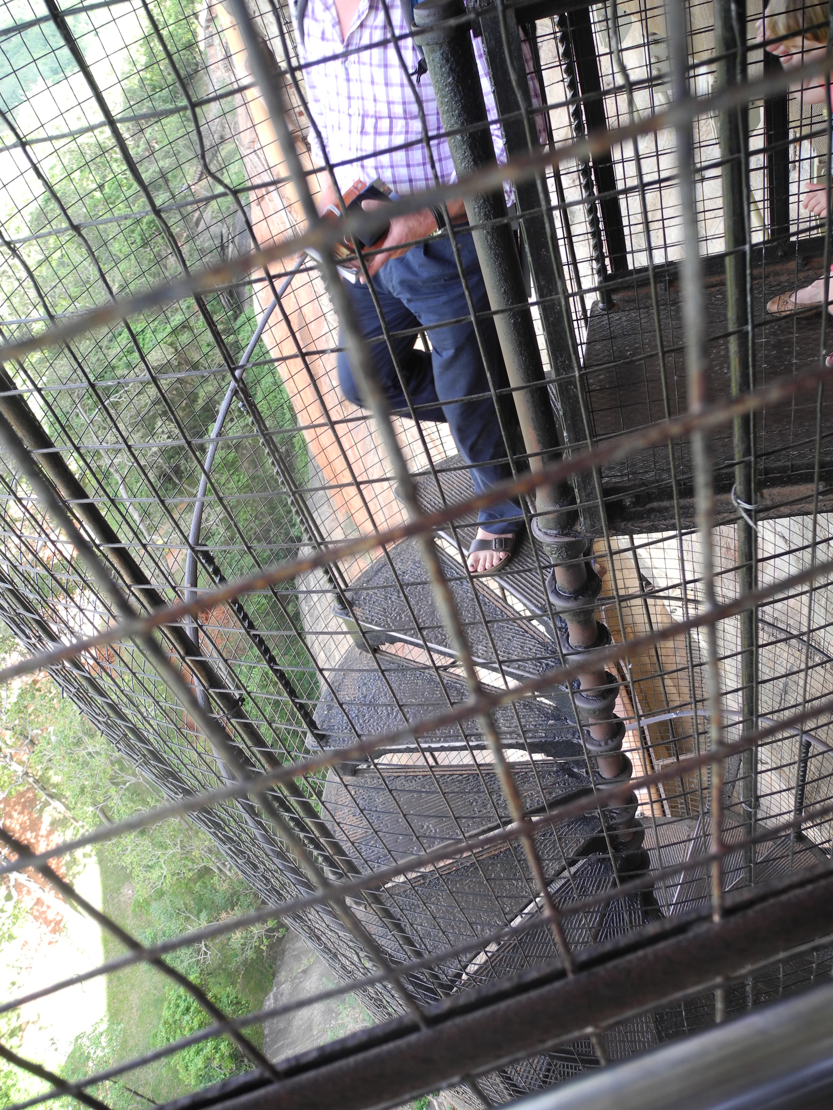 28th October. Made an early start for the cycle to Lion Hill. This is the site of an ancient (9%th centuary) settlement. It was obviously well laid out with many pools and tanks. The whole area is surrounded by a big moat in which there are crocodiles. A second moat protects the interior. The top of the hill housed the king and his entourage. It is 500 m high more of less straight up with many, many steps. This vast and intricate complex was only inhabited for 18 years from laying the first foundation stone. The high light for me was the beautiful wet plaster frescos about half way up.