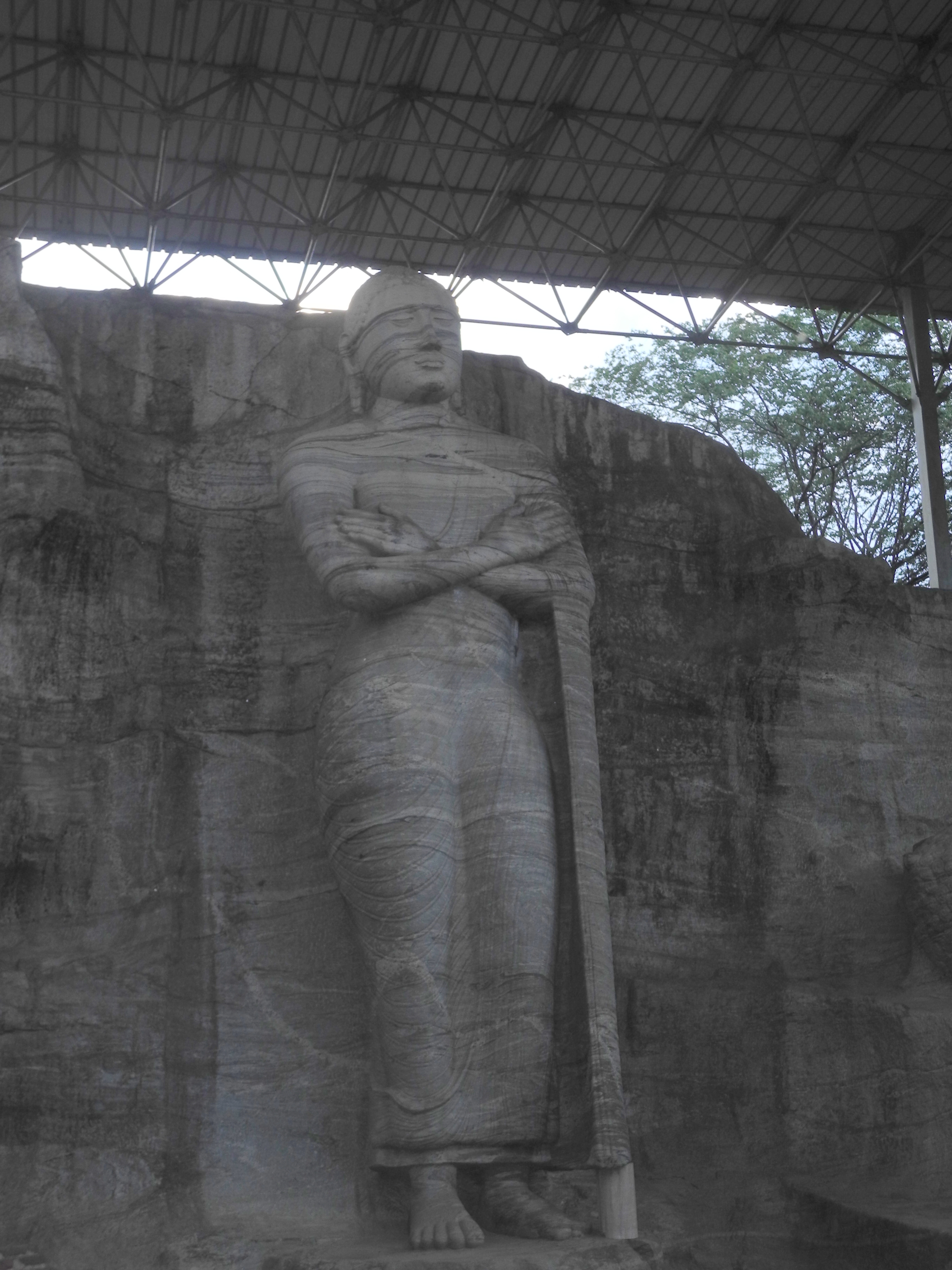 29th October.  Another early start followed by a ride to the 900 year old ruined city of Polonnaruwa. Most of the visit took place in heavy showers so we were in and out of the bus. The ruins are mostly constructed of clay bricks and have remnants of plaster on some of the walls. They were probably formerly covered by frescos. The most impressive part of the site was a rock with three huge budas carved into it.