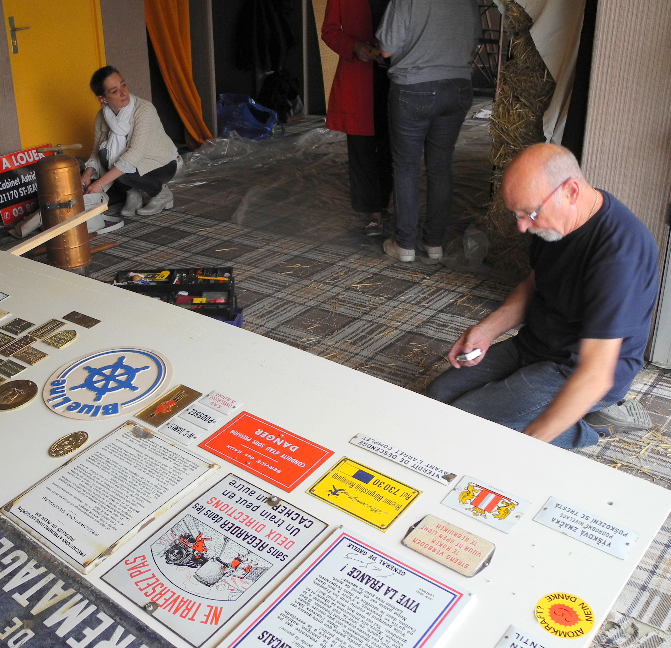 Meanwhile down at the Gare d’eau the bunting was up under a threatening sky and boast sales were being transacted. I went in search of “Tara” to wish Bob & Jac good luck with the sale of their boat but it was nowhere to be seen, then Nicolas told me it had already been sold. BRAVO! although I will miss them when they return to Aus.