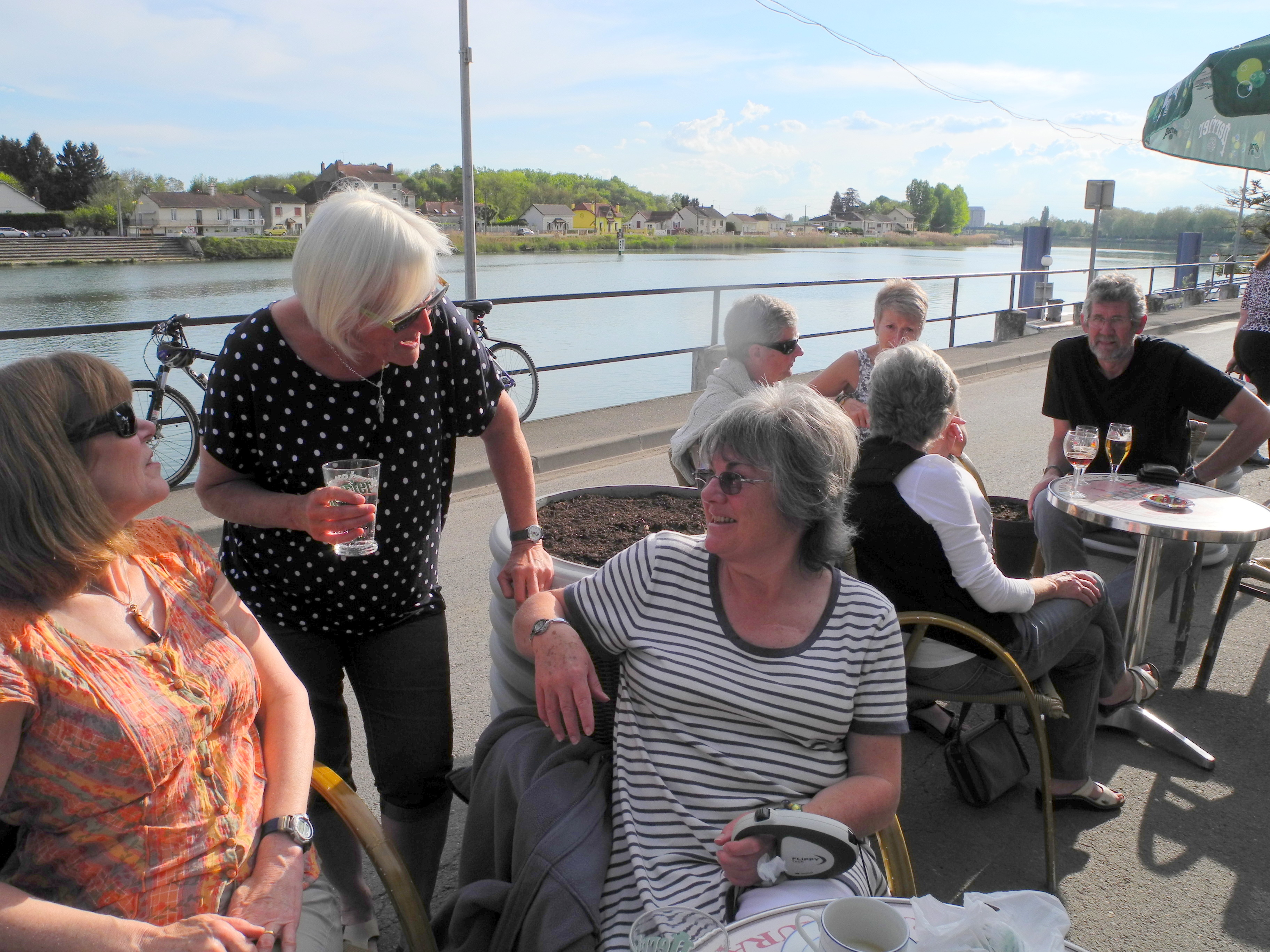 In the evening there was a gathering of boaters at the Brazerie du Port for drinks. The photo shows Jacquie, Steph and Jana.