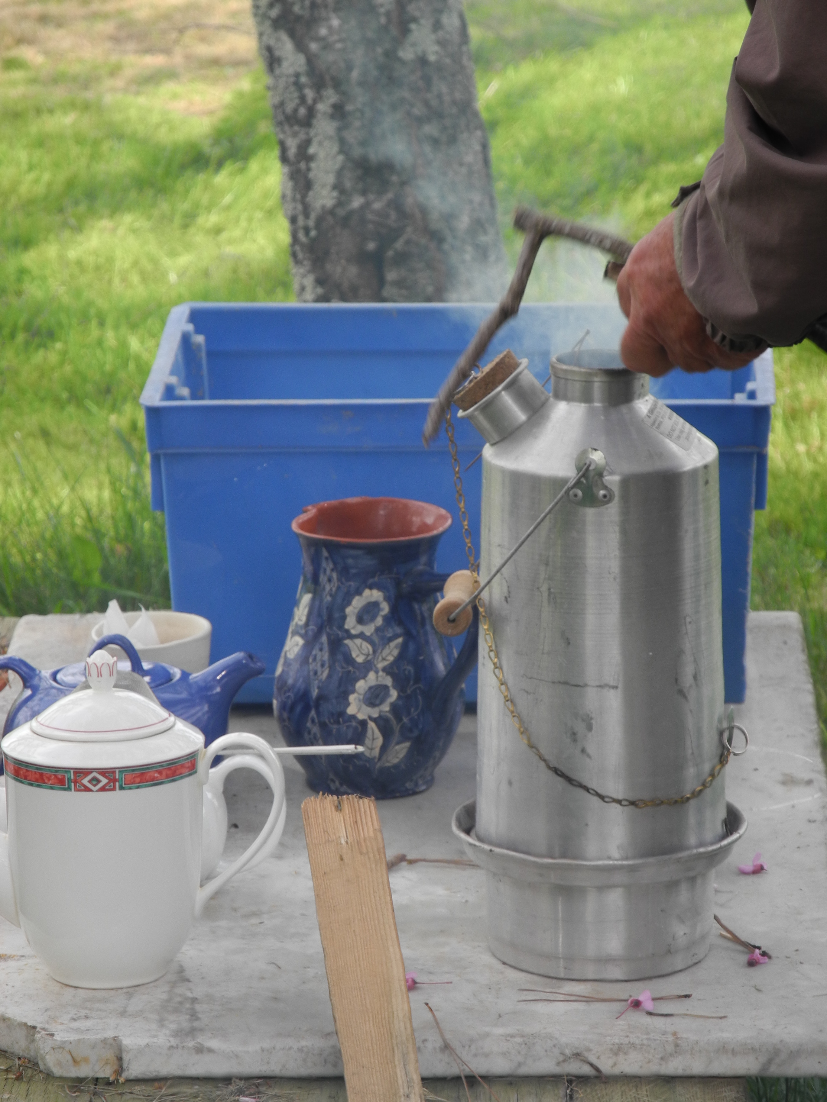Later I went to Jane and Robert’s farm with Helen & Steve for tea and an interesting rice cake made by Robert. However the highlight was the camping “kettle” that was used to boil the water!