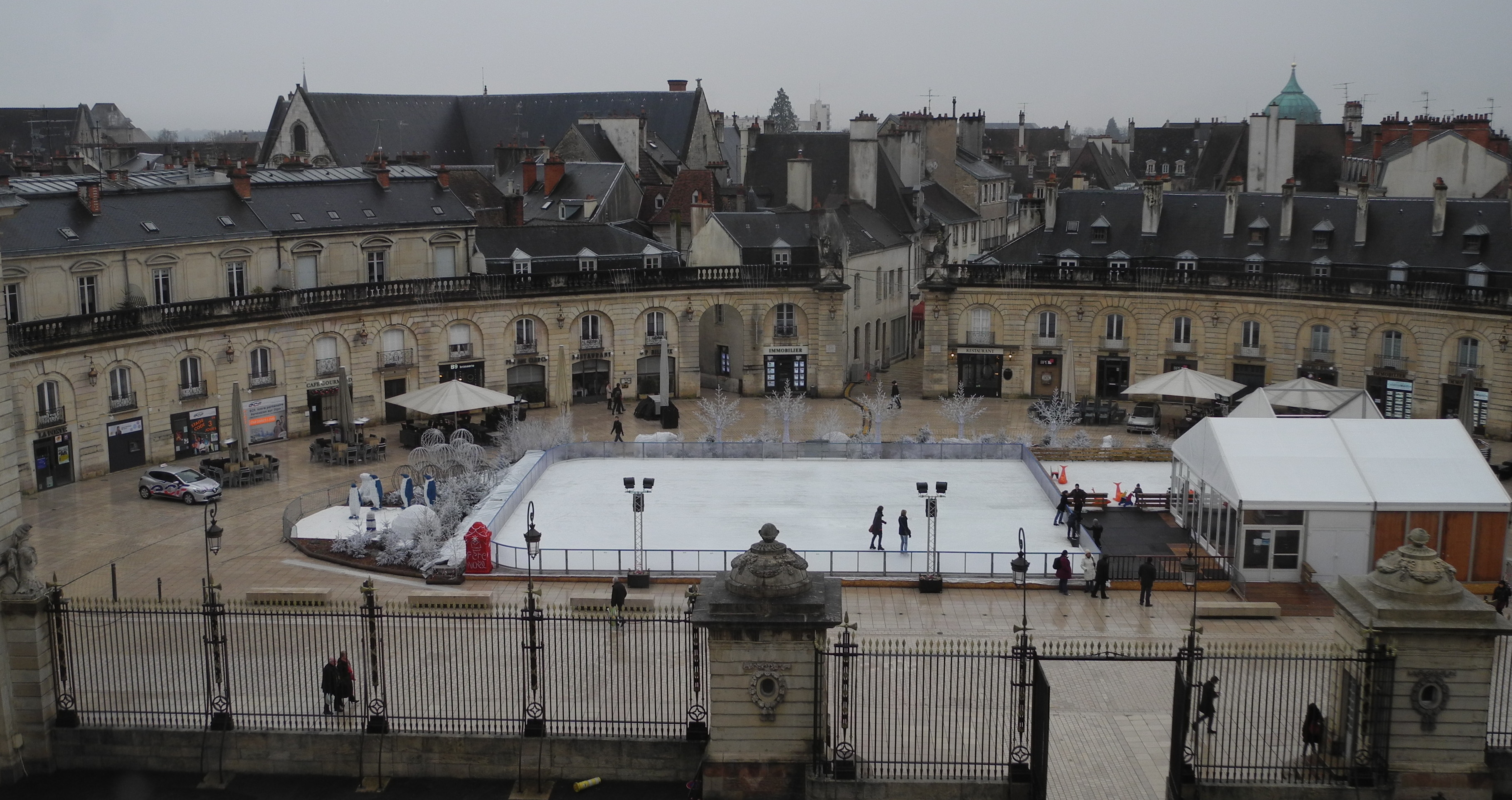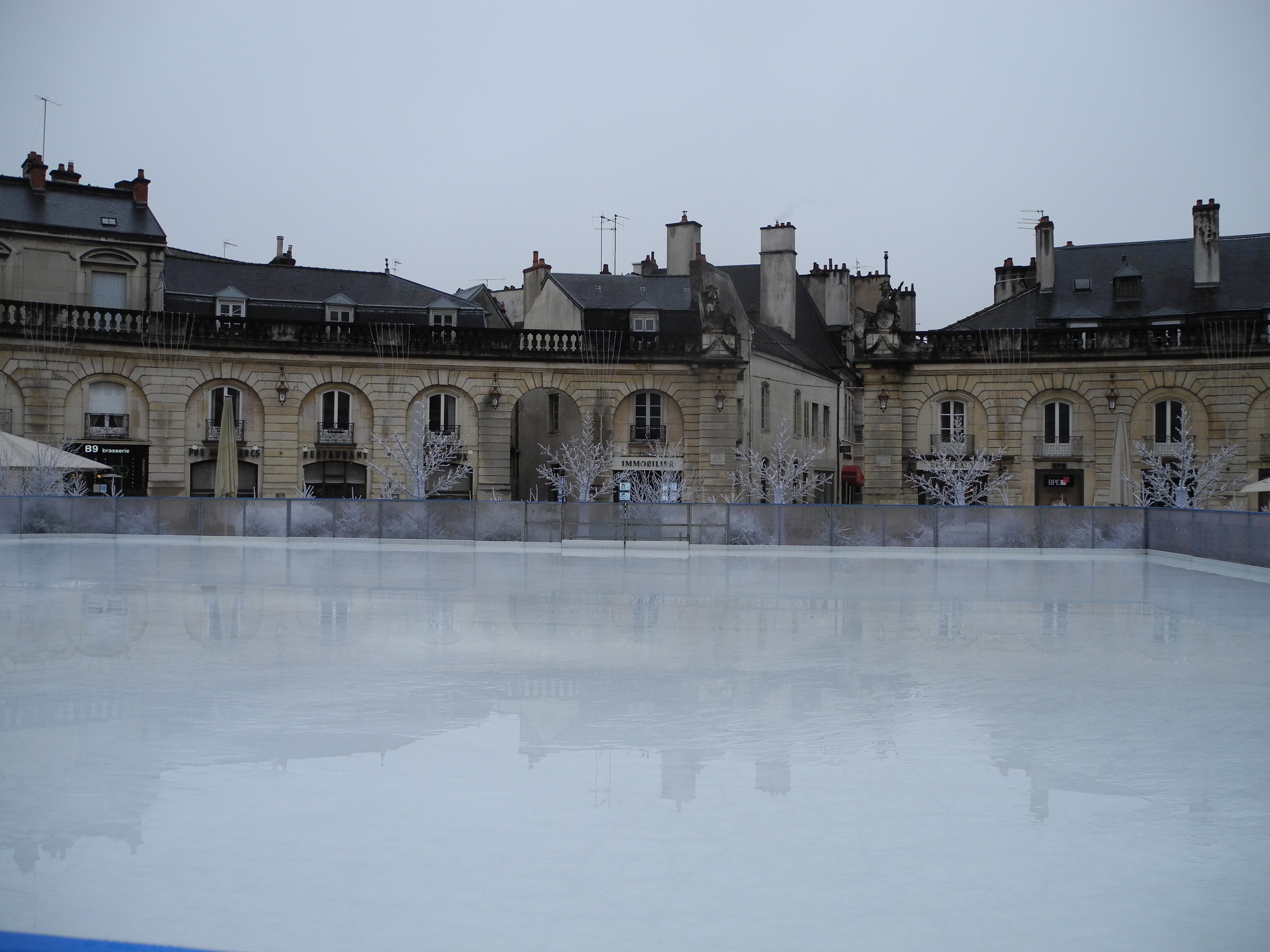 I also popped into the Rude Museum which is housed in one of many unused churches in Dijon. Rude was a sculptor responsible for some of the panels on the Arc de Triumph in Paris. Some of his work was moved here to avoid destruction in the war years and other work followed, most of it on a massive scale. The Place de la Liberation houses an ice rink, shops, including the Gallerie Laffeyet, still have their Christmas decorations up and the city has a “winter wonderland” air to it.