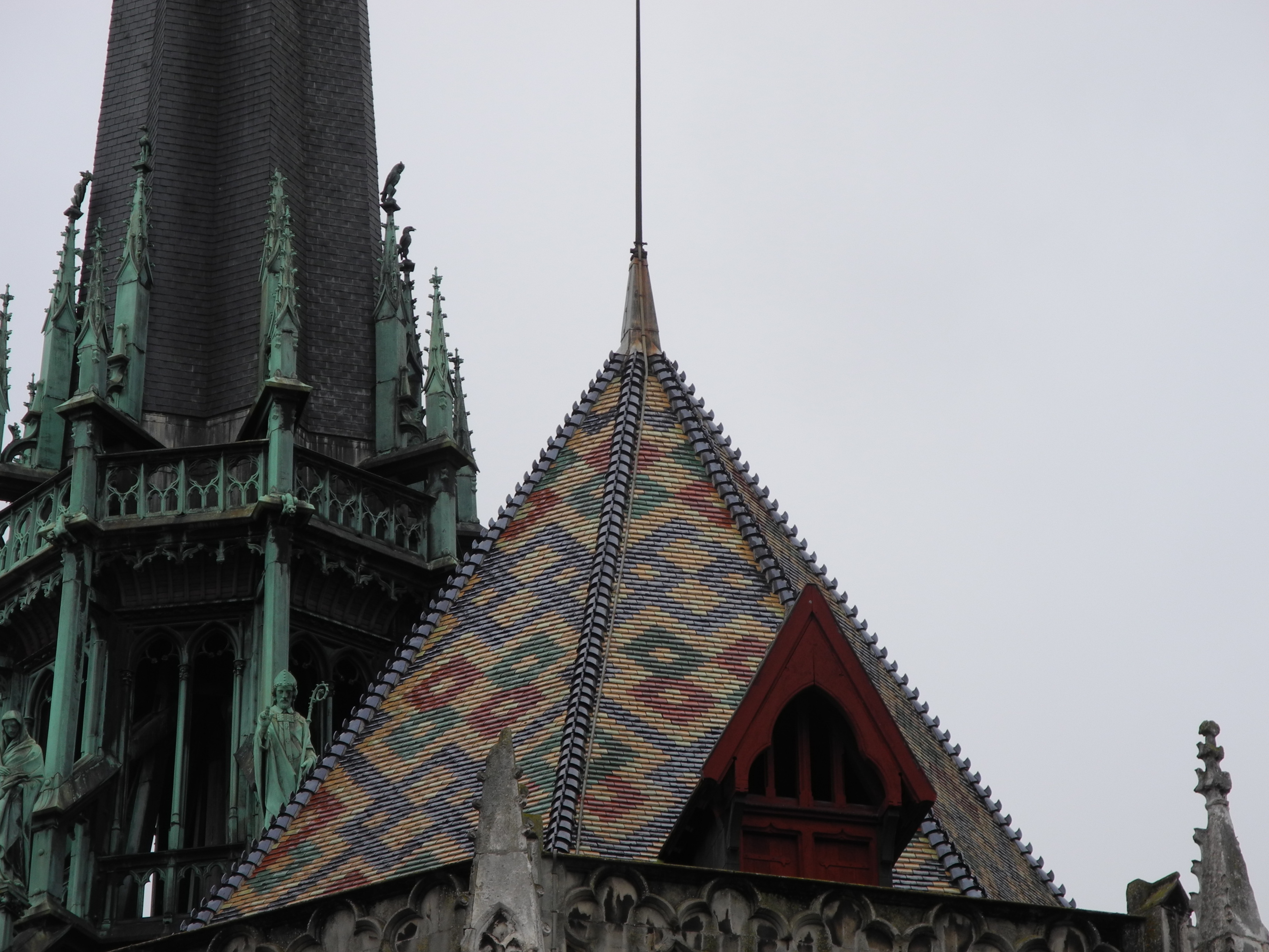 Back in the centre of town the Cathedral provided a stunning example of one of the particular architectural features of Burgundy. the coloured roof tiles.