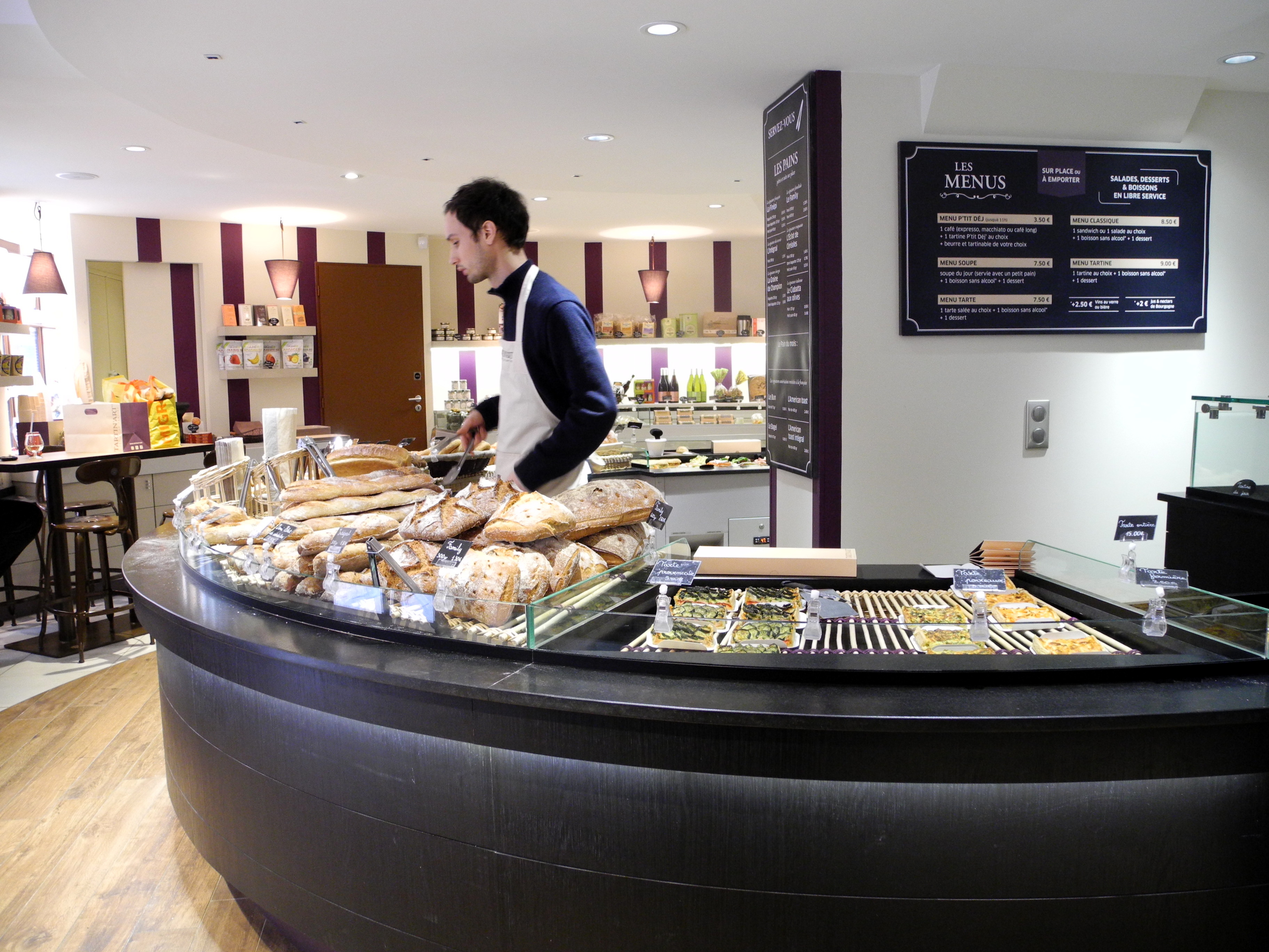 Today I took lunch at a bakery and tart shop. The selection of breads was impressive and the coffee was excellent. All for five euros.