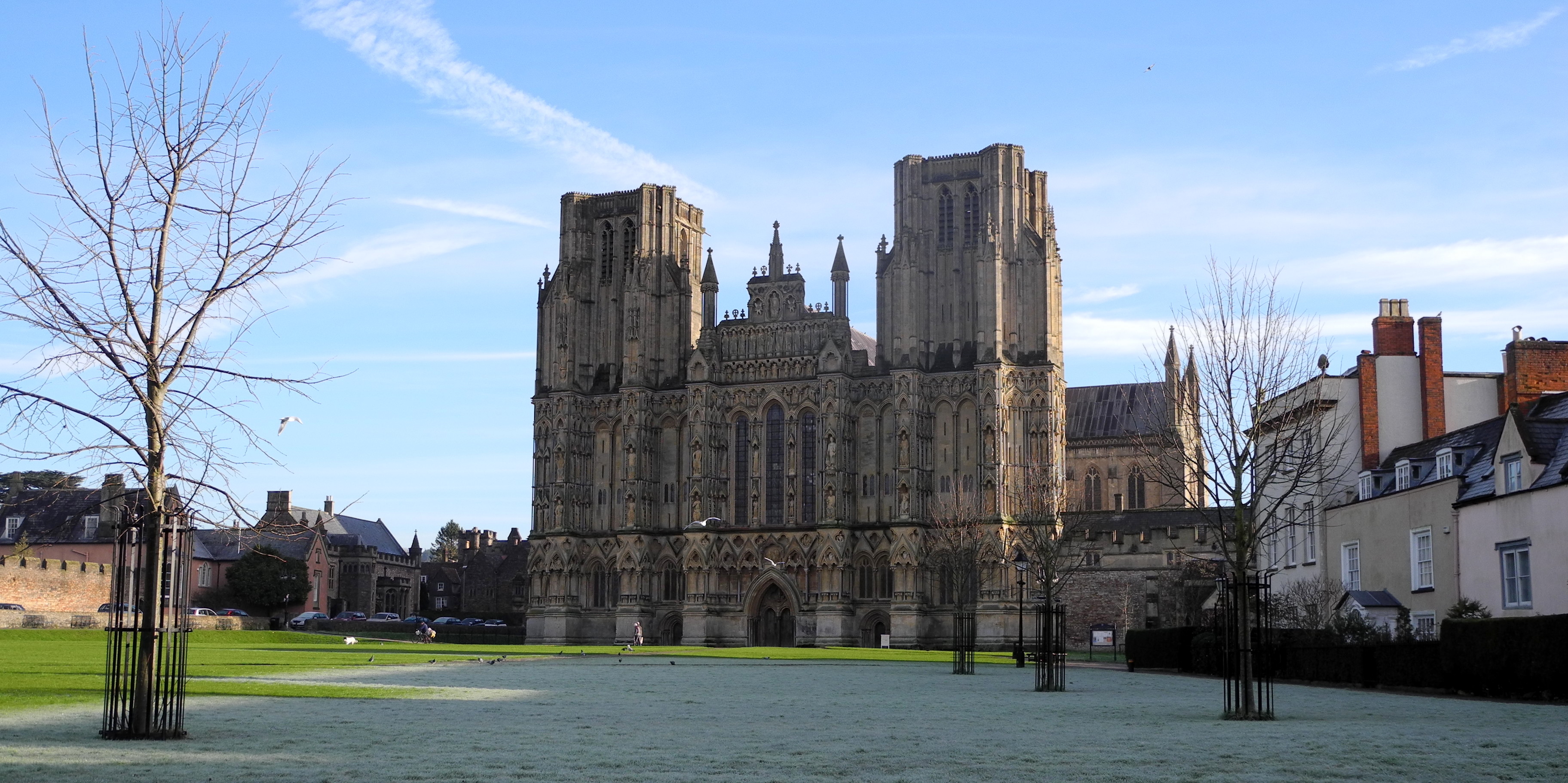 white frost on the green in front of the Cathedral
