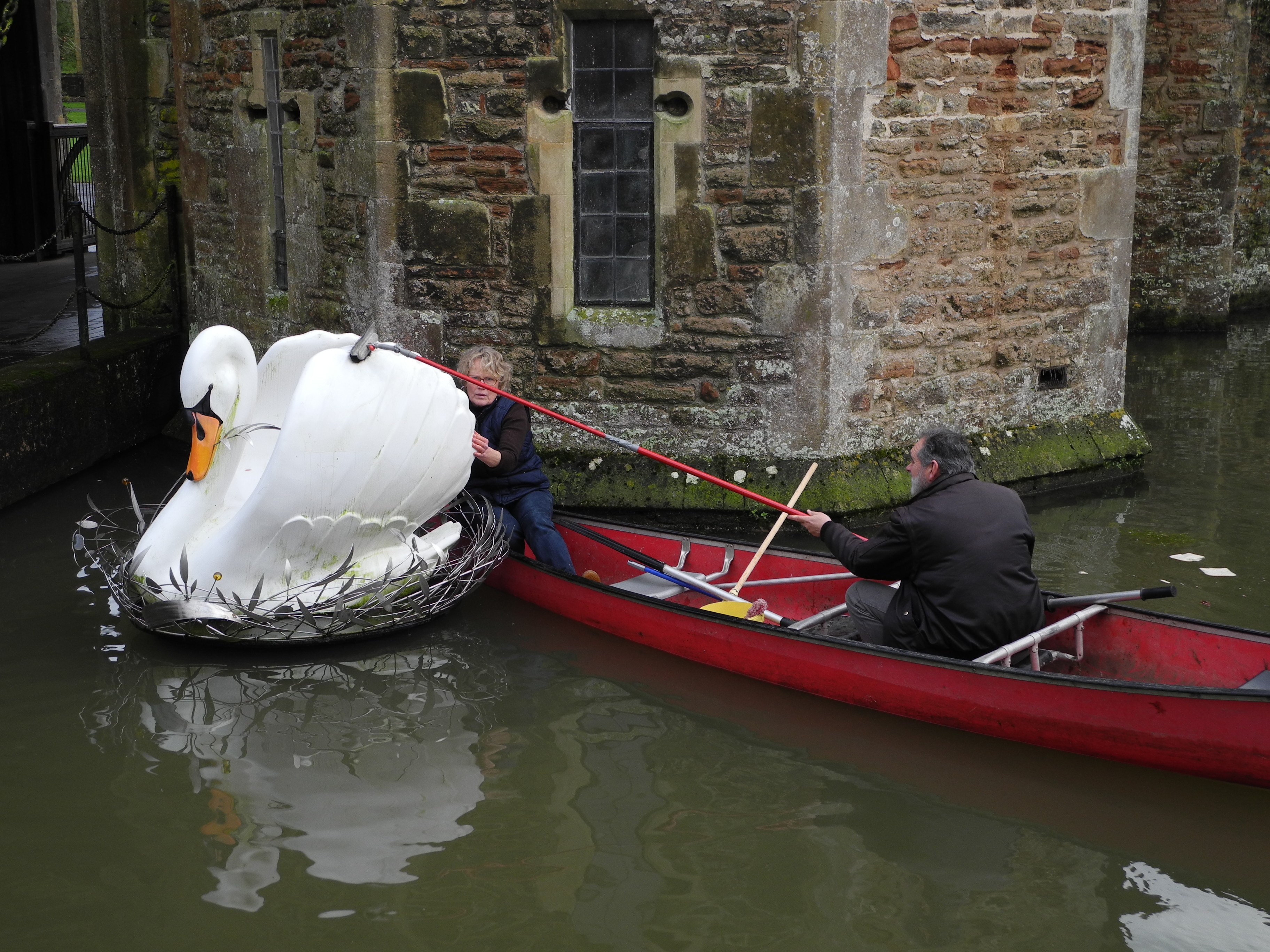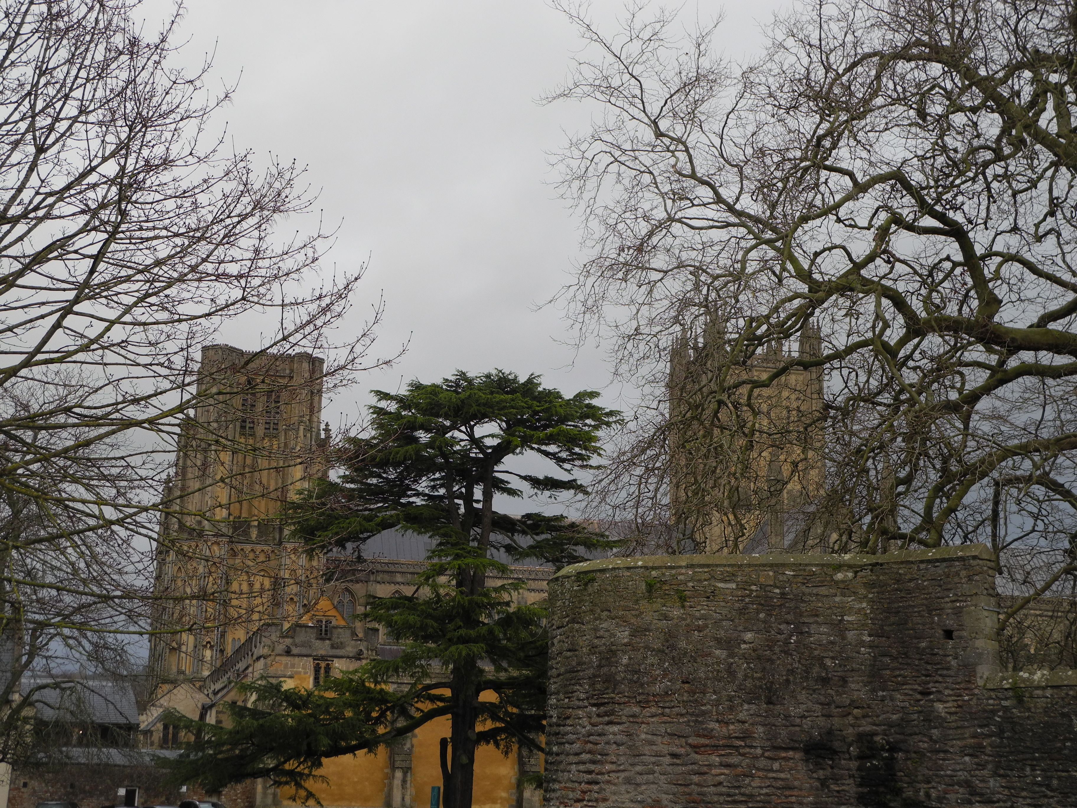 15th January Wednesdays and Saturdays are market days in Wells and as The Crown, where I am staying is right on the market square, I was woken up at 6am by the sounds of the setting up. Took a walk round the market and round the Bishops Palace. Things look very different when the trees are bare and sometimes that is a good difference because so much more of the buildings are visible rather than obscured by foliage. The “swan” in the moat was getting a clean today and this years juveniles were out and about.