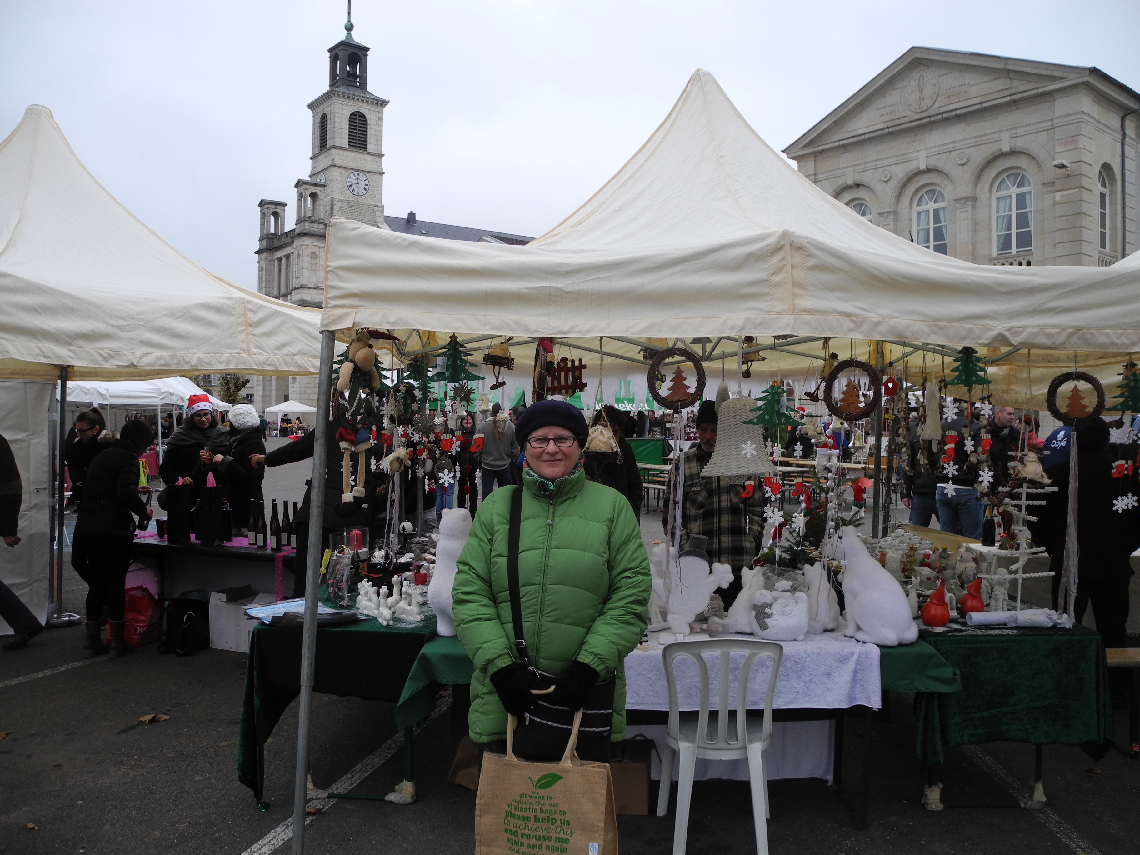DSCN8638 30th Nov. We went out to the old lock and Charles helped us to collect some Christmas tree material for window decor and a huge bunch of misletoe. We also went to the Christmas market at Brazey. We were underwhelmed!