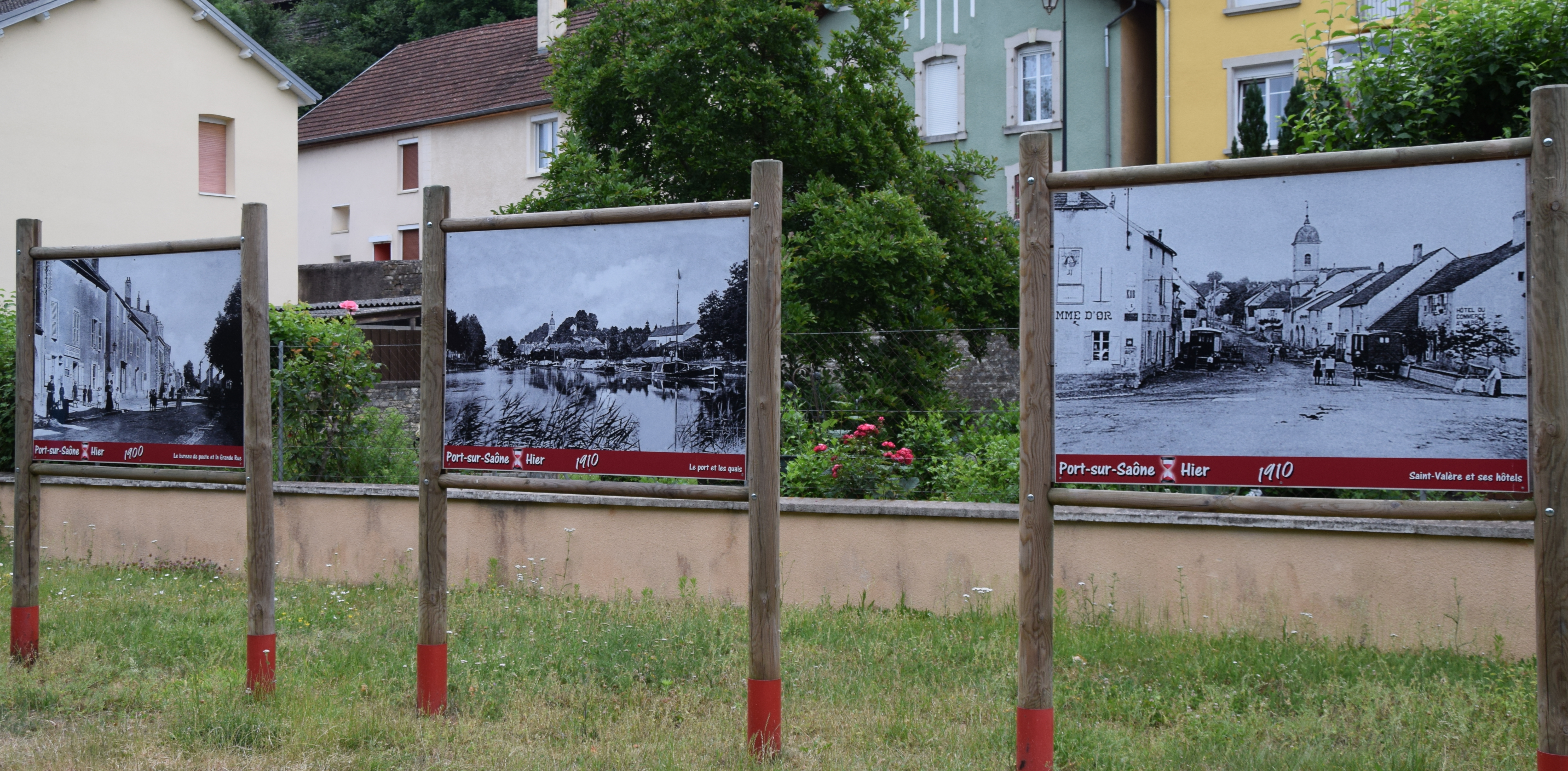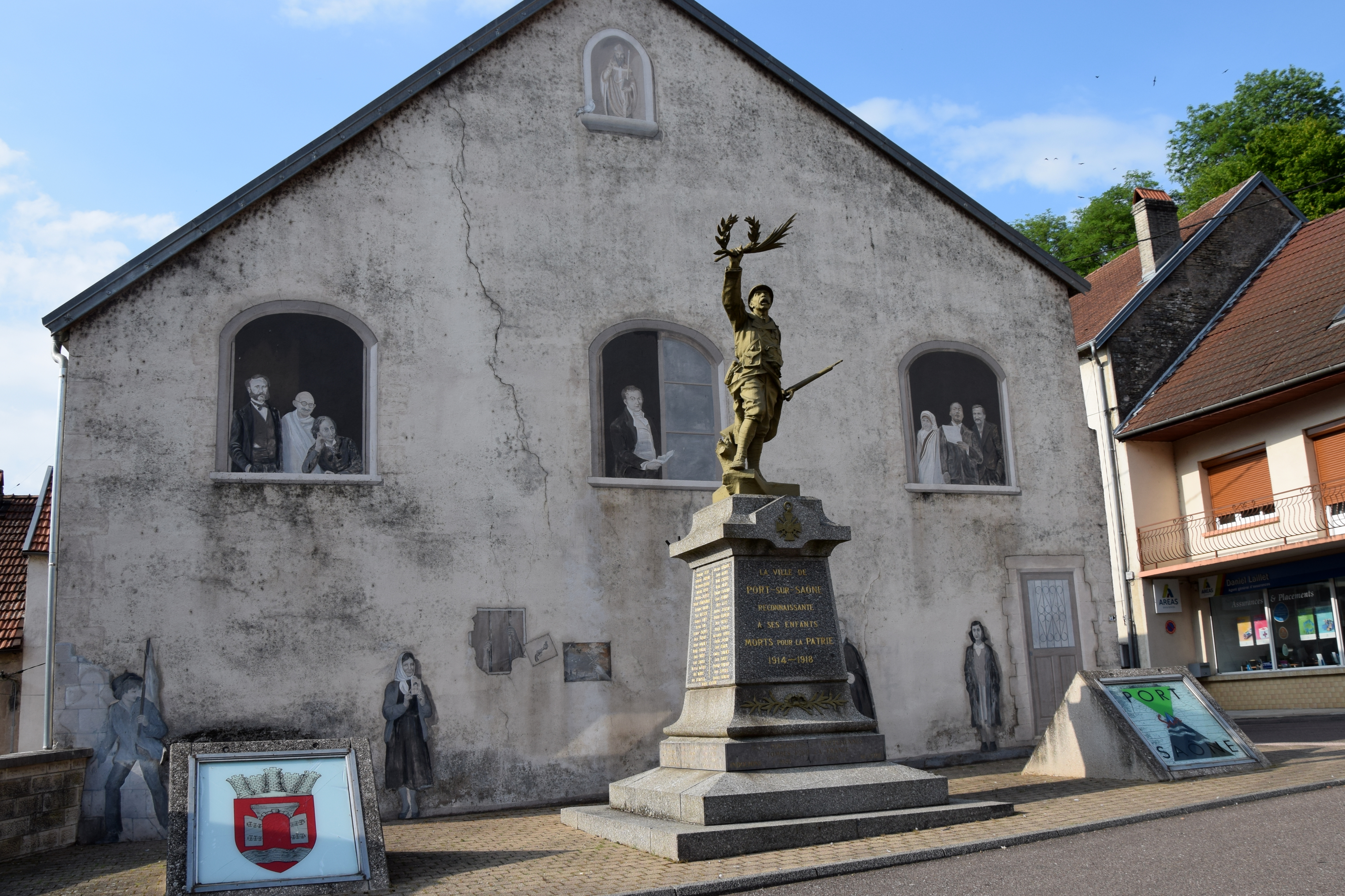 8th. Stopped at the free town moorings of Port-sur-Saône avoiding the marina. The moorings were nice but the town was a bit drab. They are trying. There are story boards along the canal-side depicting the town “Yesterday” & “Today” and what is envisaged for “Tomorrow”. There is a peace-makers wall in the town behind the war memorial (a bit of a paradox that!) featuring Mother Teresa & Ghandi among others, two neglected Lavoirs and some bronz statues……but somehow!