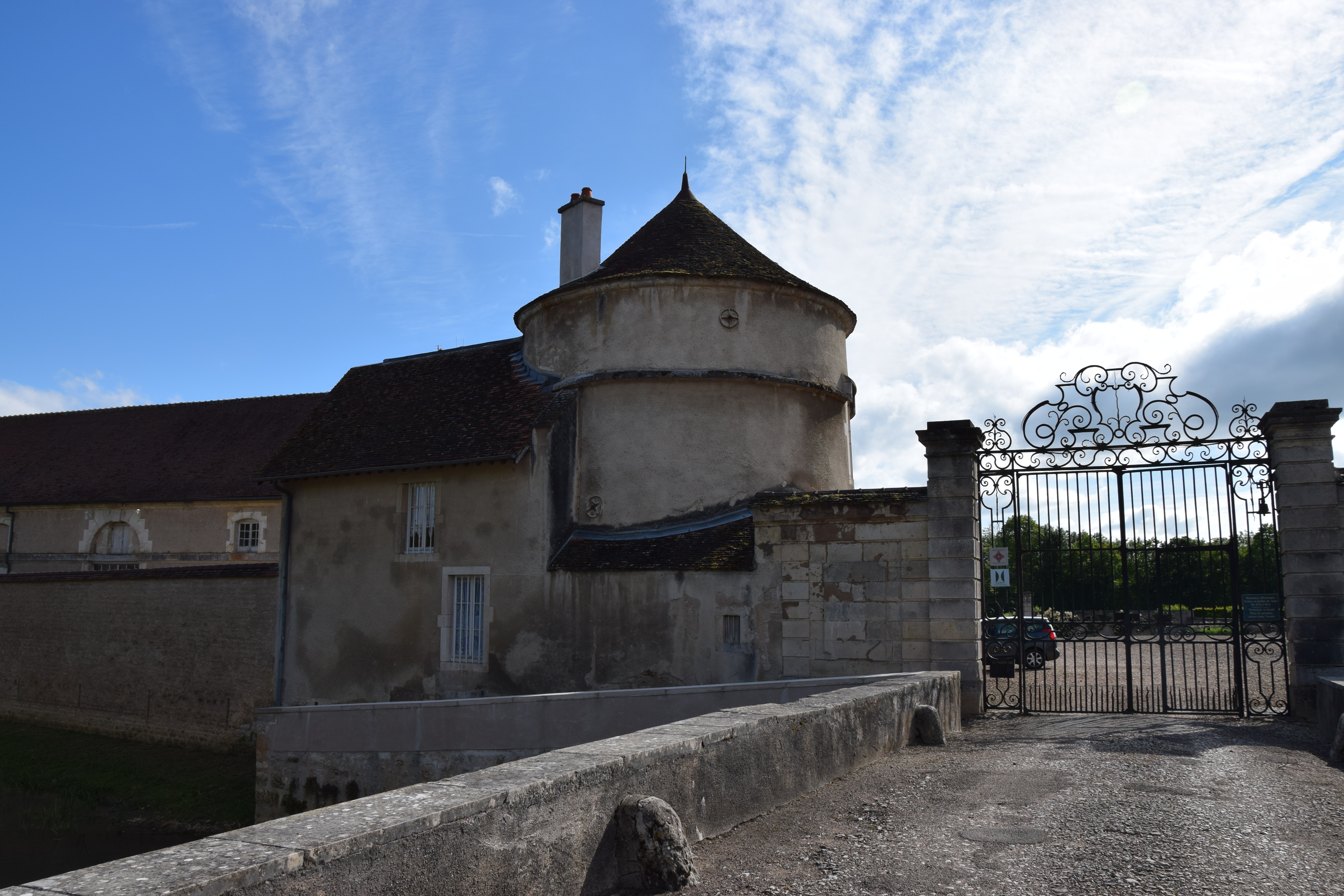 We then moved the boat on to Heuilley where we moored up on a small platform. We were hoping to visit the museum of fishing but it was closed so we decided to go on to Tamlay Castle via maxilly where there was reputed to be some Roman paving but we didn’t find that either! The castle of  Tamlay was also closed (although we were able to photograph it through the gate) it opens only in the months of July and August and even then, not on Mondays!