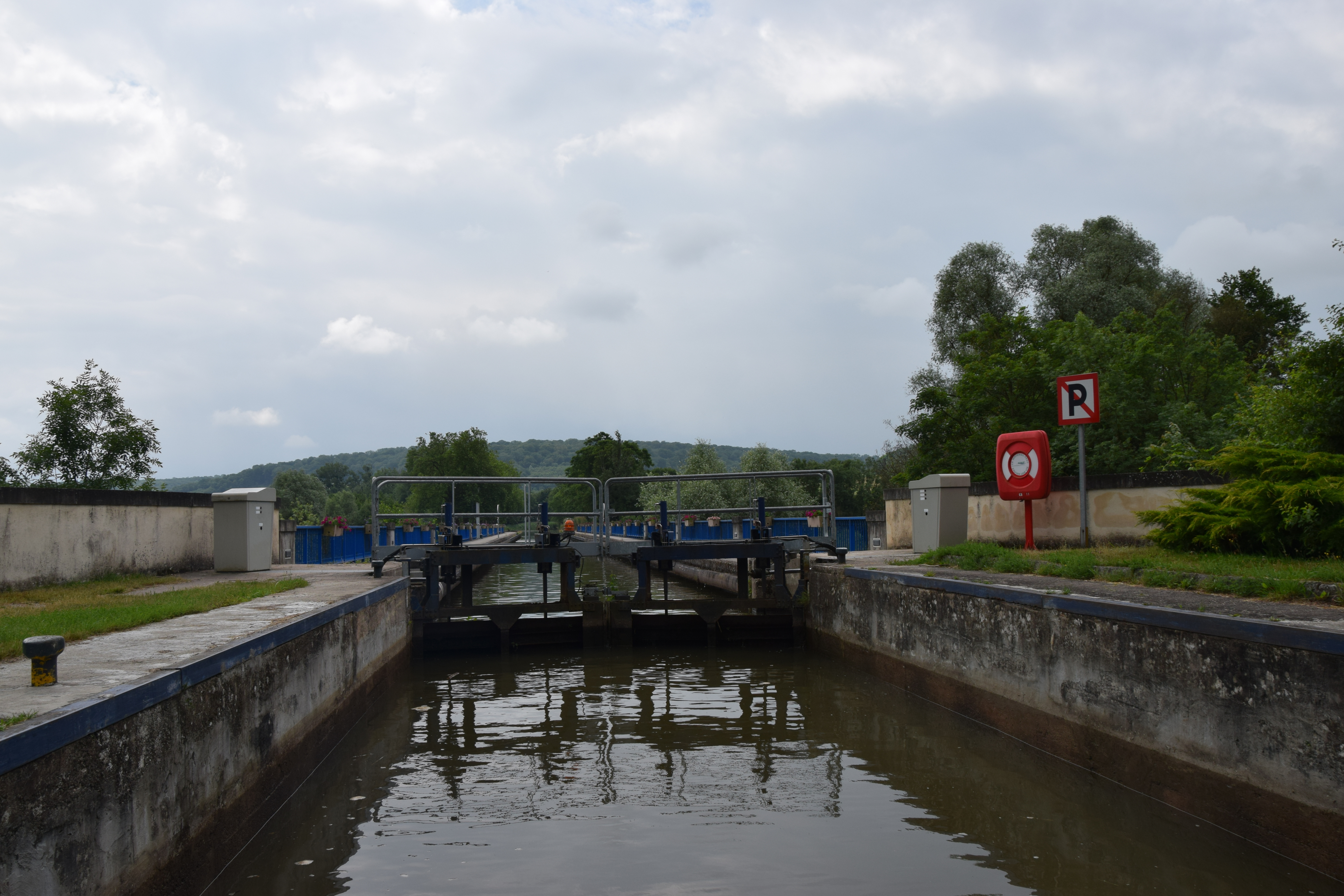 20th. Easy four hour cruise to the attractive moorings at Richardménil, 13k and 7 down locks, via the Flavigny Pont Canal (Aquaduct).  There were two Lavoirs in town but not a lot else that was accessible to grab ones attention. There was a Parc Château with the ruins of an old castle and a chapel but these turned out to be on private land.
