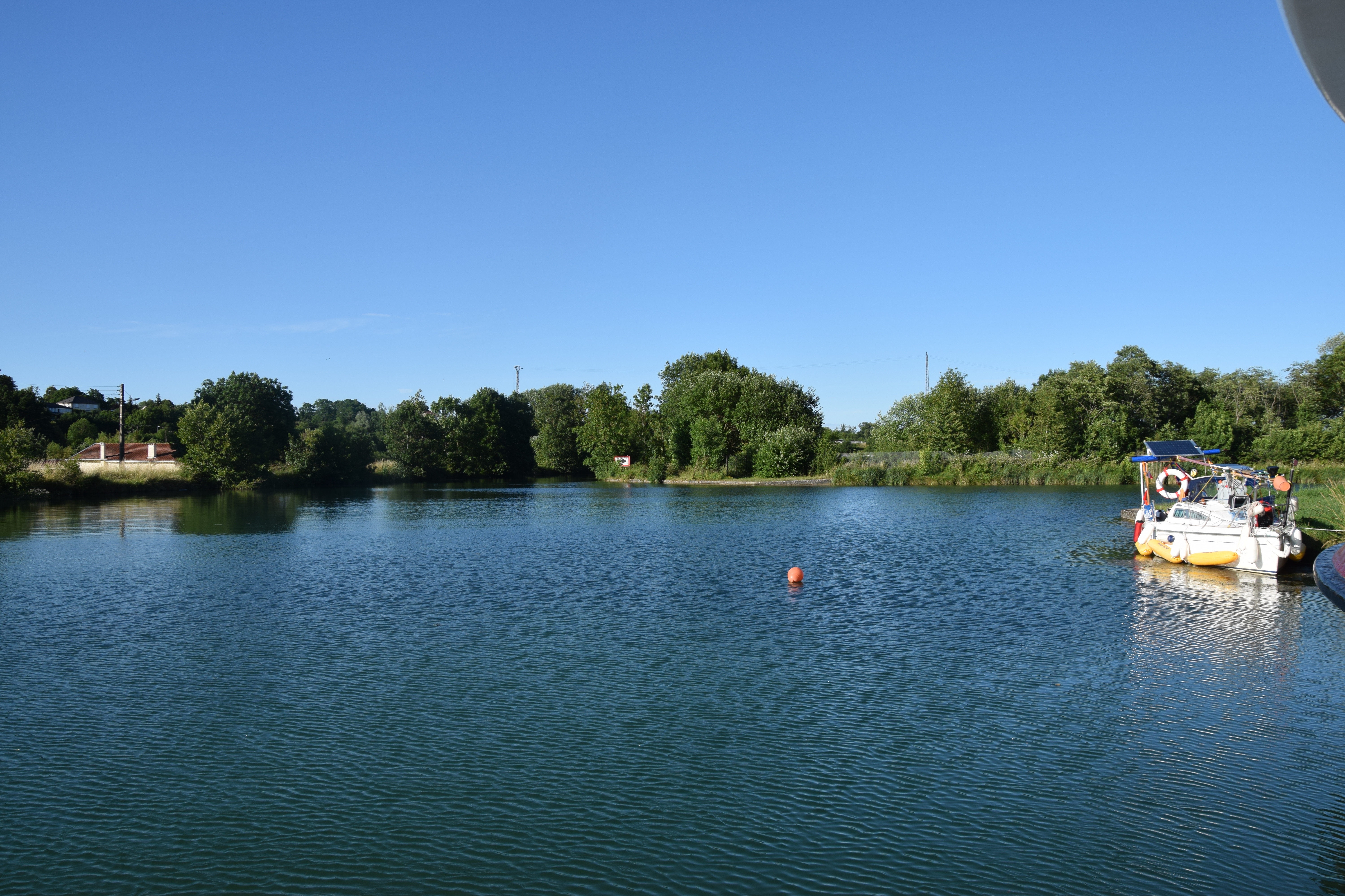 10th. A long day. Moored up at the village of Selles on the Canal de Vosges at tiny wooden pontoons on a stone wall. There were some lads jumping into the canal from the pontoons and throwing mud at each other and by extension and not without intent, at the front of my boat.  I asked them nicely to stop but they continued and it got worse. I went into the adjacent pub and asked where the police station was. Two owners or workers there were hanging over their balcony highly amused at the whole scene till I reminded them that they probably wanted boaters to stop here to bring custom to their business and if word got out about the kids they wouldn’t stop. After that one of the guys came out with me and spoke to them. It stopped and they were soon all brandishing mops and doing their best to clean it up with the dirty canal water. I will now be quite pleased to see some rain!