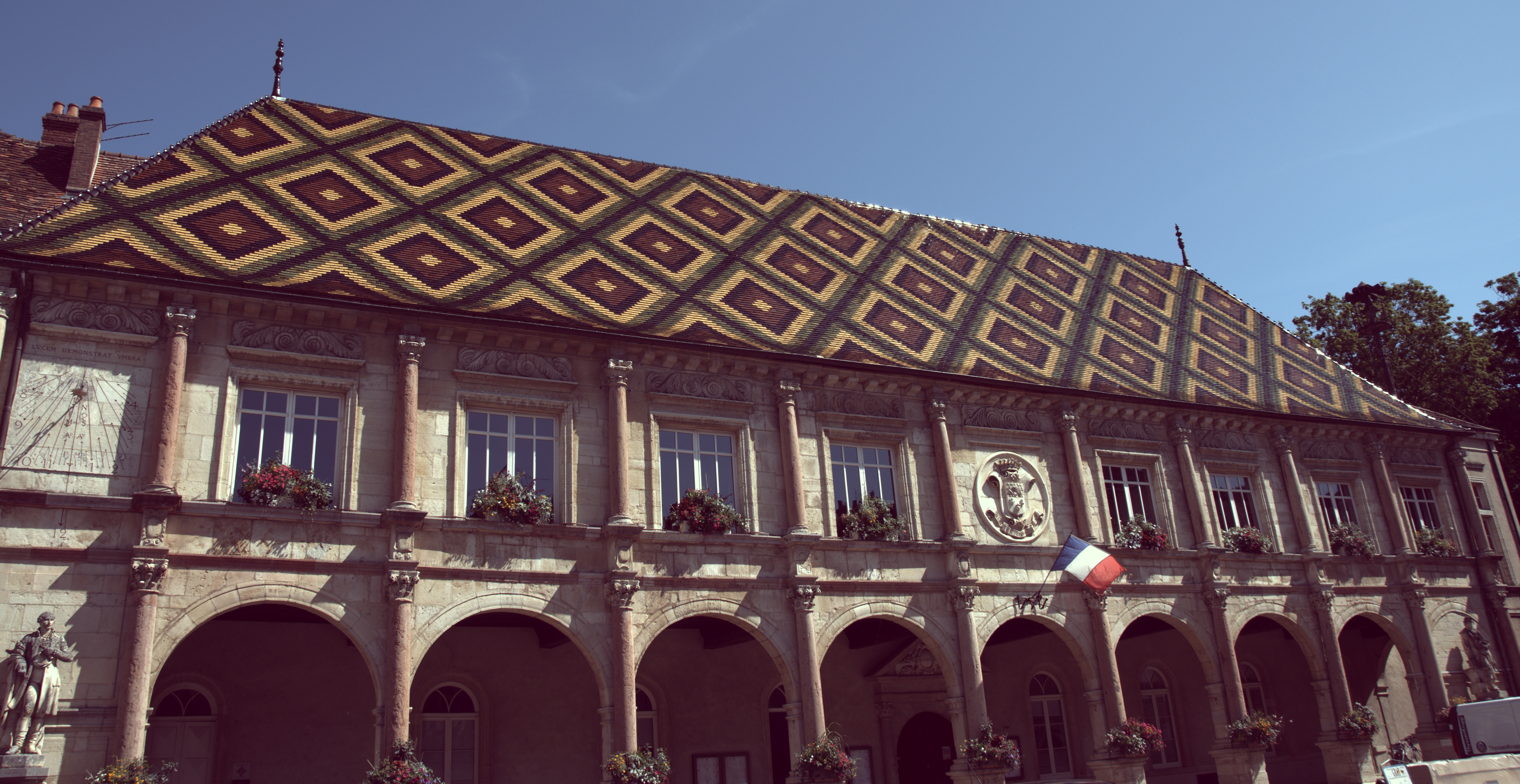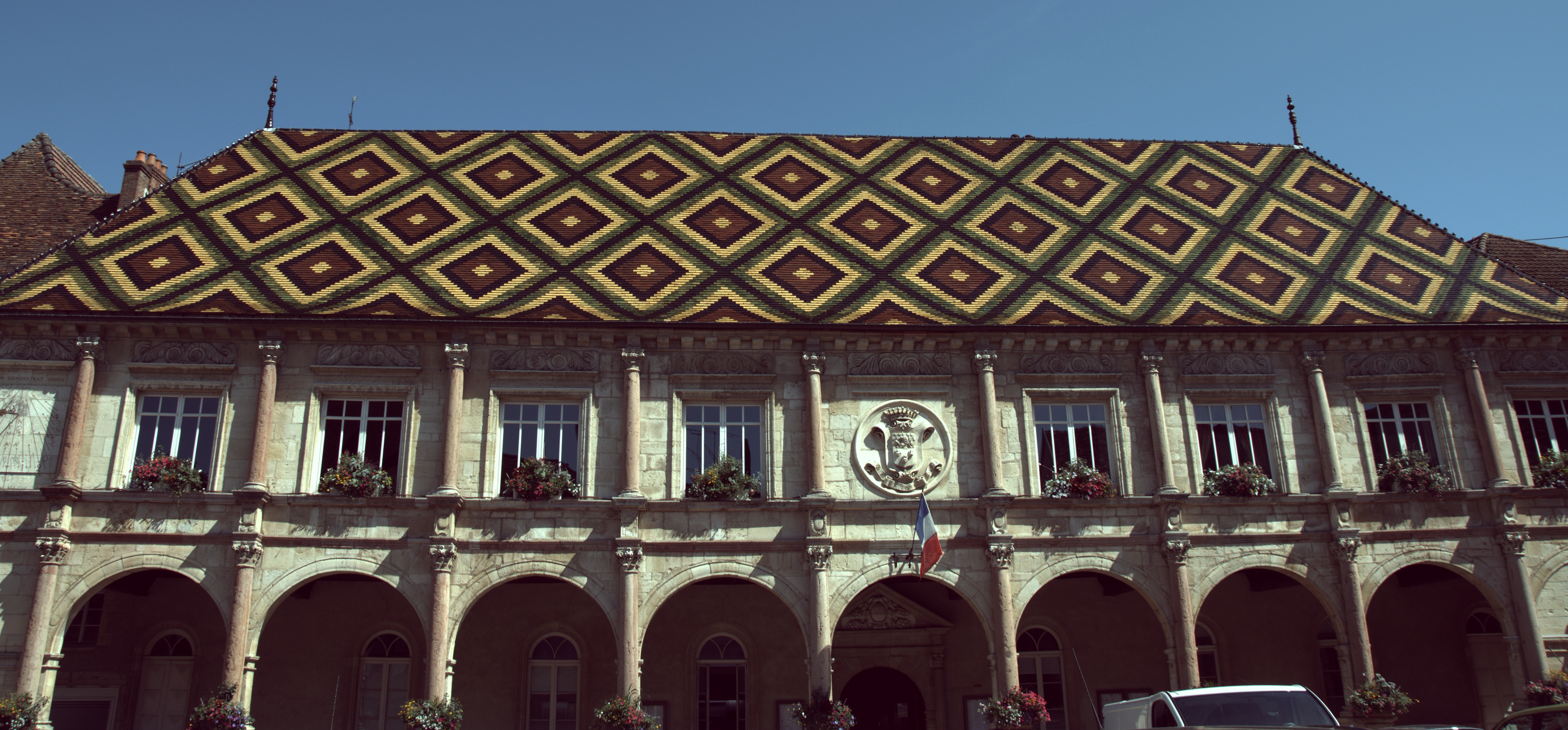 The town hall is the old market “Halles” and has a spectacular Burgundian glazed tiled roof.