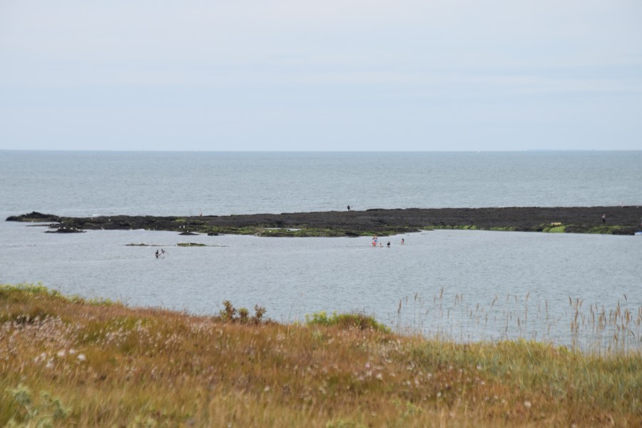49. wading out to mussel bank to harvest